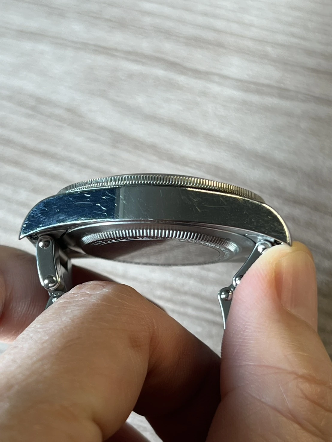 The watch itself has scratches all over, and I try to zoom in on those in my pictures. They may not be that obvious when you wear it.