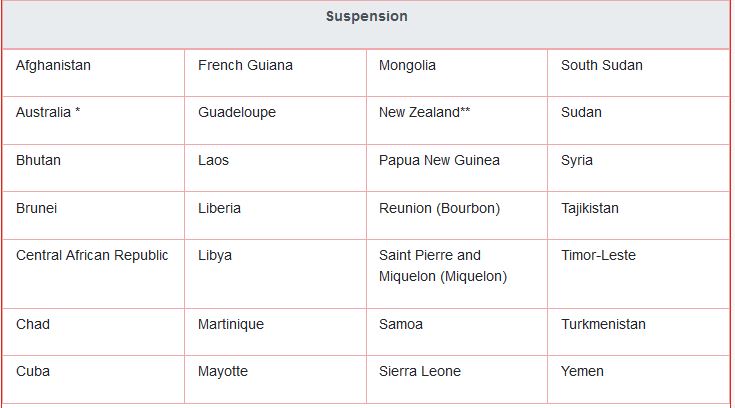 *Australia’s service disruption affects Priority Mail International® (PMI), First-Class Package International Service® (FCPIS®), Commercial ePacket (CeP), International Priority Airmail® (IPA®) packets, International Priority Airmail® (IPA®) M-Bags, International Surface Air Lift® (ISAL®) packets, International Surface Air Lift® (ISAL®) M-Bags, and Airmail M-Bags.
