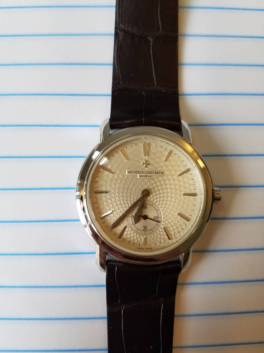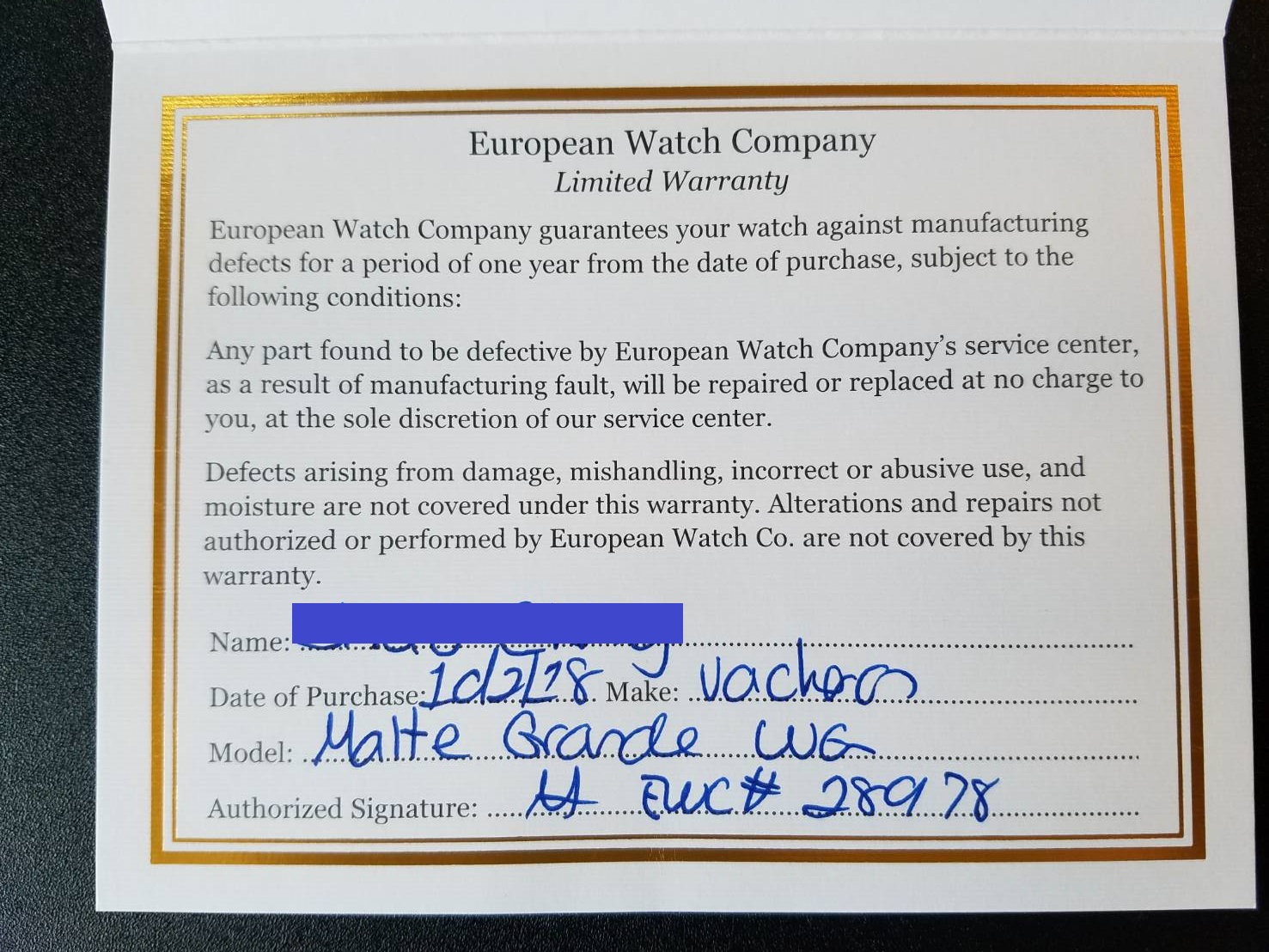 This watch is 100% original. It is purchased from European Watch Company in 10/2018. The watch was fully serviced back to that time and still run strongly as expected.