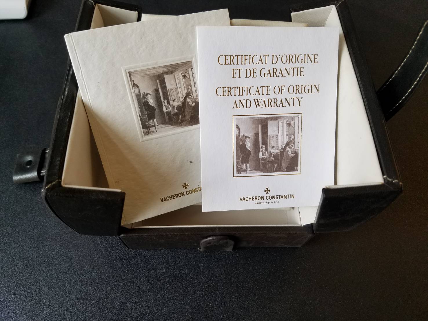 The watch comes with the whole set, including the original paper stamped by a U.S. AD in 2002, Geneva seals certification, user guide, and the representation box.