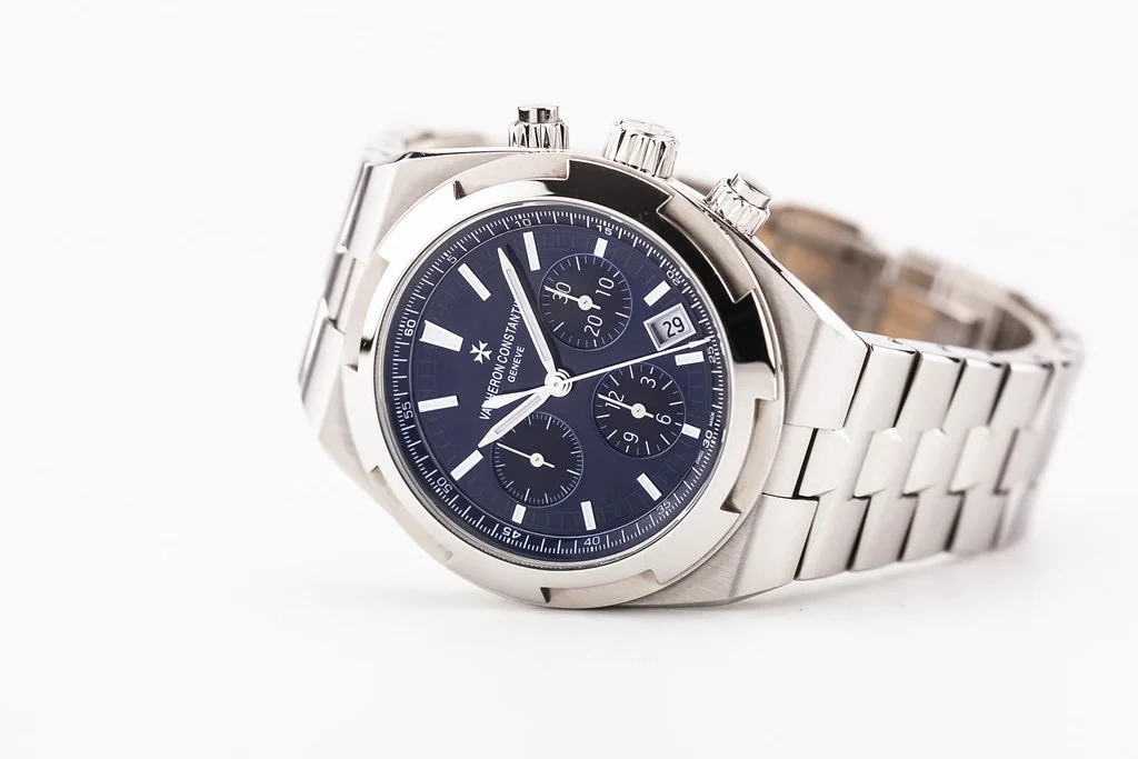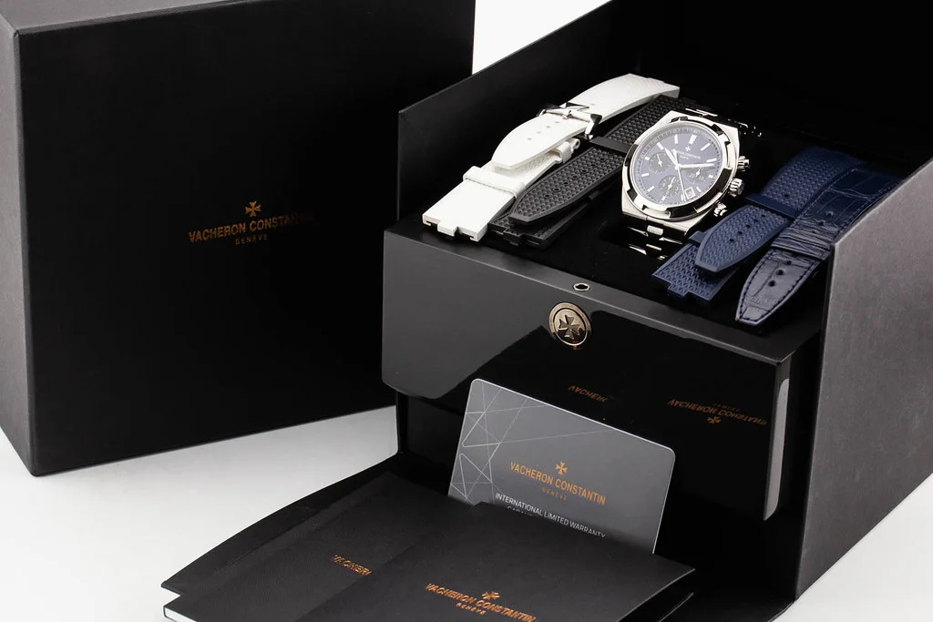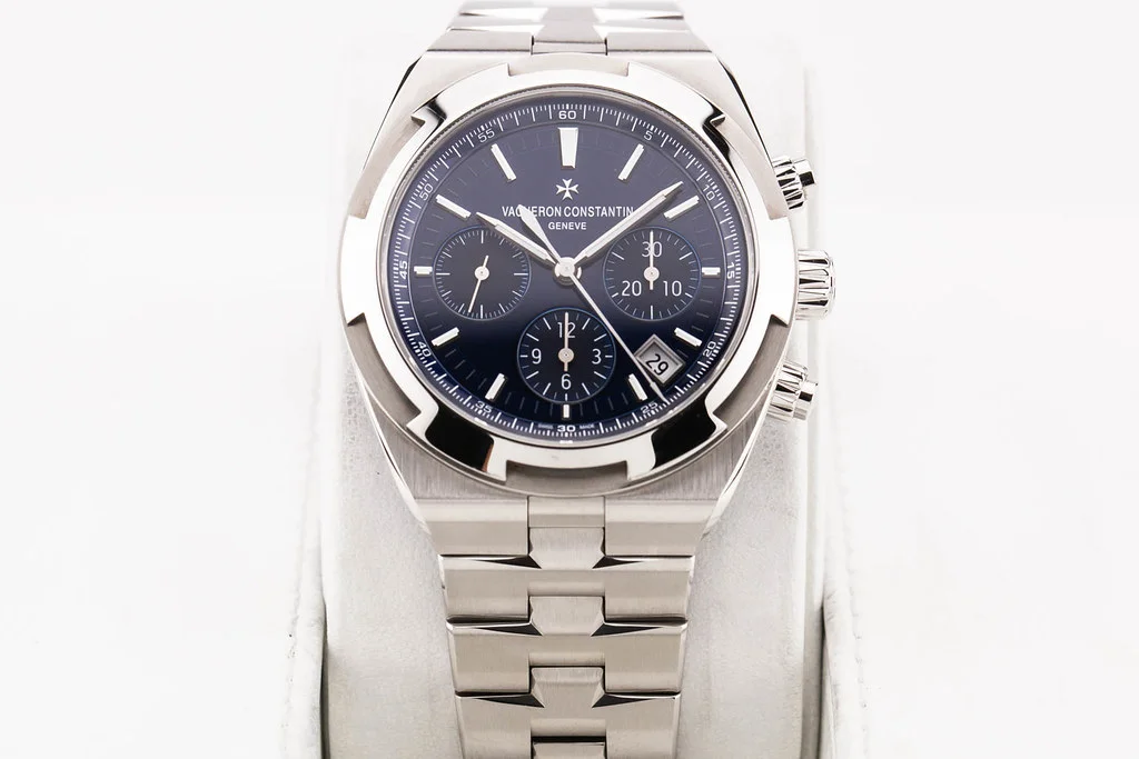 ·Up for sale is an excellent condition Vacheron Constantin Overseas Chronograph 42.5mm Blue Dial on Bracelet, reference # 5500V/110A-B148. It comes complete with all boxes, papers, booklets, extra OEM straps and Vacheron Constantin International Warranty Card dated June 2022.