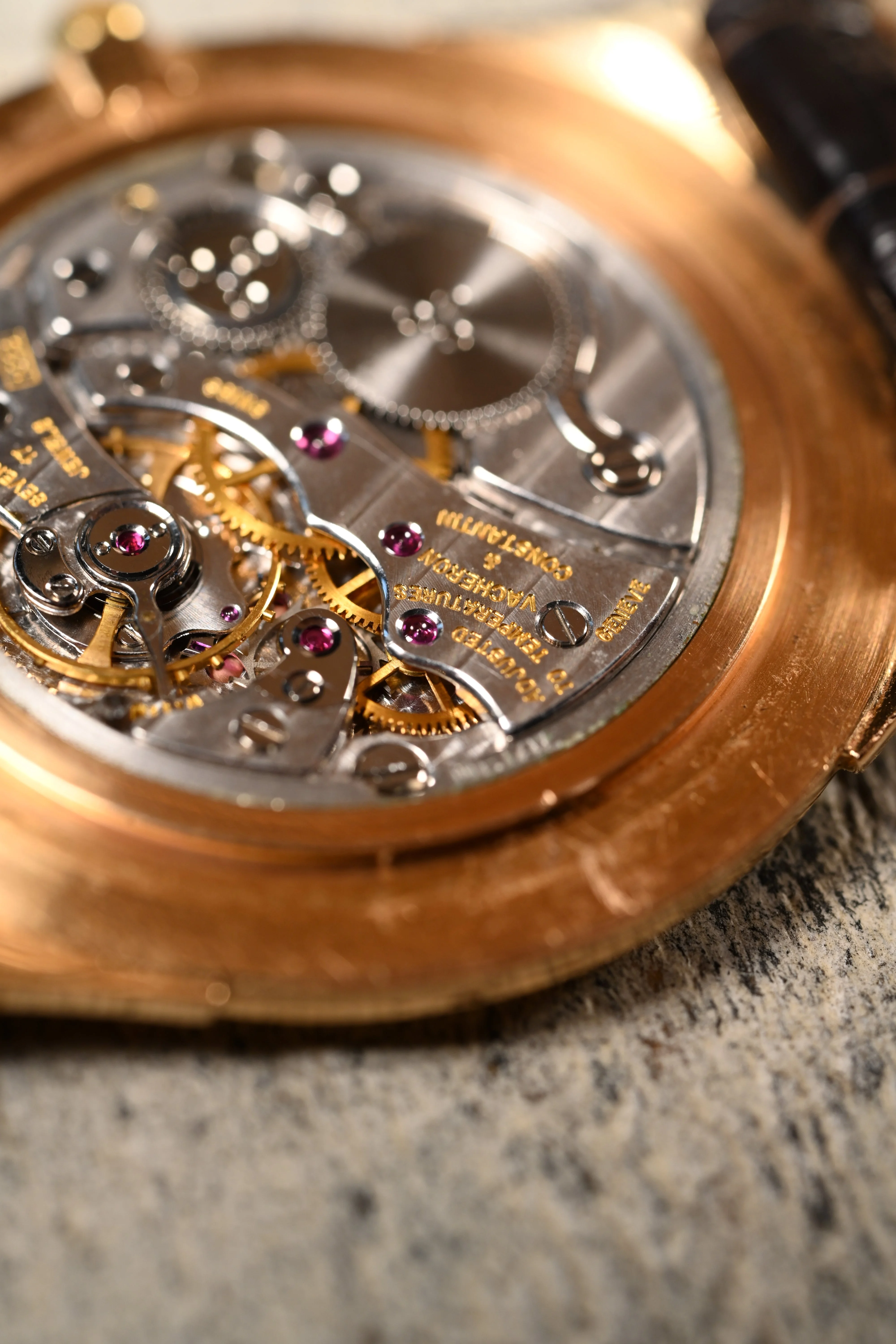 CASE: The 32mm solid 18kt pink gold case is in good shape. The case has been previously polished in the past. The case back still illustrates the original brushed finishing. The hallmarks both inside and outside of the case are present and accounted for. The case and case back are serialized and matching confirming they were originally assembled and paired at Vacheron.