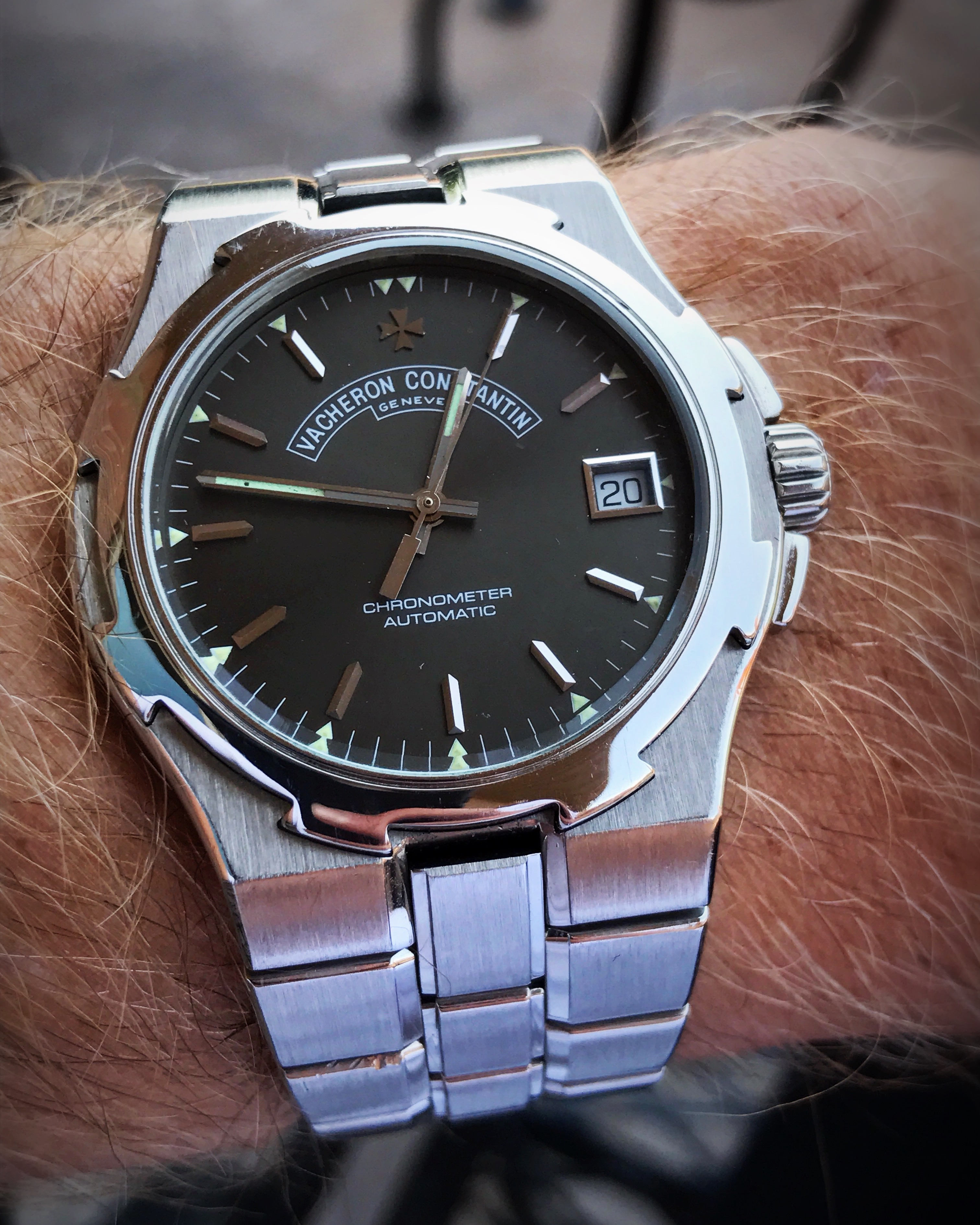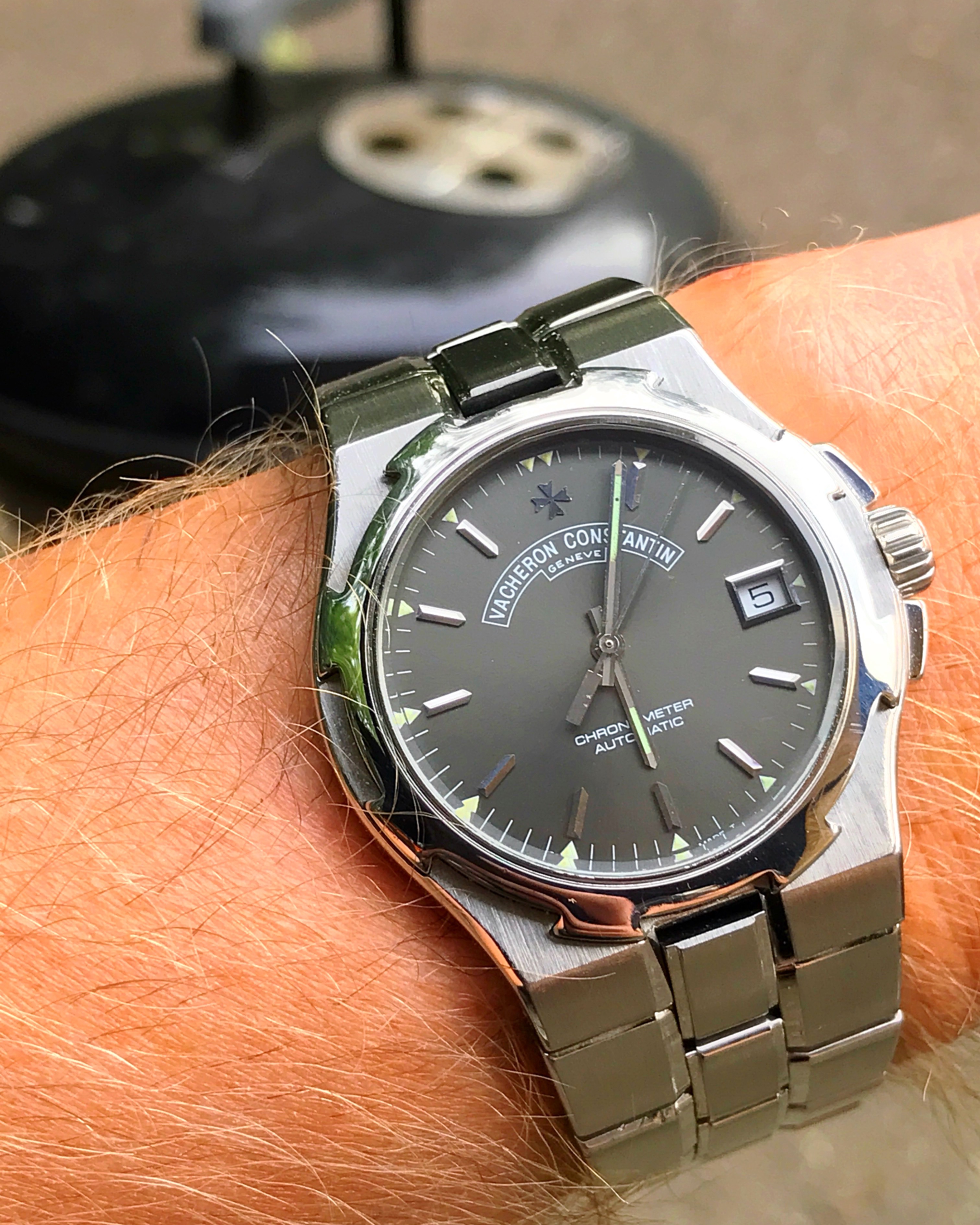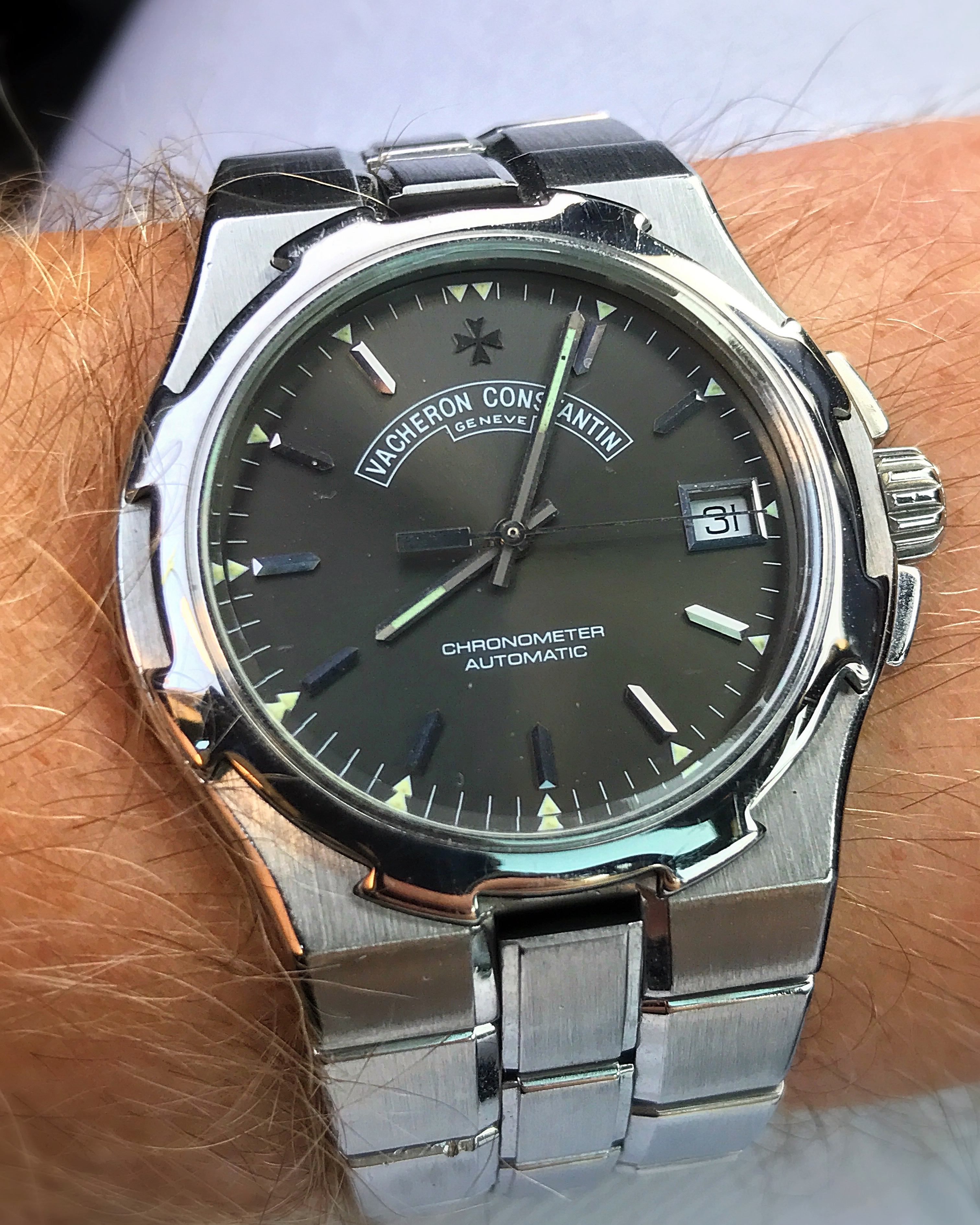 Very good condition 1st addition Overseas . Keeps good time , grey sunburst tritium dial , Sapphire crystal, integrated bracelet does show some wear a couple small nicks and light scratches.. come s with 3 removable links .. probably fit up to 7 inch wrist