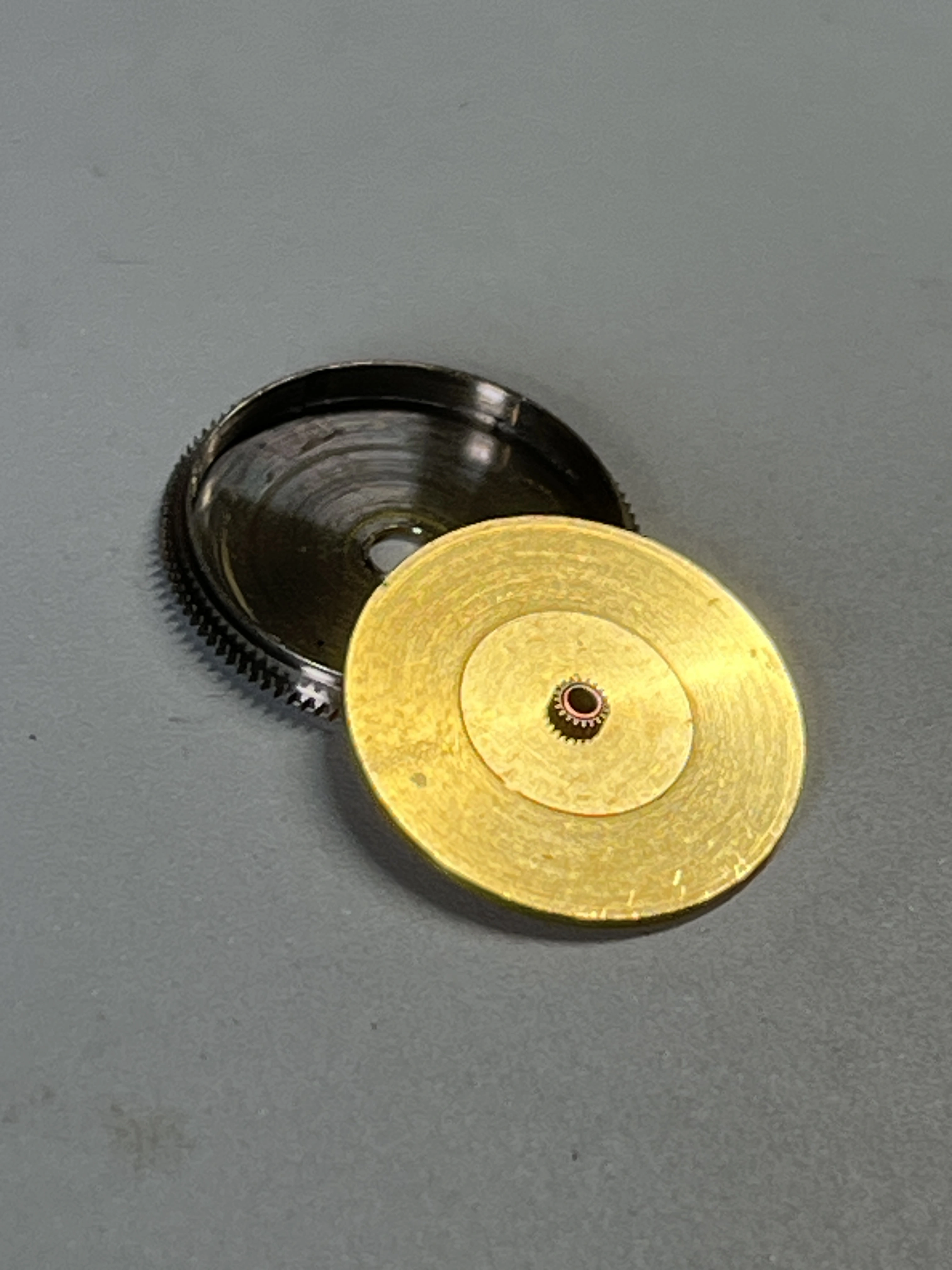 1. The balance is not etachron, (instead it’s a simple stud fixing) but all references I am finding on the internet say that the balance for val and eta 7750 are compatible? I’m now wondering if the movement is a fake, or were the val 7750 balances non-etachron? Also the barrel parts are differently coloured (barrel nickel, cap is golden). Not sure if this is correct or not.
