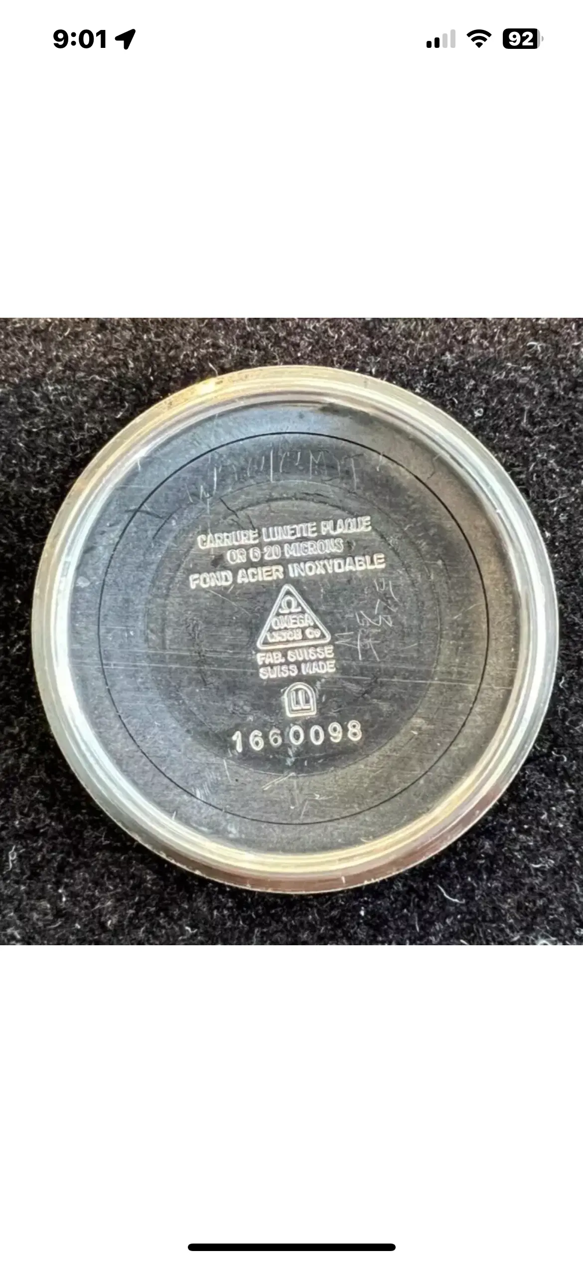 Are you sure you posted the correct pictures? You yourself purchased this in Switzerland, new, at an Omega store? The dial looks to be badly repainted.