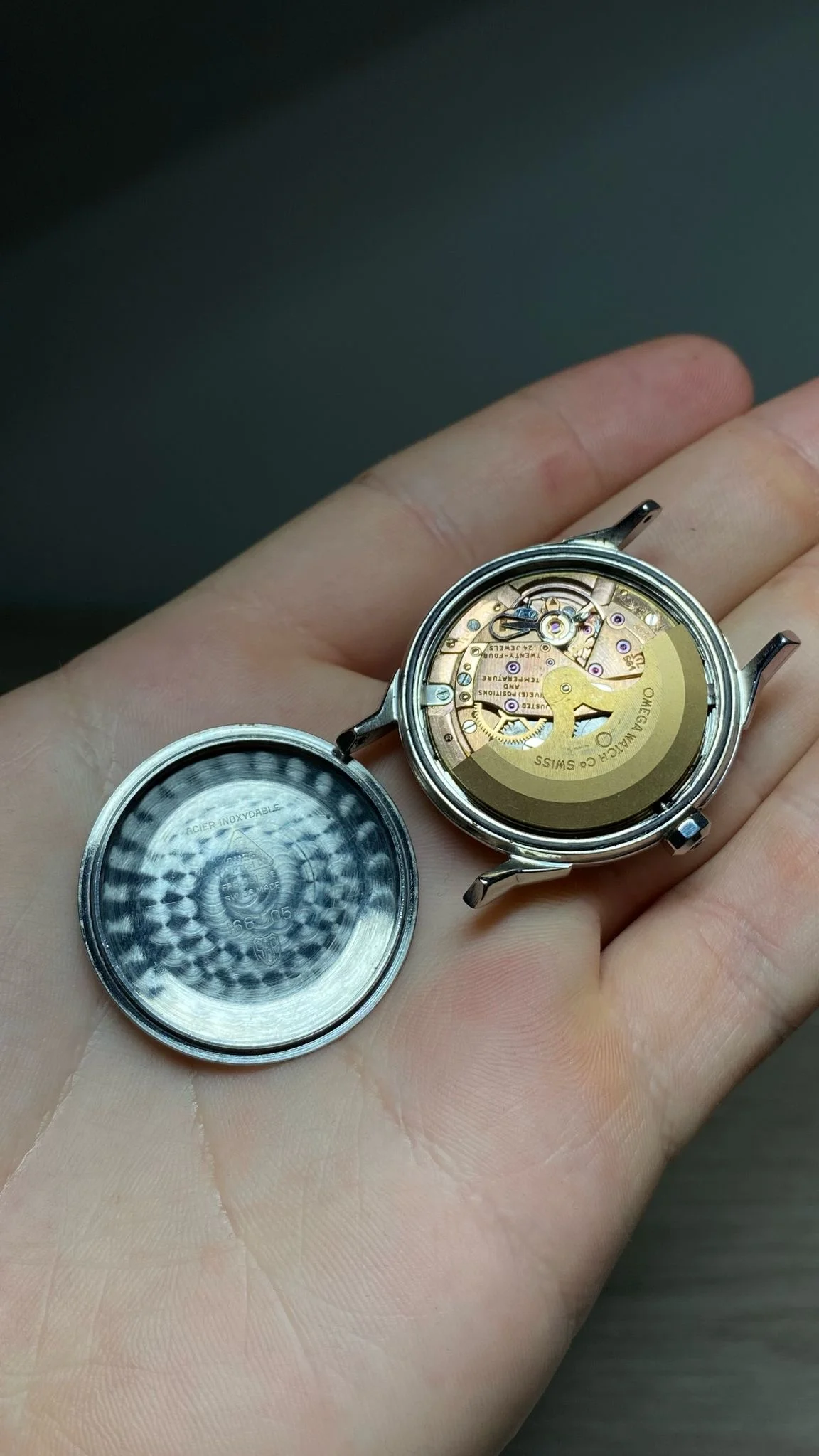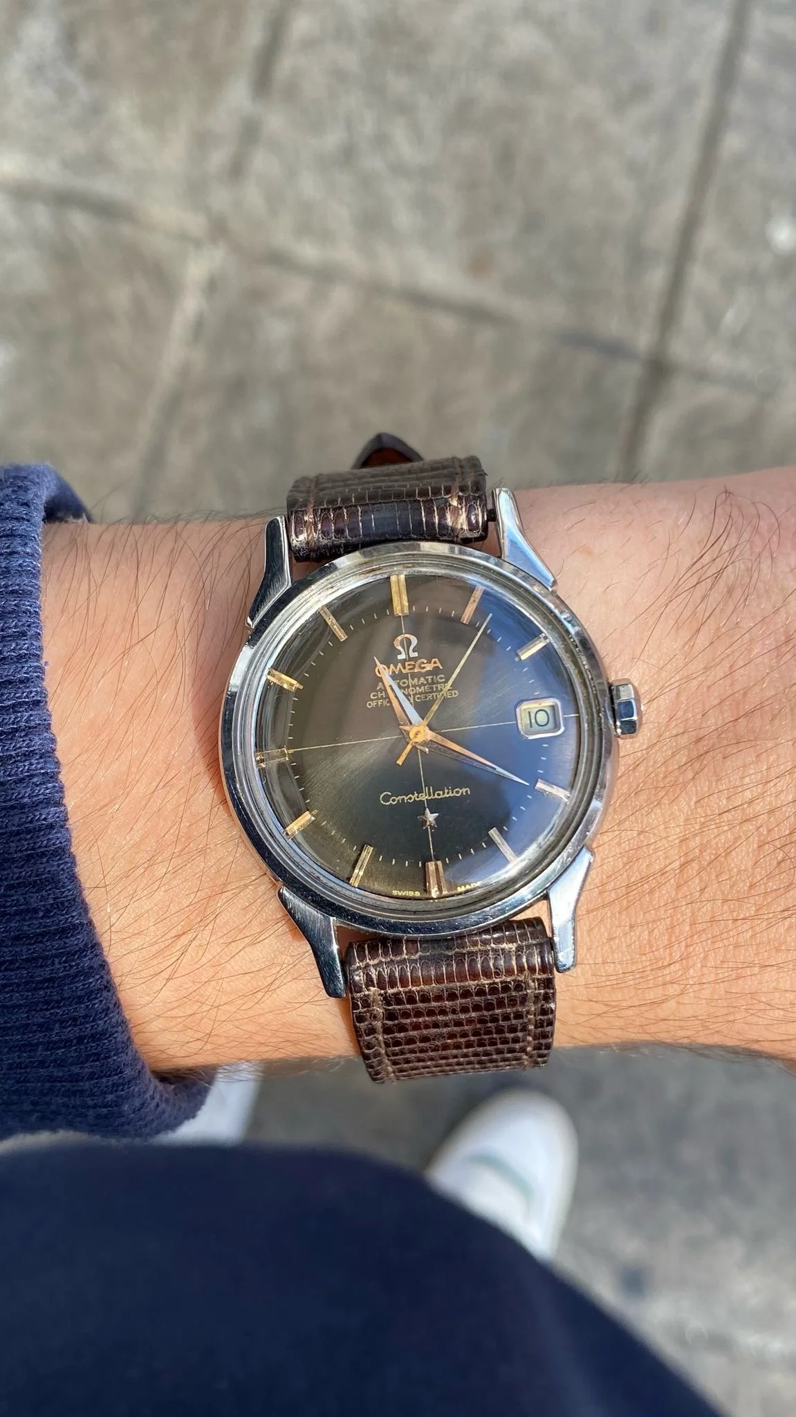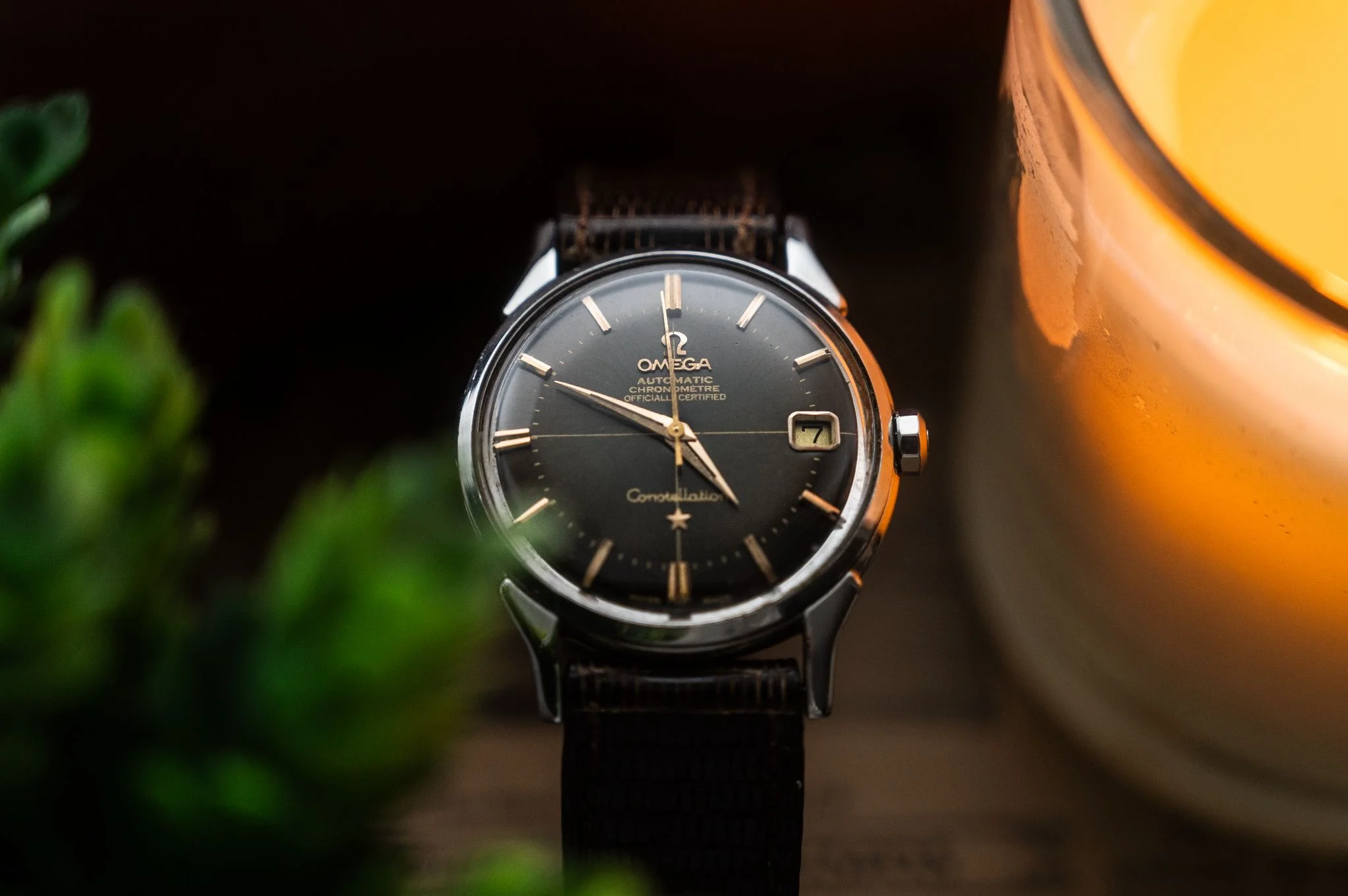 Condition and Authenticity: The markers and hands have not been altered. The plexiglass was replaced with a new piece, which is likely not original to Omega since it lacks the engraving in the center (though some original plexiglass models also lack this engraving). The markers are not lumed. This is correct for this specific Constellation model, as it doesn’t have lume, unlike other models like the perpetual calendar that do. The crown is original. The case is in very good condition, with no indication of polishing, as the characteristic eight stars on the Constellation caseback remain sharp and well-defined. he quick date change function works perfectly.