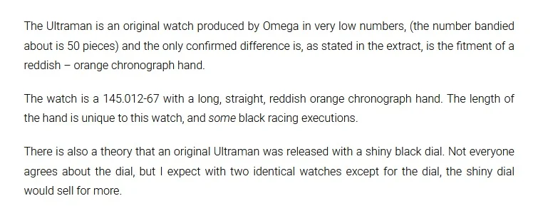 I became aware of this quote from moonwatchonly.com about the Ultramans dial.