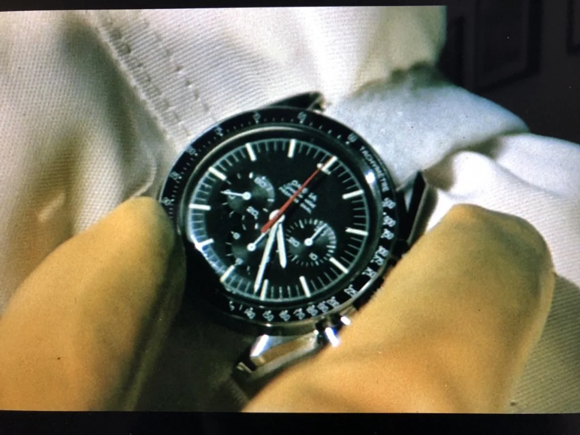 Looking at the still picture, the watch doesn’t actually seem to be a genuine Speedmaster. The dial printing and logo are clearly different. Of course, I might be wrong..
