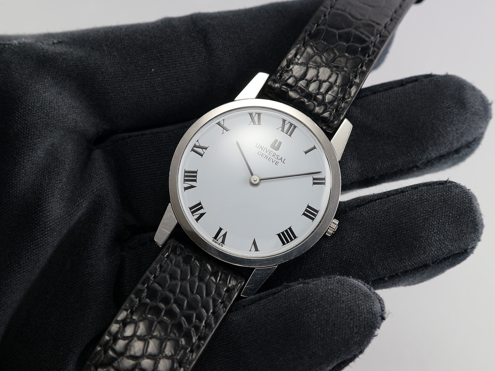 ·Up for sale is a very nice UG dress watch Ref. 542101. The original dial is steel in great condition. The case is unpolished and in great shape plus the original crown. It is measure 31mm wide without crown and 37.5mm lug to lug, lug width is 16mm. Thanks to the ultra-slim profile: only 6.5mm in thickness, it wears larger. Inside is the UG cal. 1-42, service history unknown but still running strong & keeping time.