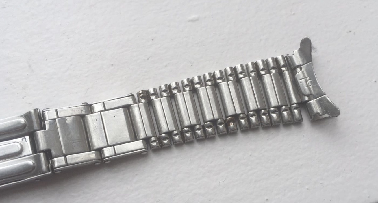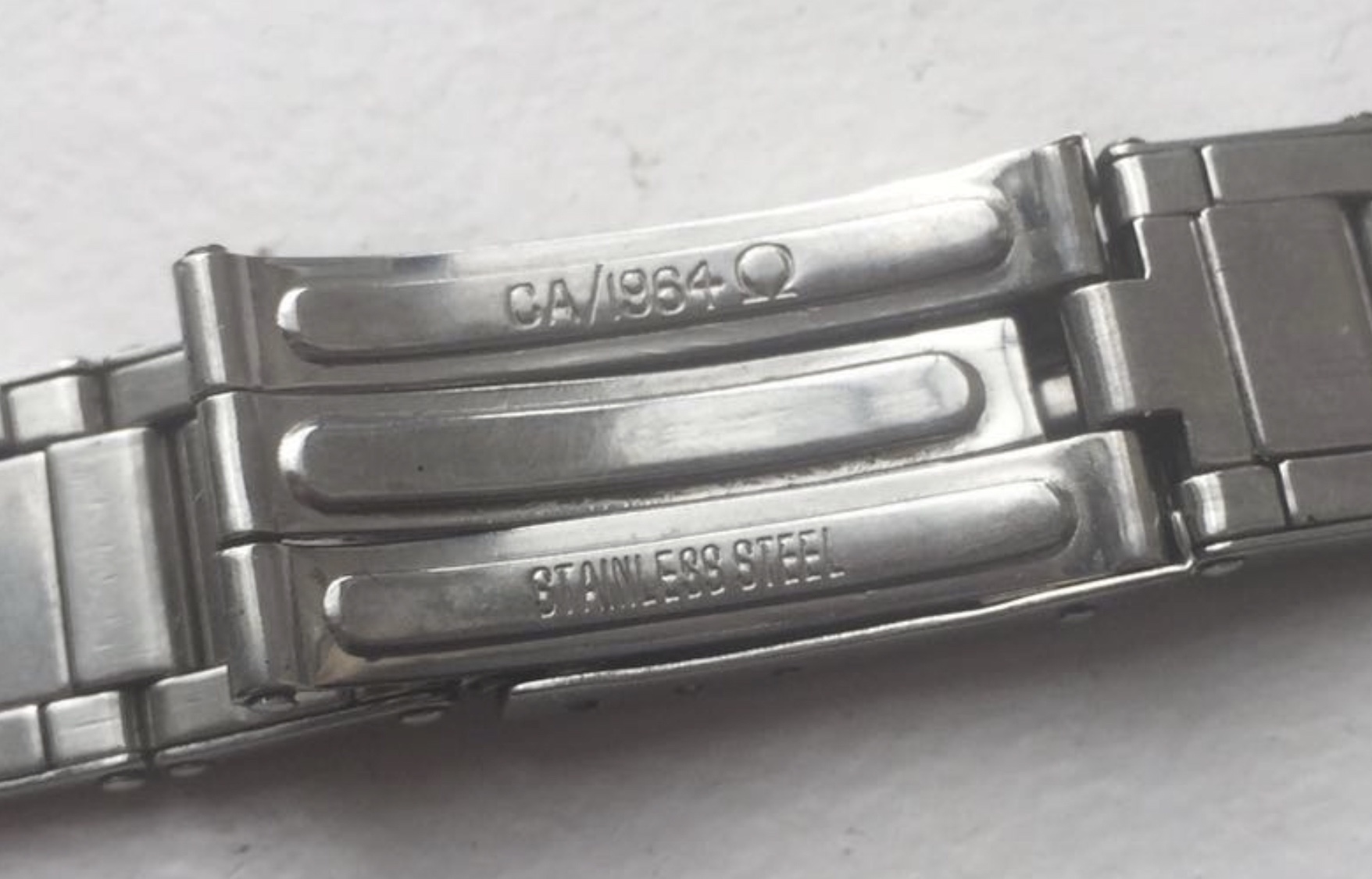 ·Hi, I am almost new here in this forum. Recently I came across one unusual omega bracelet. I never seen such bracelet any where even on internet. It will be very much appreciated if you guys help me out. End link 19 or 67 written in very unusual place. I even dont know if its 19 or 67 or something else. On claps back CA/1964 them omega sign and then bellow stainless steel