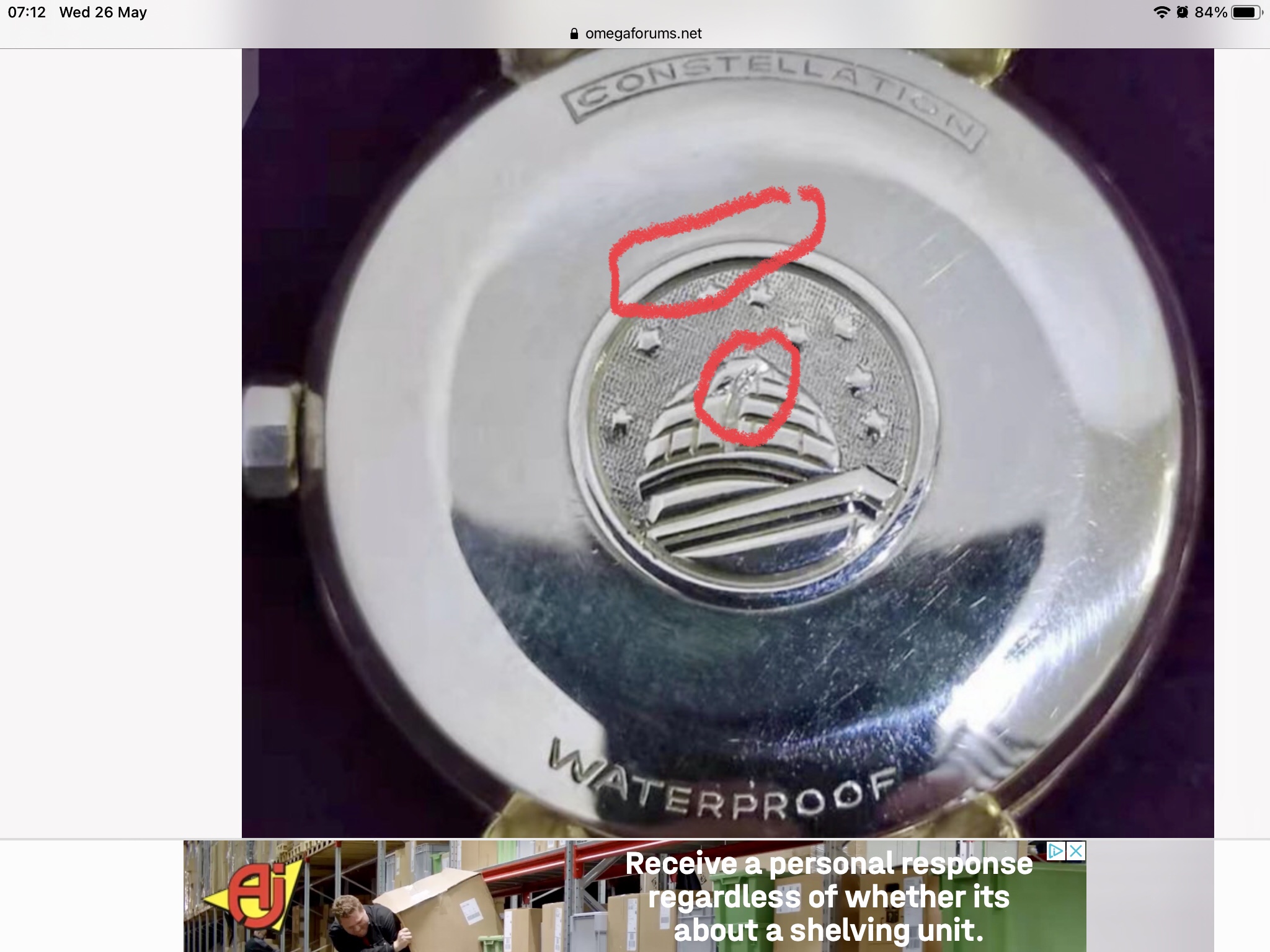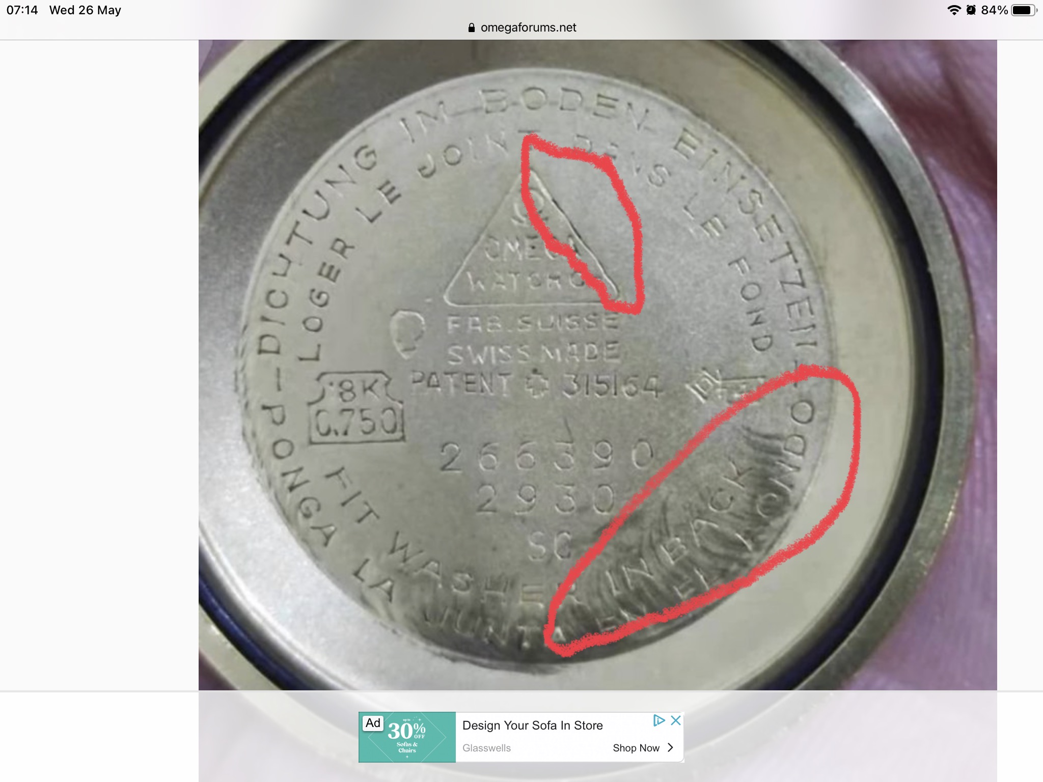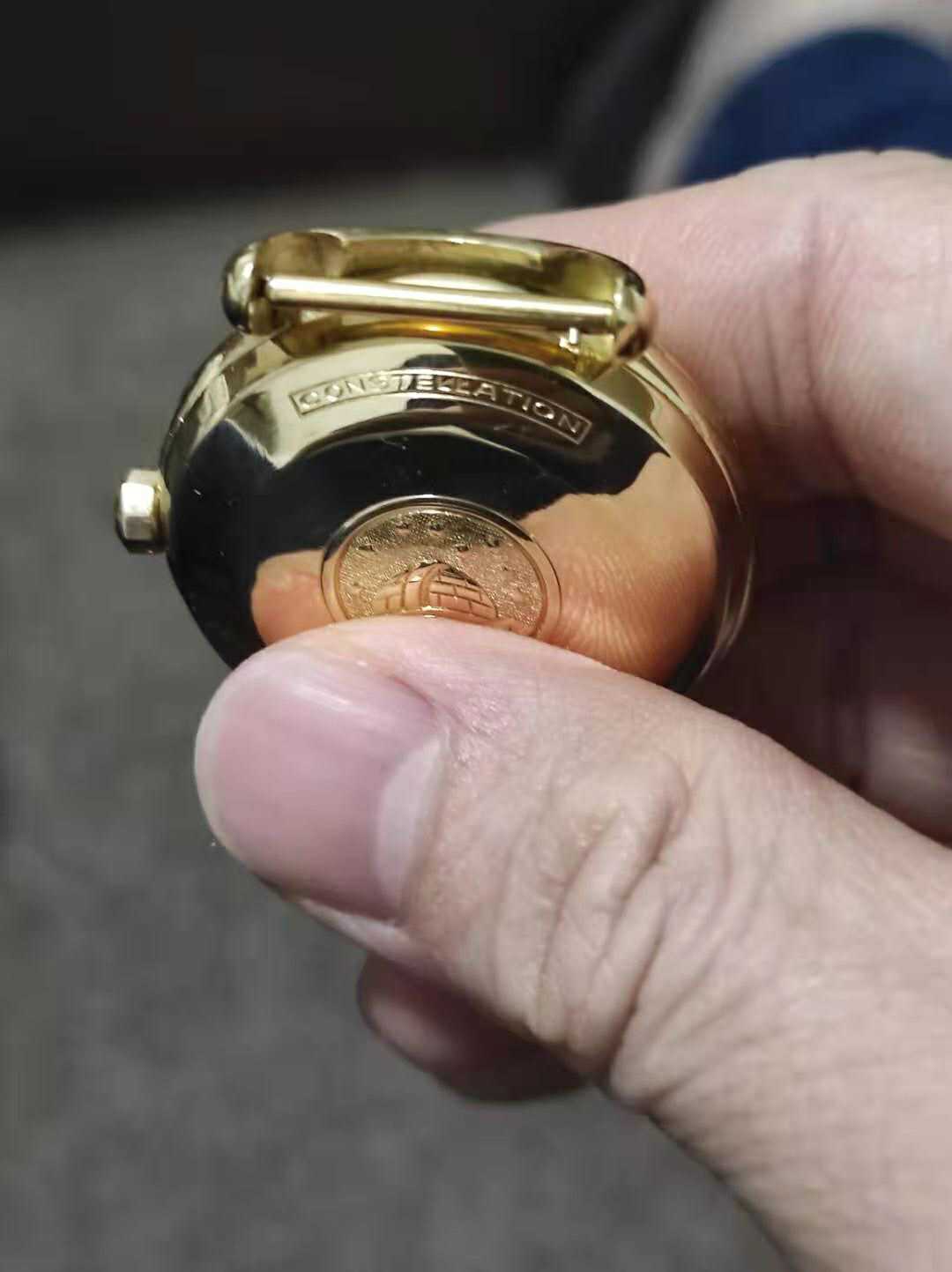 in some places, the watch has clearly had a hard life ( the heavily polished lugs, to me, only 1 side of the triangle is distorted, the strange writing from 4-7 o’clock) - but the middle of the medallion had a ding or gouge in it, and there is a weird ring around 11 o’c just outside the medallion - no idea what this is?