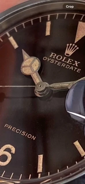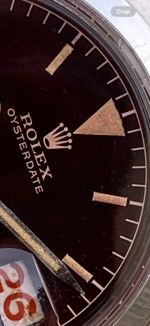 I stumbled across this Rolex Oysterdate and I'm wondering if anyone has more info on it. The dial appears unique (and probably a redial), but the lume/flake aging on it points to either a really rare dial or a really old remake.