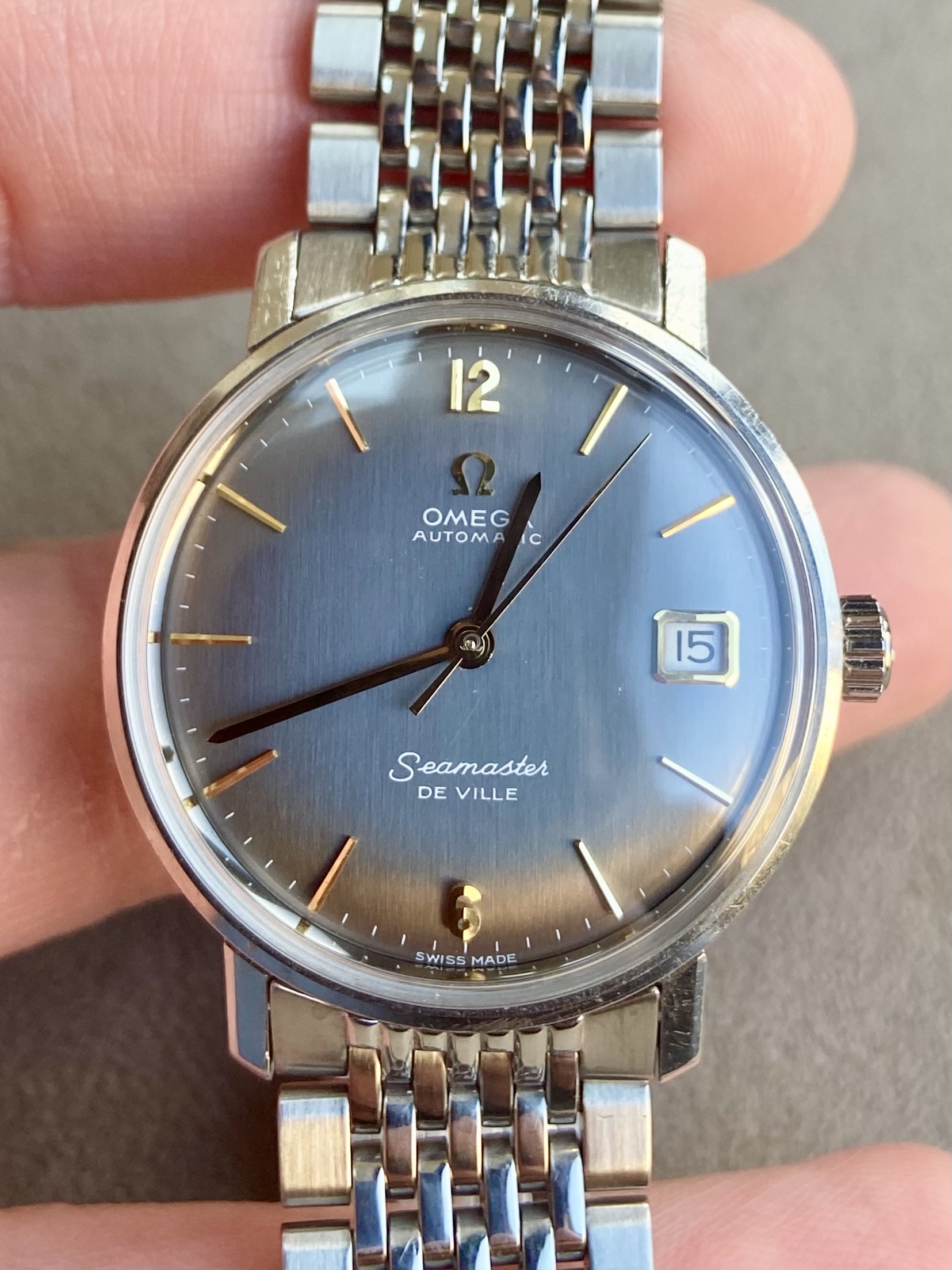 Posts 13,198 Likes 22,952 Davidt ·Mar 4, 2023 M mgwooley Crazy how the light changes the expression of the color of this dial. Yours almost looks blue! Different reference but my DeVille is grey in most light, but occasionally blue.
