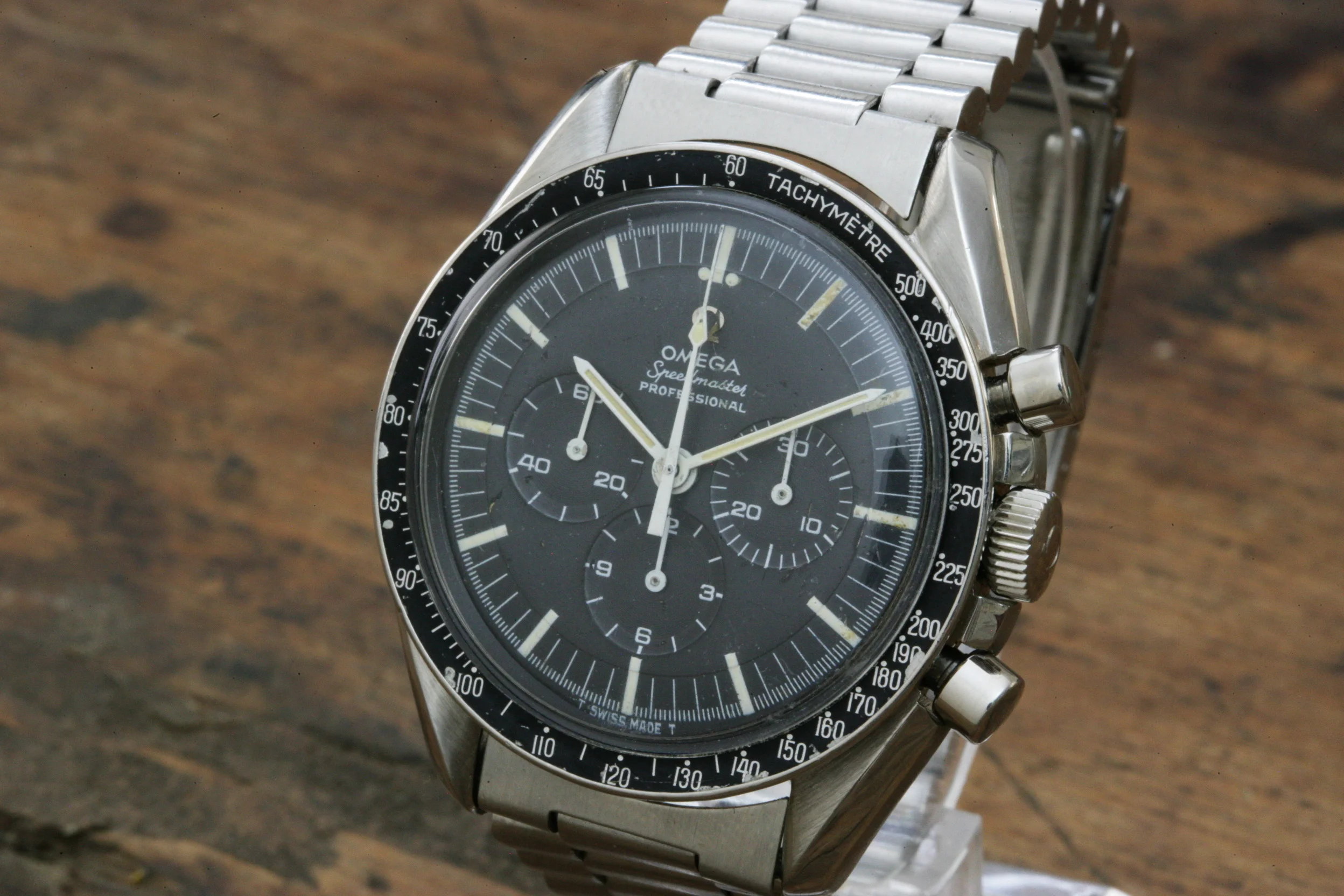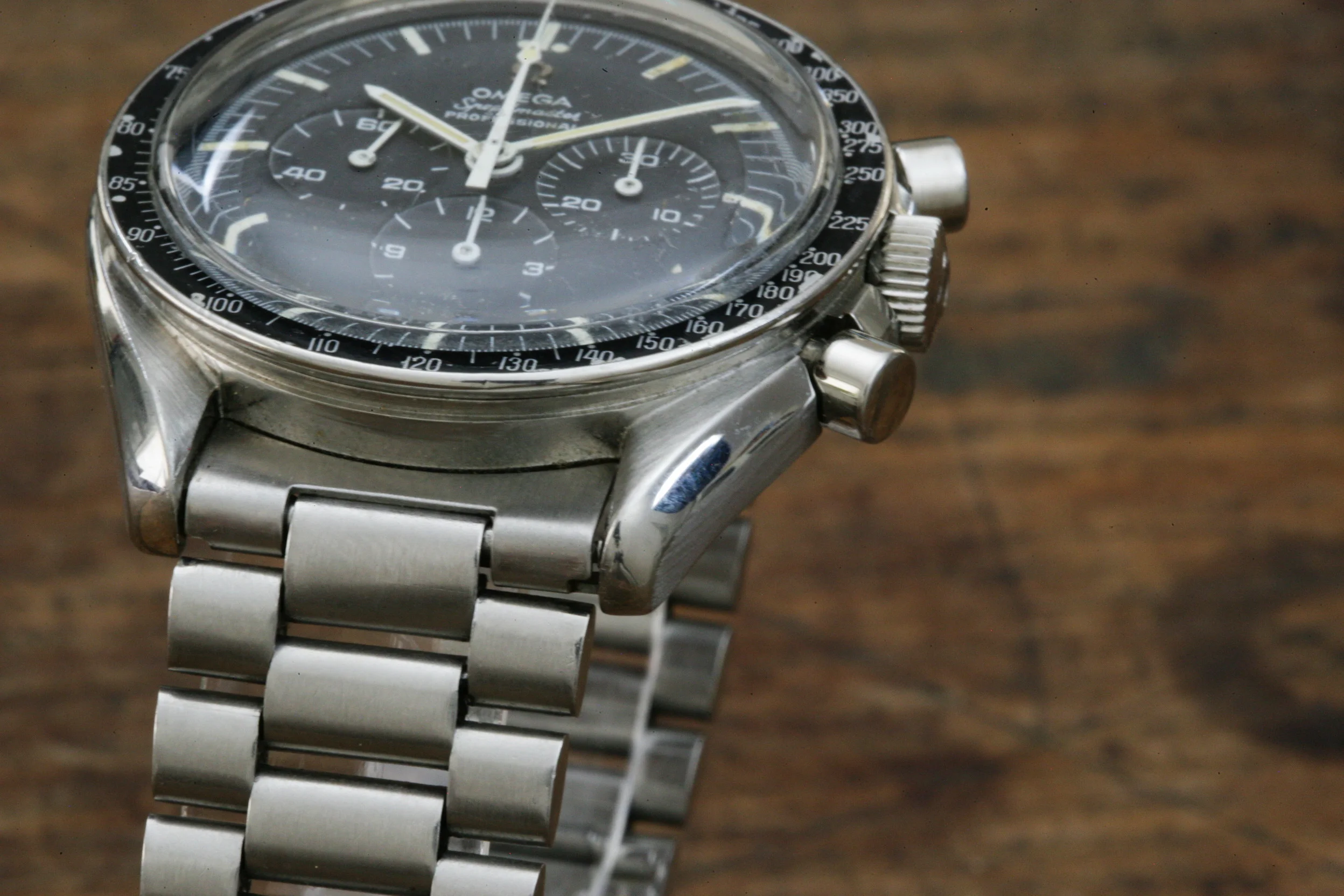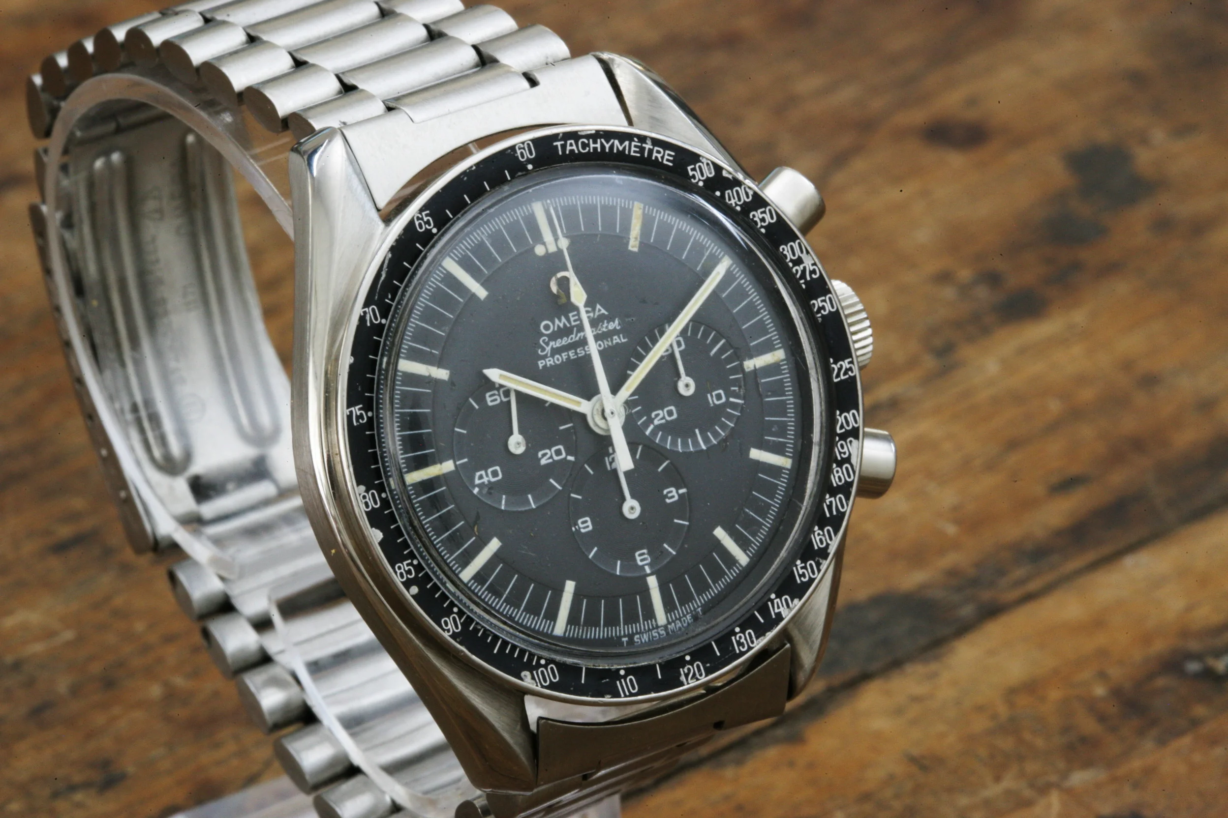 The watch is in overall nice condition. The dial lume is in fair condition. The watch has the correct DON bezel which is nicely preserved. It comes with a correct 1039 bracelet with #16 end links. Note that the photos of the watch show it on a contemporary Omega 1171 bracelet which is also included in the sale. Date of last service believed to be 2014 (no paperwork).