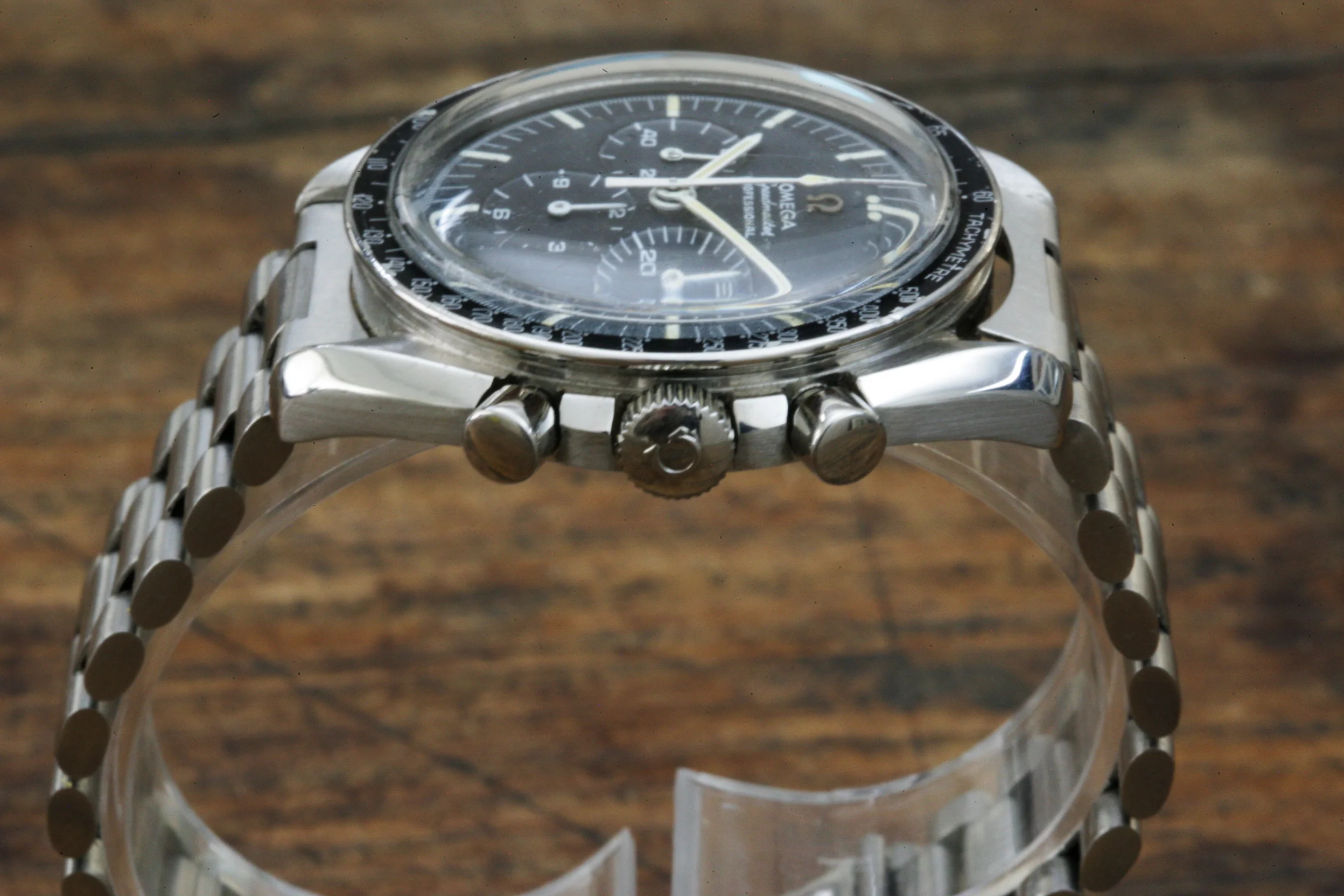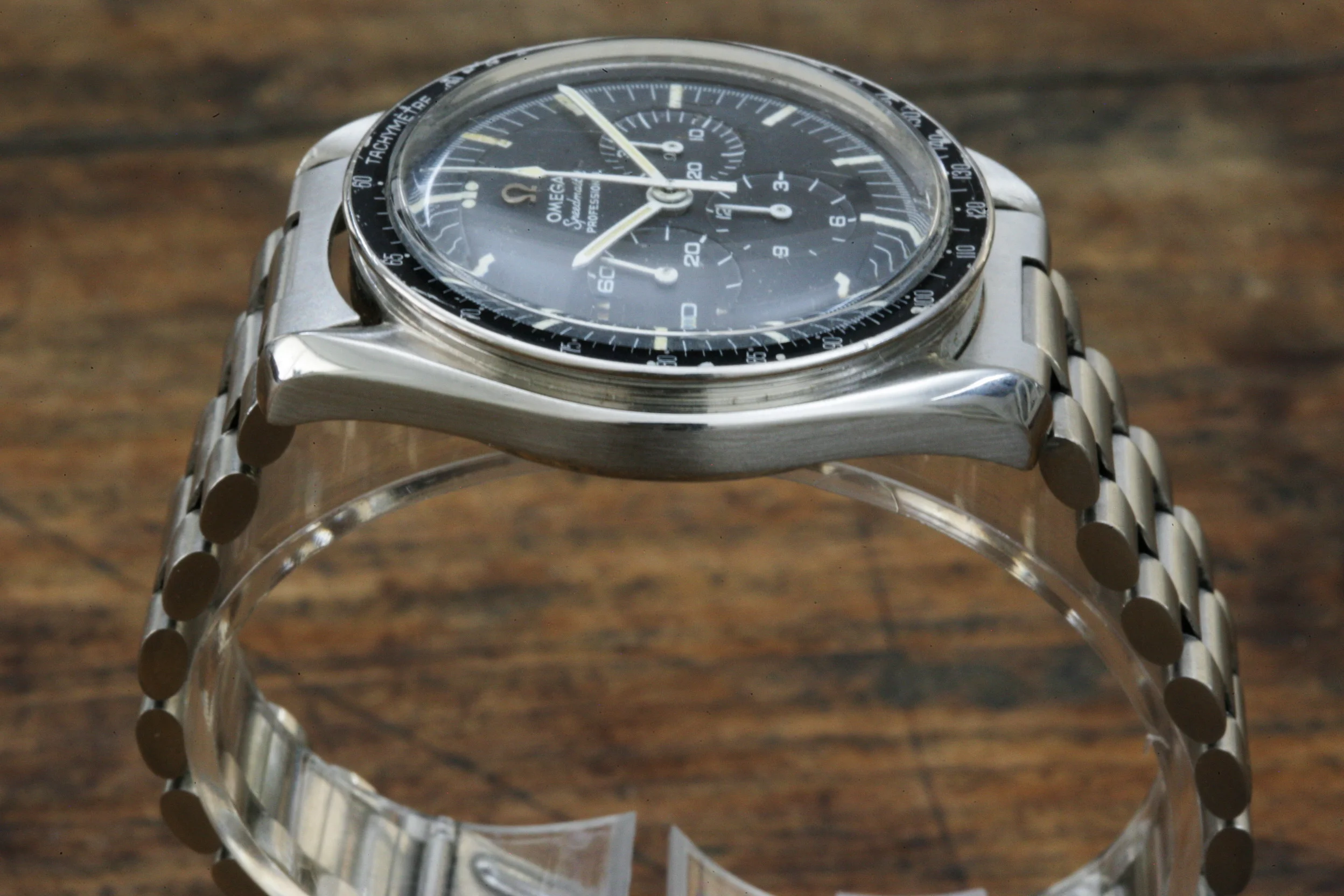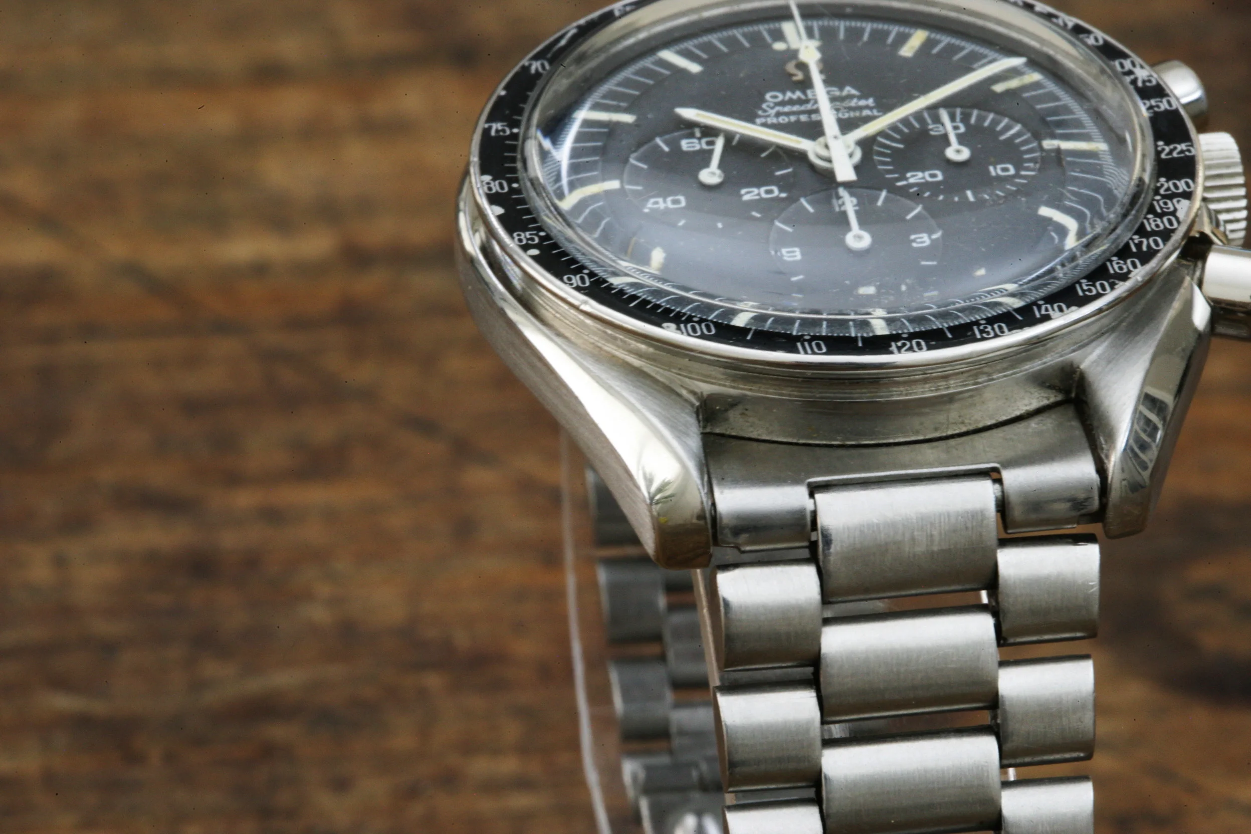 The watch is in overall nice condition. The dial lume is in fair condition. The watch has the correct DON bezel which is nicely preserved. It comes with a correct 1039 bracelet with #16 end links. Note that the photos of the watch show it on a contemporary Omega 1171 bracelet which is also included in the sale. Date of last service believed to be 2014 (no paperwork).