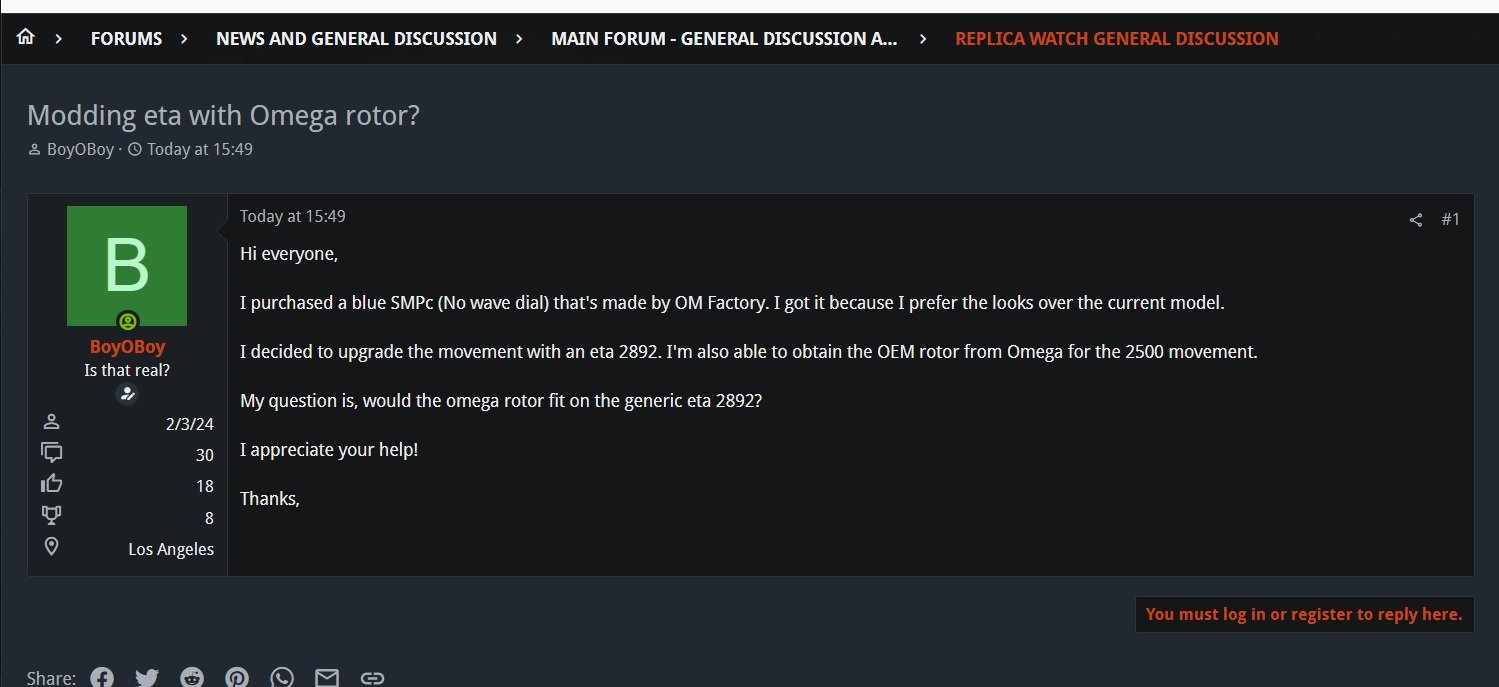 My omega SMPc has a generic eta 2892 movement & I decided to upgrade the rotor with an original omega 2500 rotor.