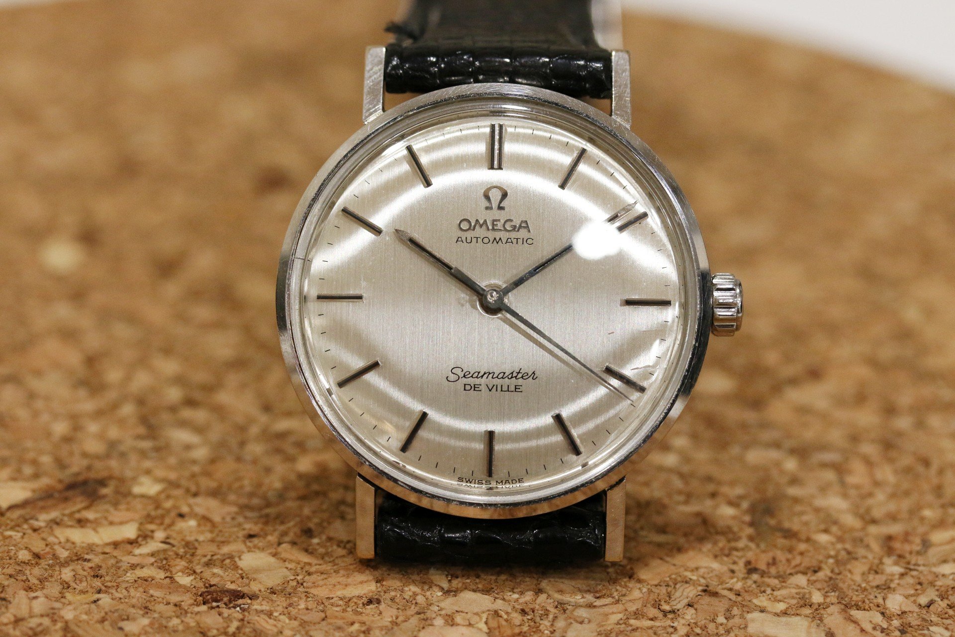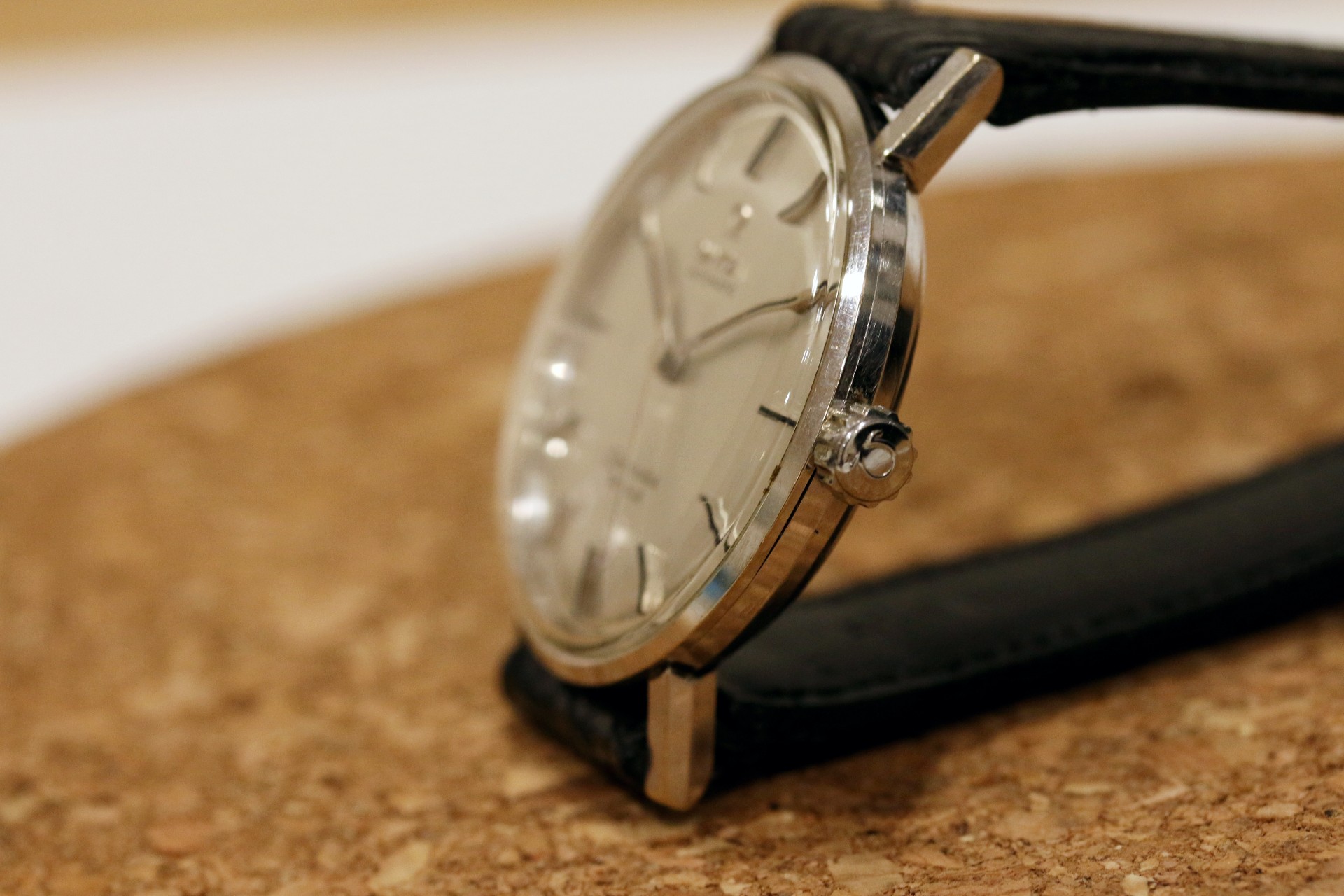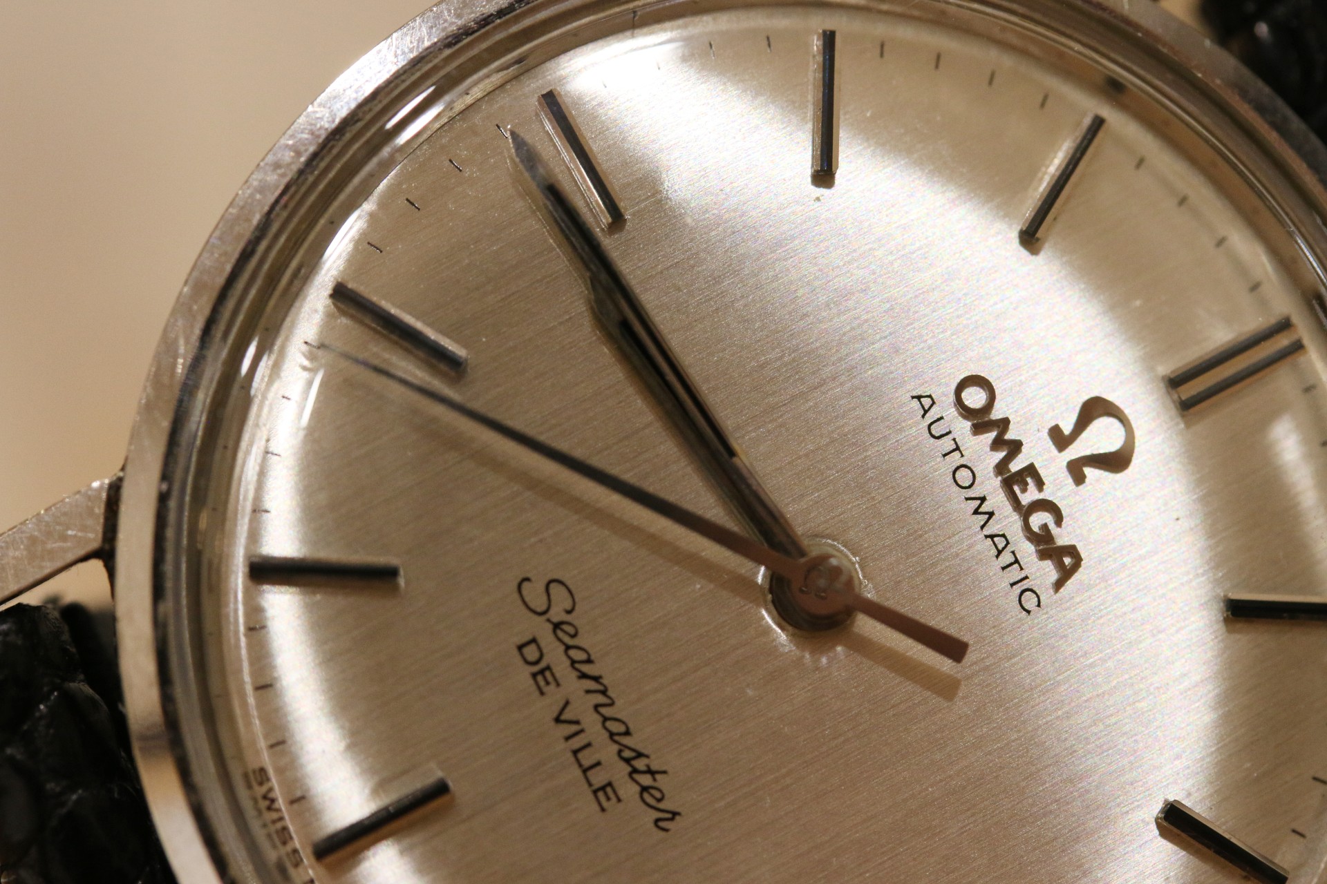 Up for sale is an uncommon 14k white gold Omega Seamaster Deville. The dial and hands are original, and the dial features a very hard to capture vertical grain pattern. There is some light debris around the center of the dial and may be able to removed. There is also a very slight bump near the 9 o clock marker which can only be seen at certain angles. Case is in nice condition with a presentation engraving on the back. The case is a 14k White gold Ross case. The watch runs but has not been serviced in my possession. The crown is also a newer replacement as it came to me without a crown. If you have any questions, please feel free to pm me!