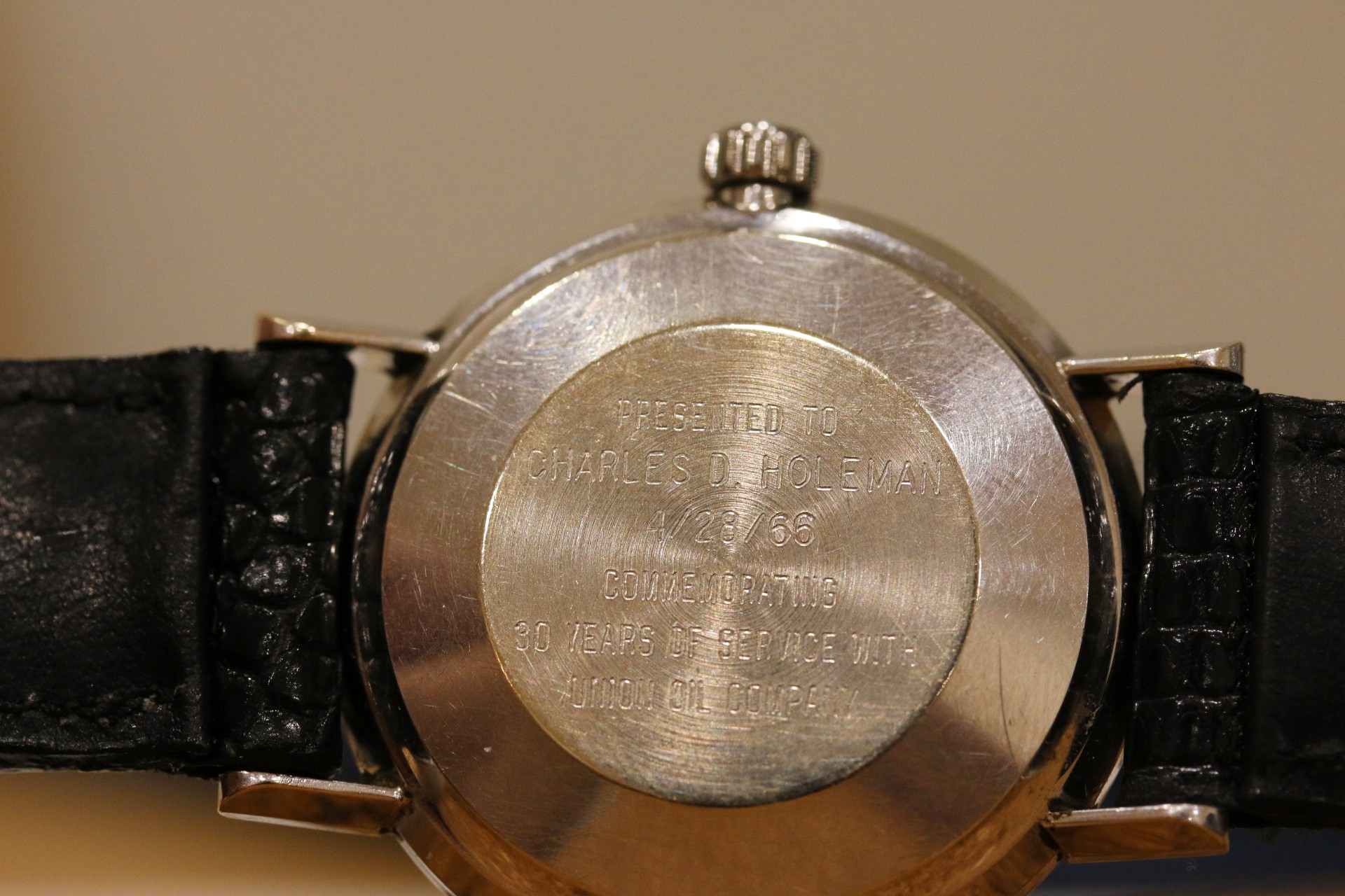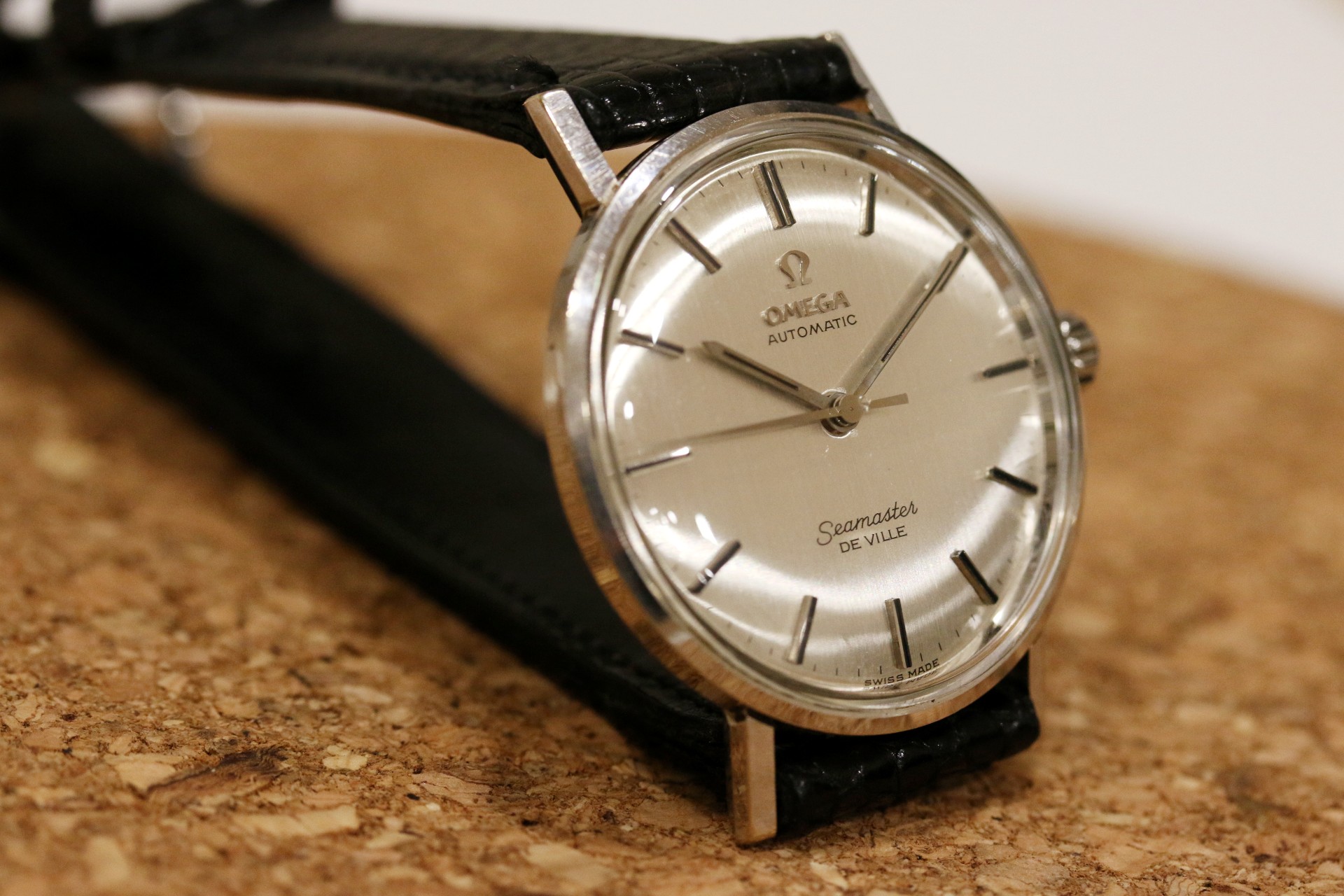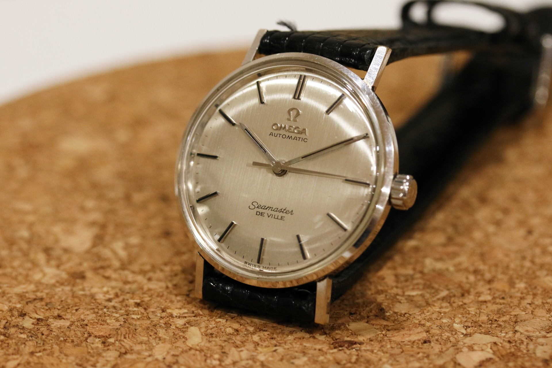 Up for sale is an uncommon 14k white gold Omega Seamaster Deville. The dial and hands are original, and the dial features a very hard to capture vertical grain pattern. There is some light debris around the center of the dial and may be able to removed. There is also a very slight bump near the 9 o clock marker which can only be seen at certain angles. Case is in nice condition with a presentation engraving on the back. The case is a 14k White gold Ross case. The watch runs but has not been serviced in my possession. The crown is also a newer replacement as it came to me without a crown. If you have any questions, please feel free to pm me!