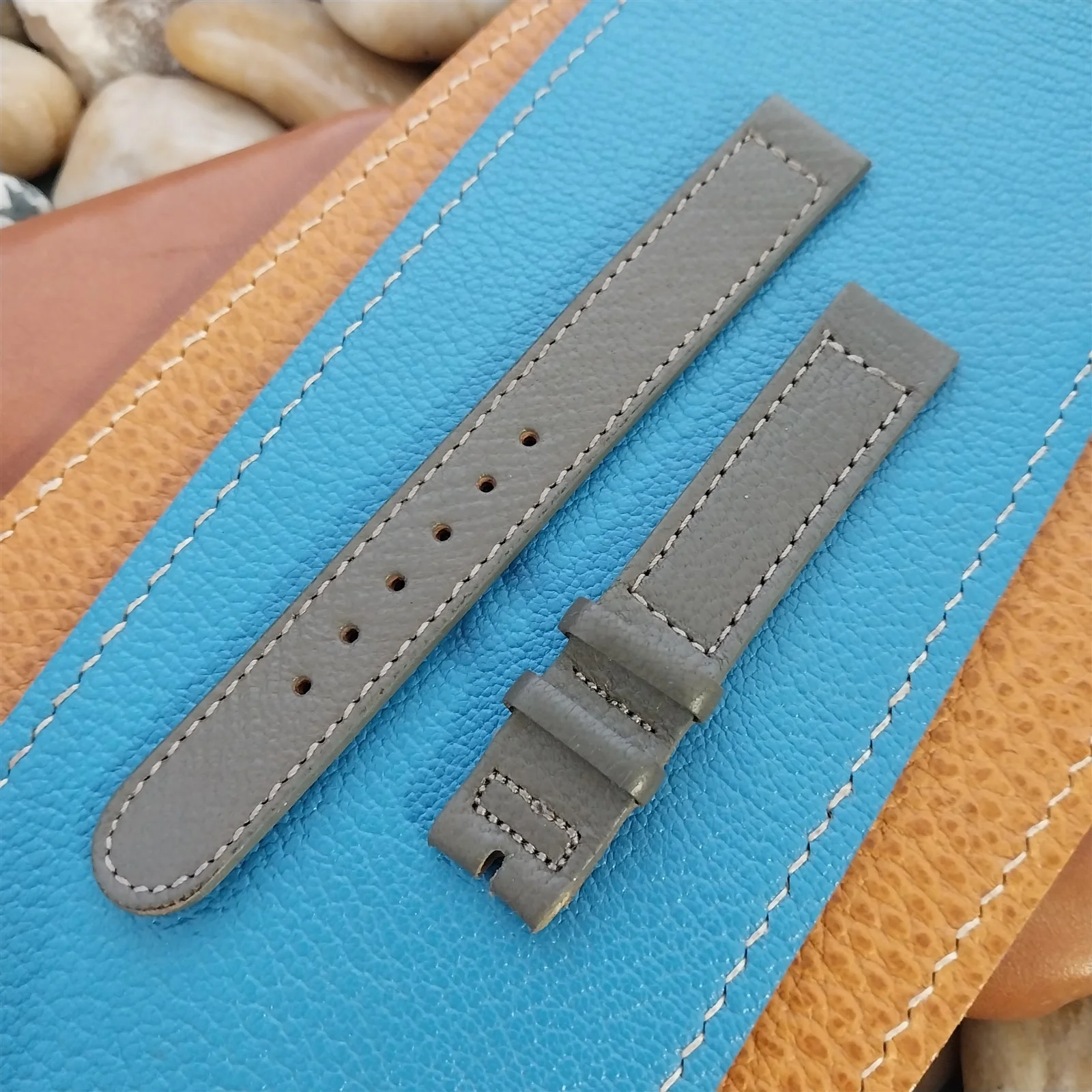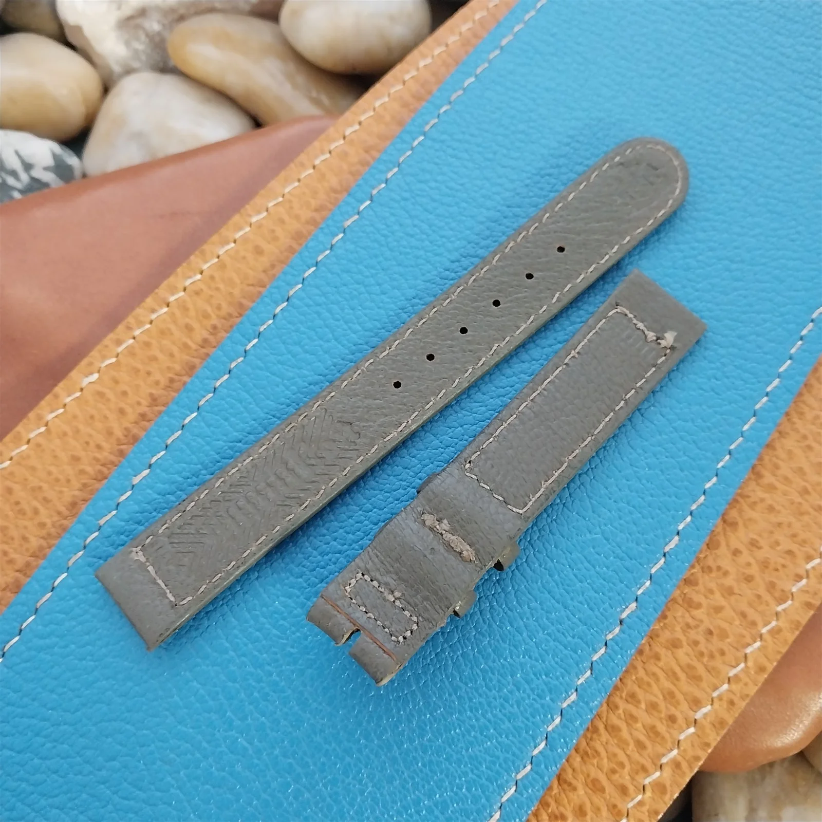 ·NOS unused 1950s old-stock Hamilton gray leather double-keeper watch strap.