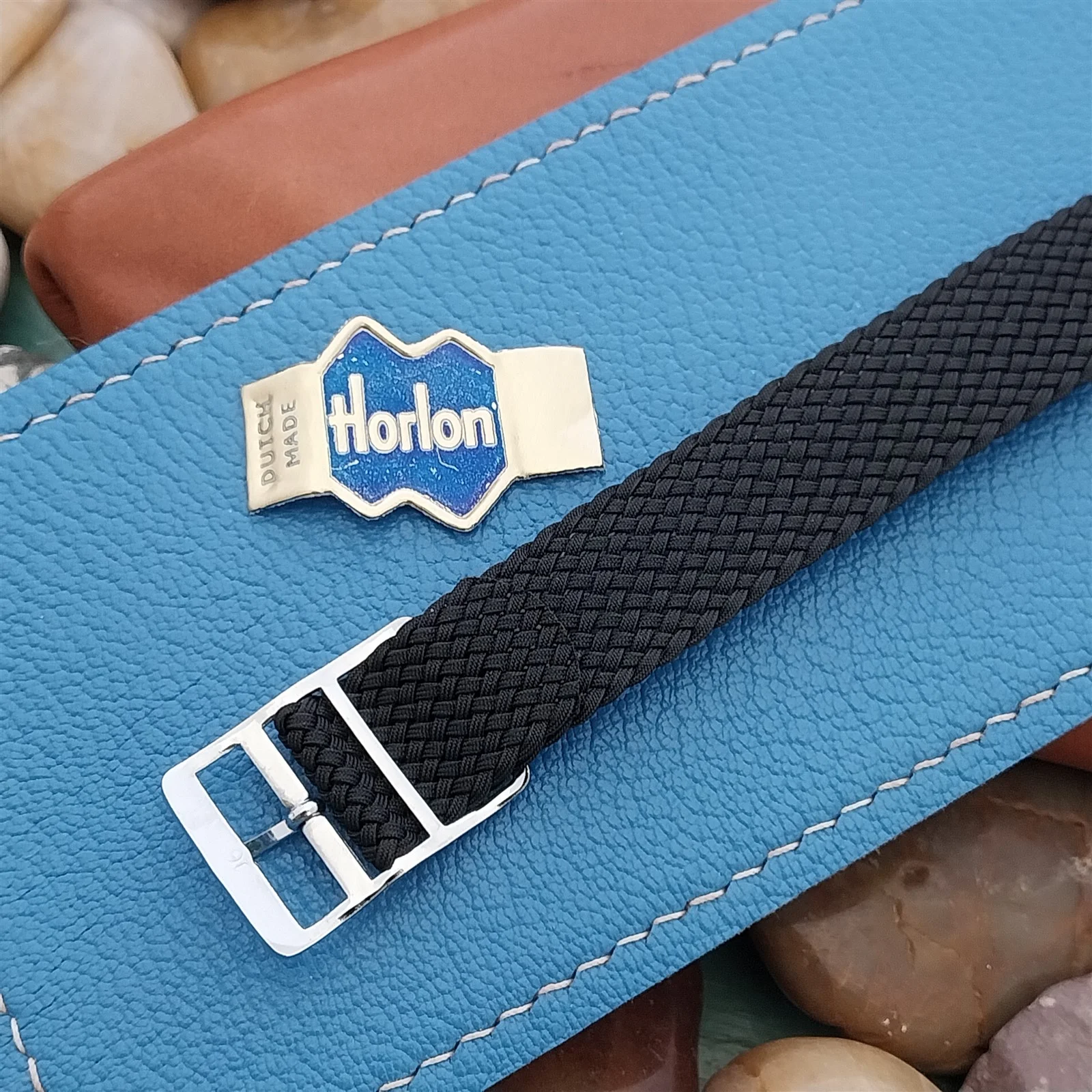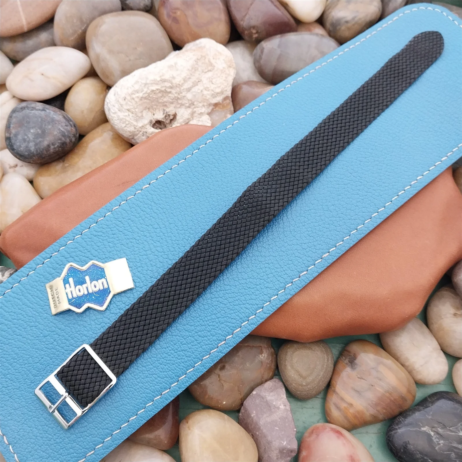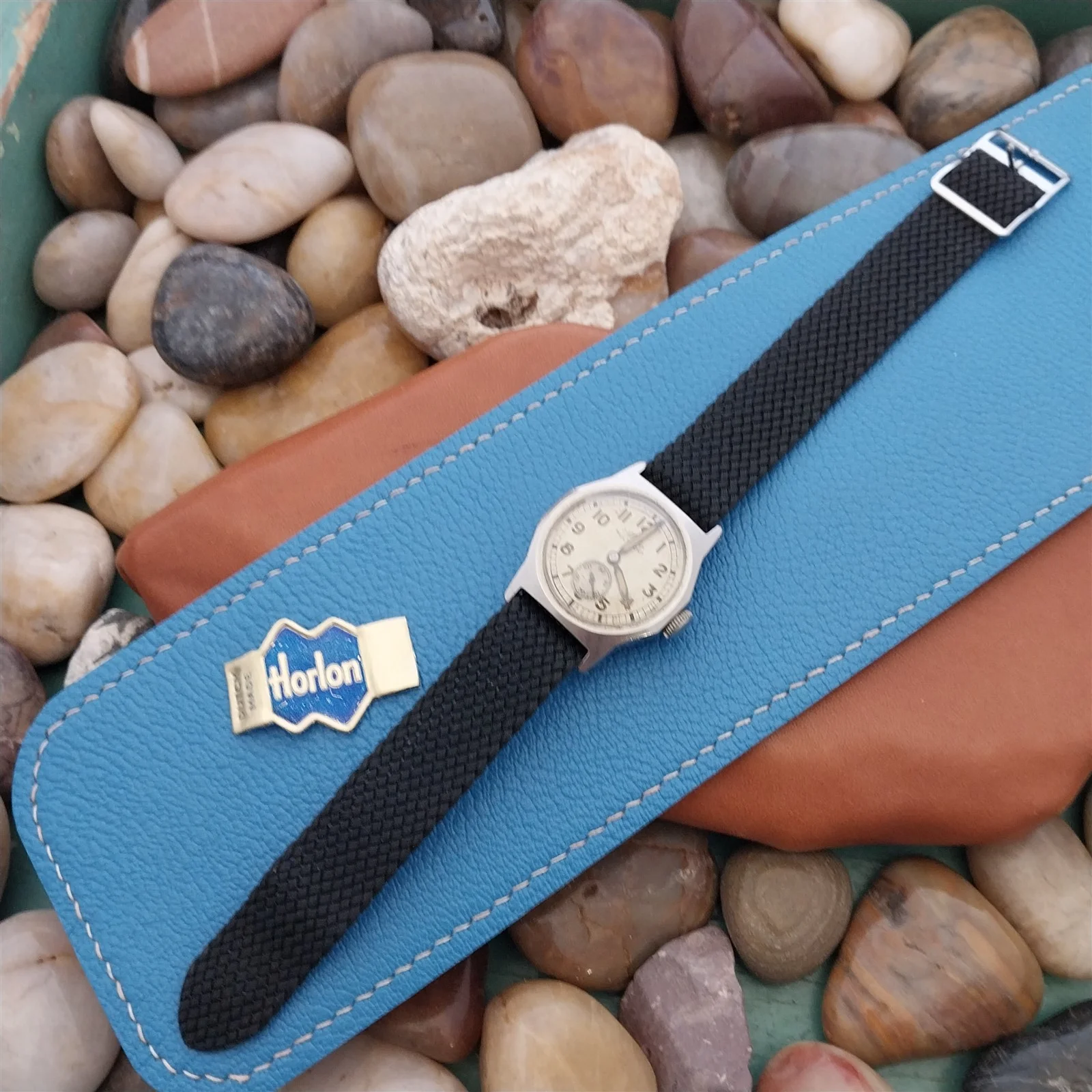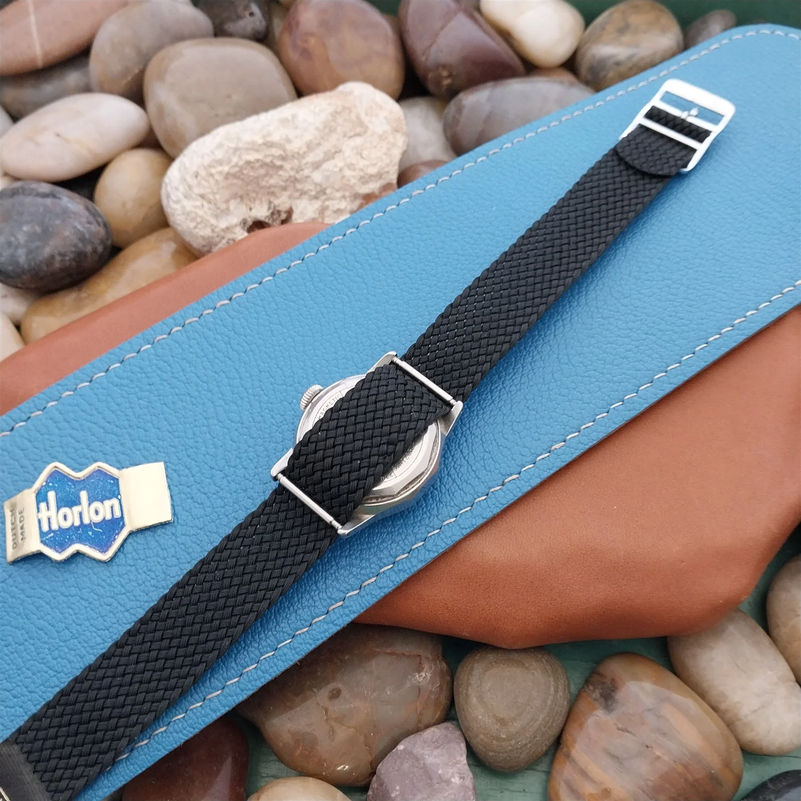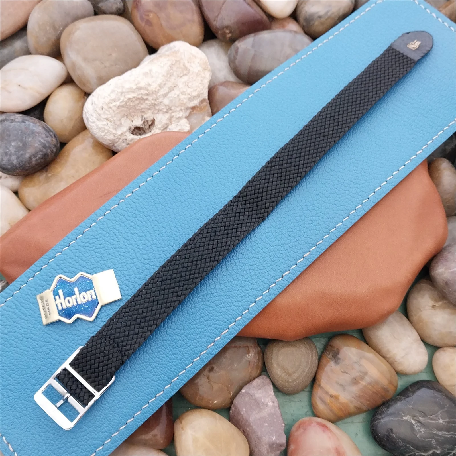 ·NOS unused 1960s-1970s old-stock braided Perlon mesh one-piece field watch strap.