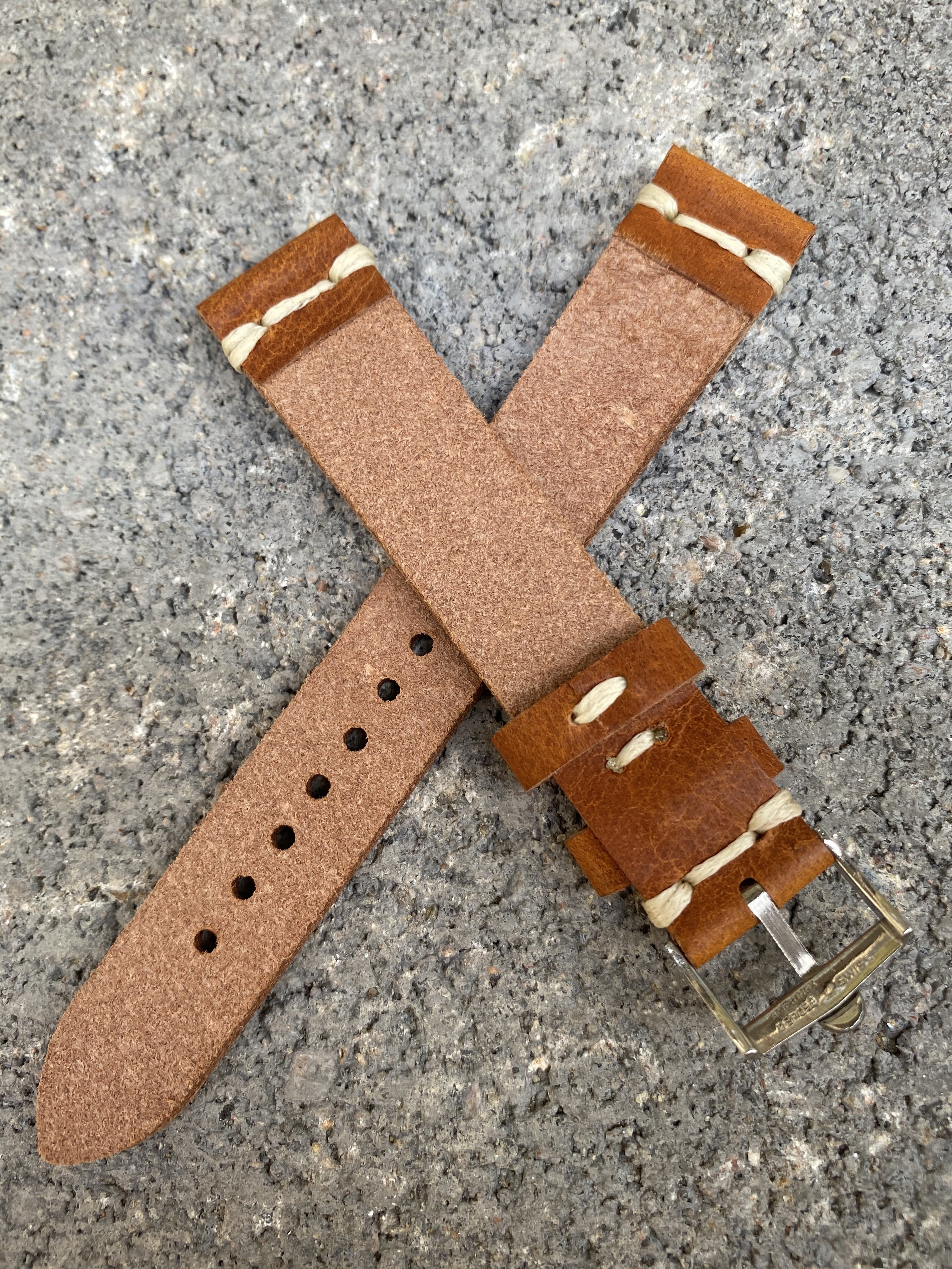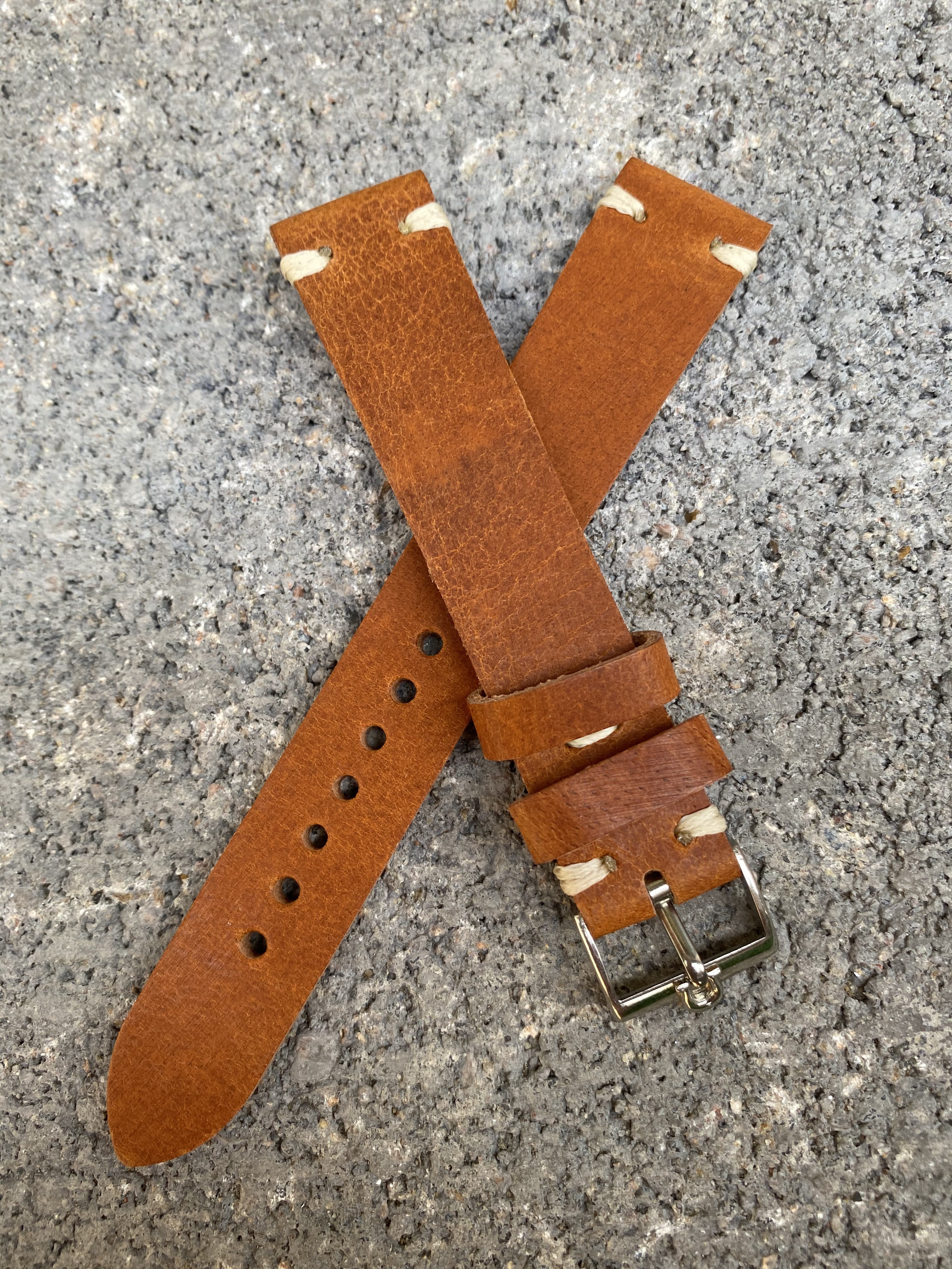 Two Stitch Tan - 18/16mm tan brown leather strap with white/cream stitching and a basic spring bars included.