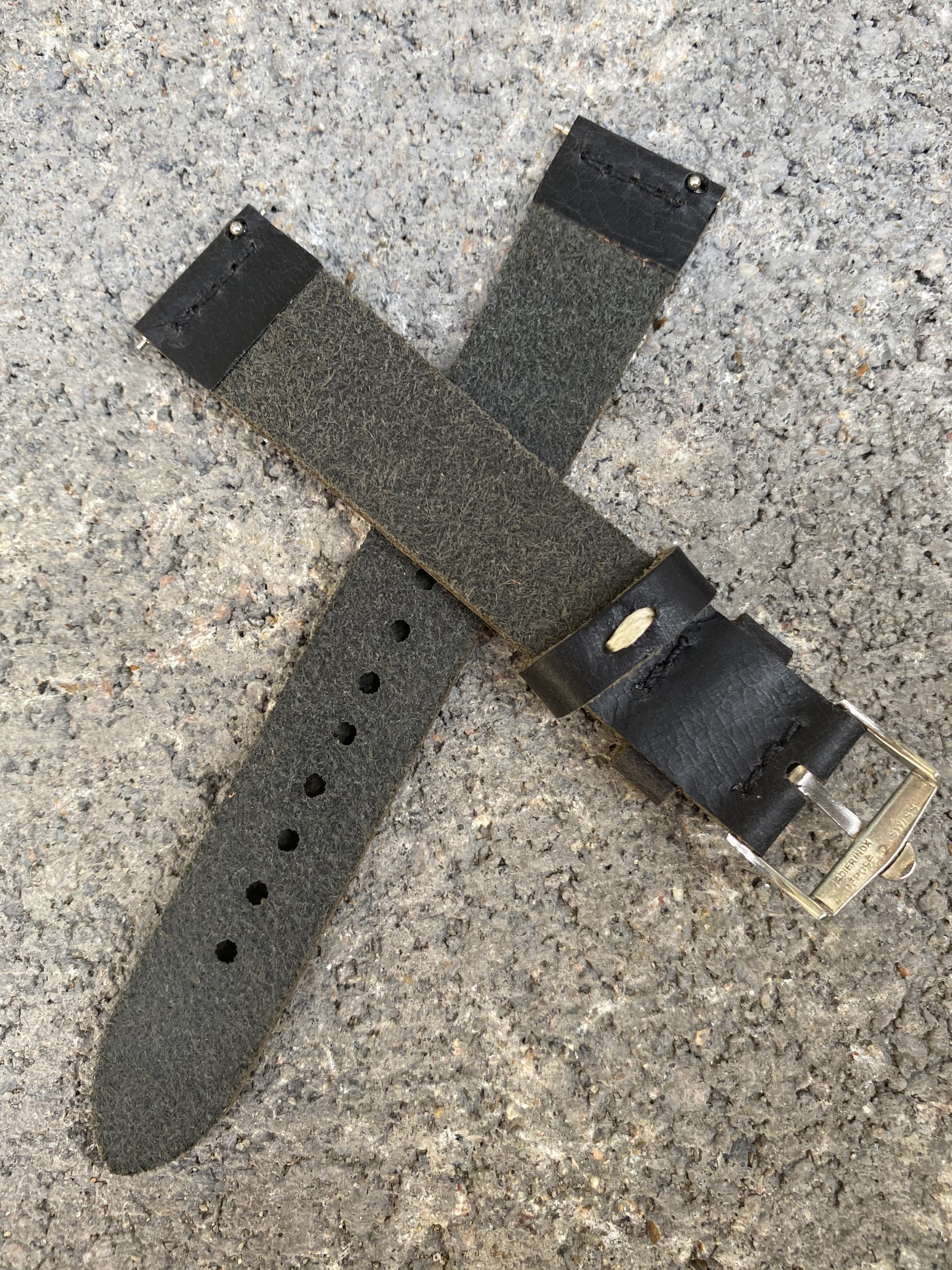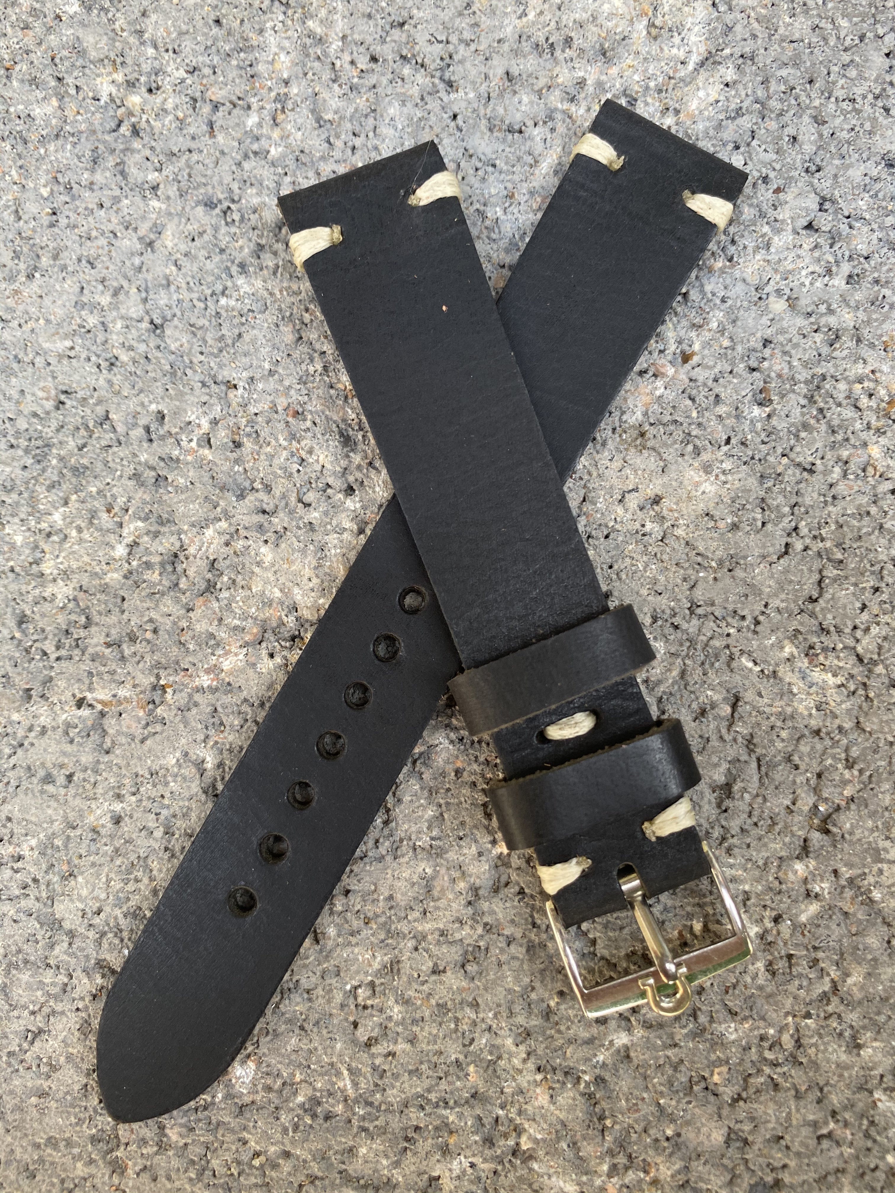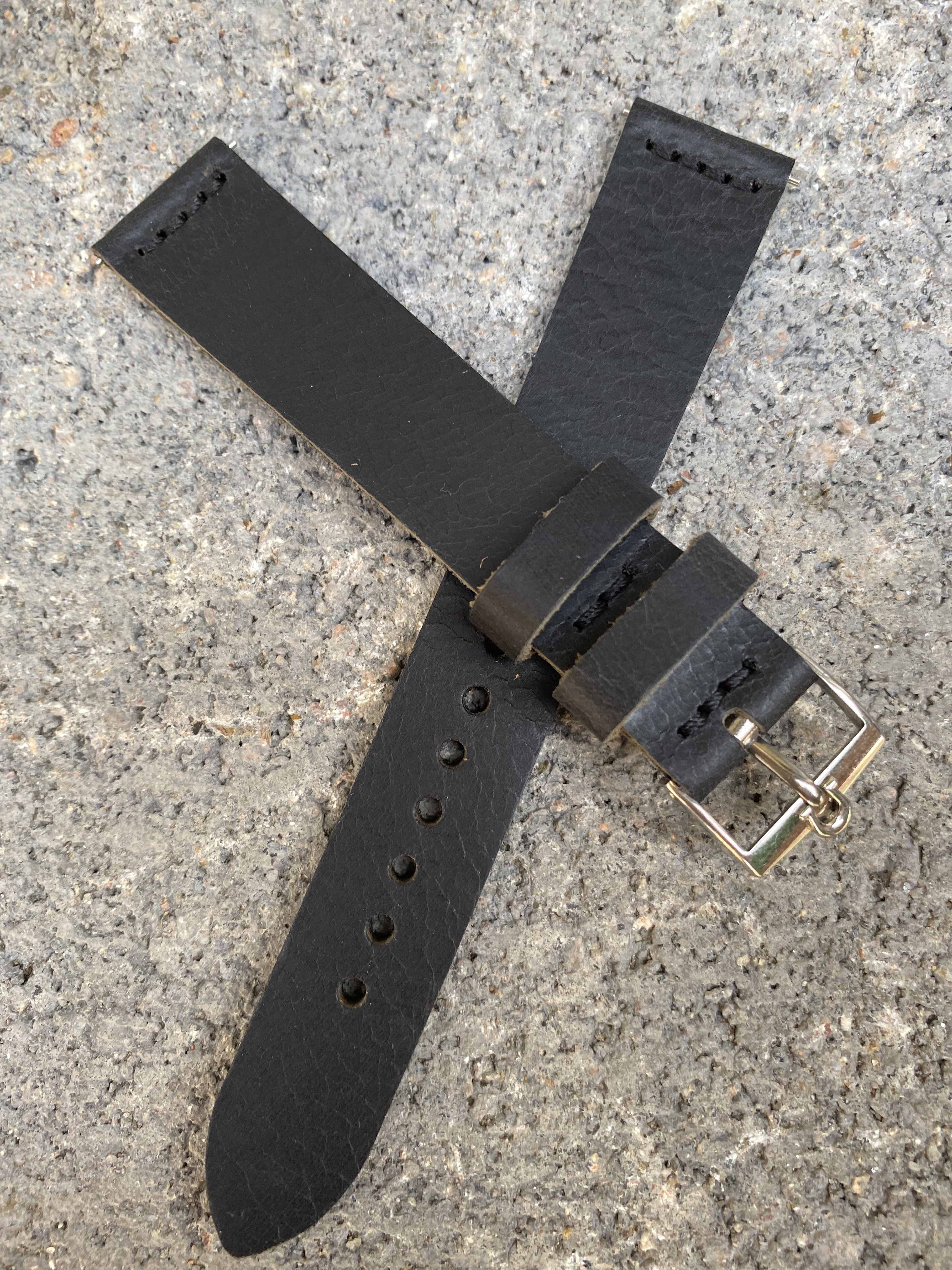 Black - 18/16mm black vintage strap with black stitching and quick release spring bars.