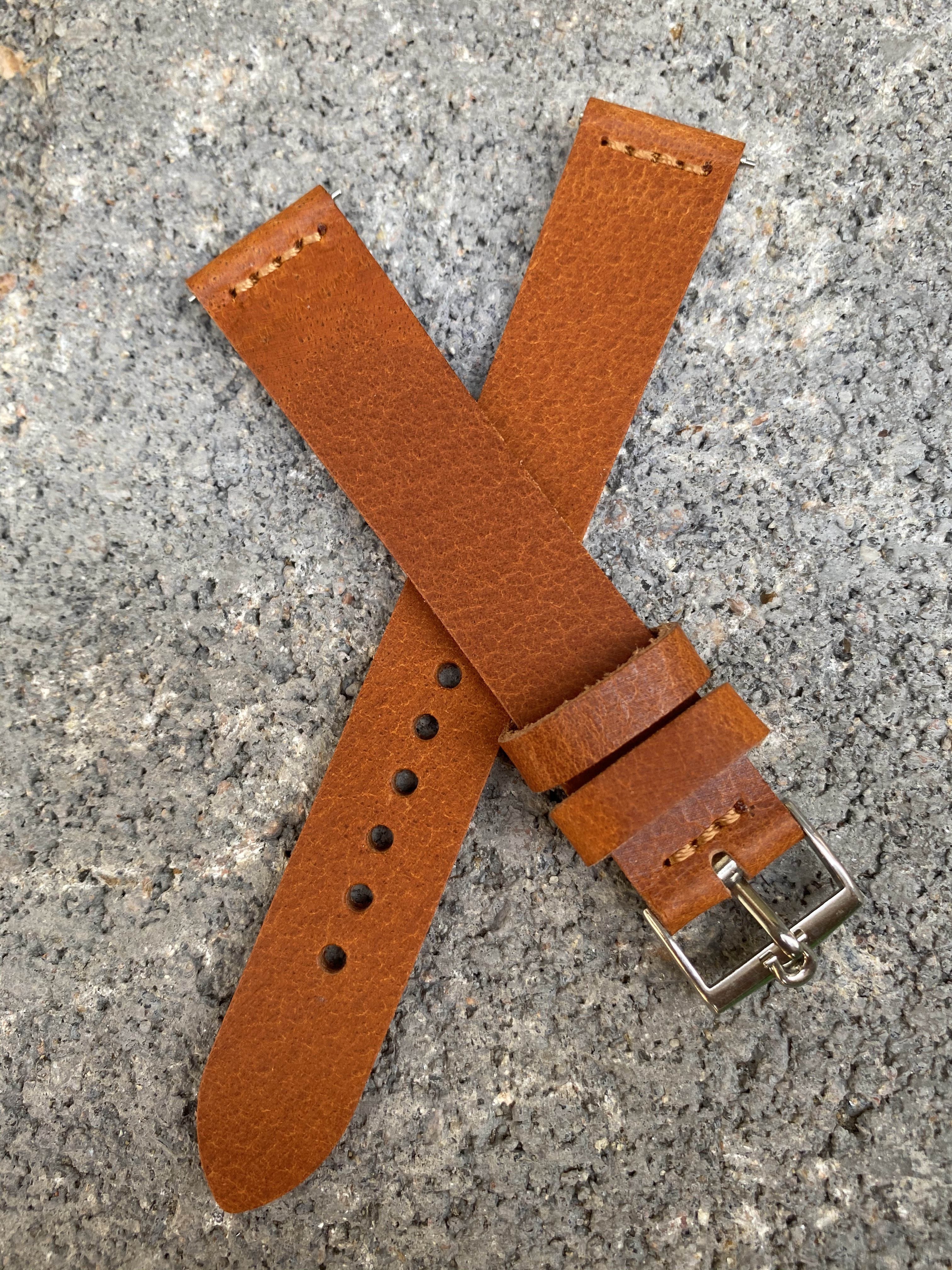 Tan - 18/16mm tan brown vintage strap with brown stitching and quick release spring bars.