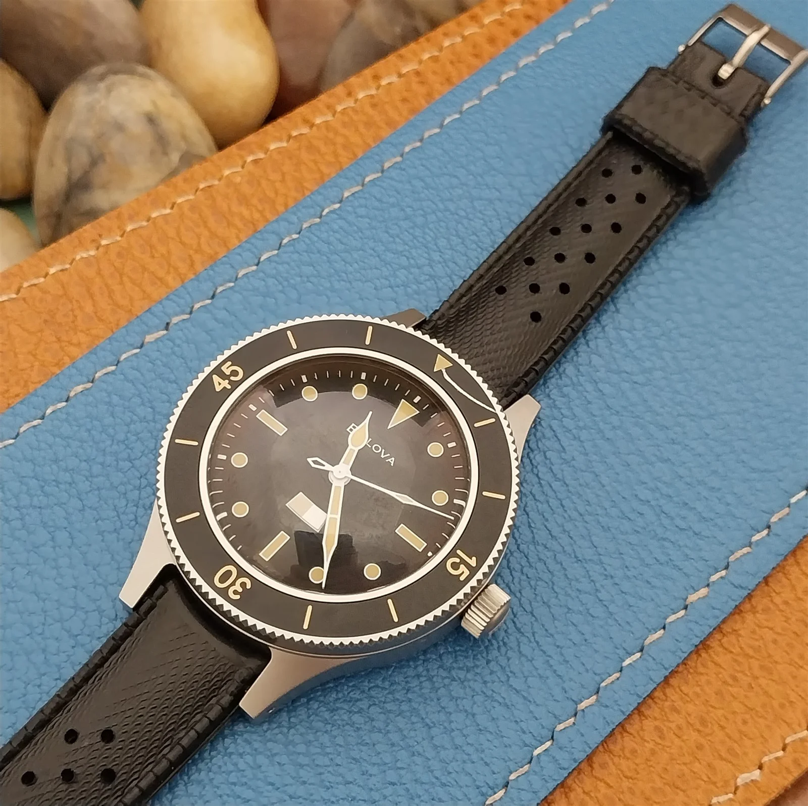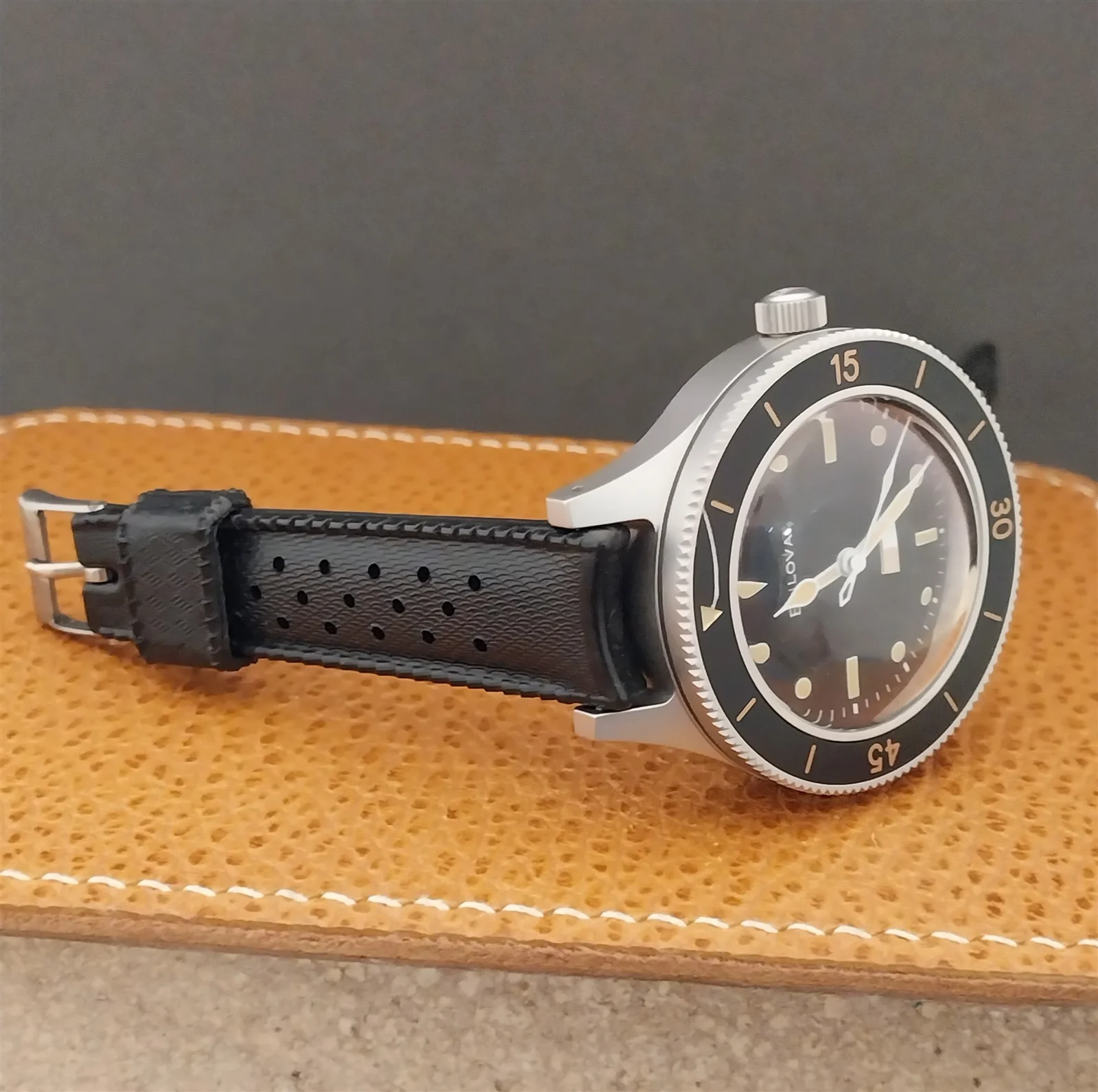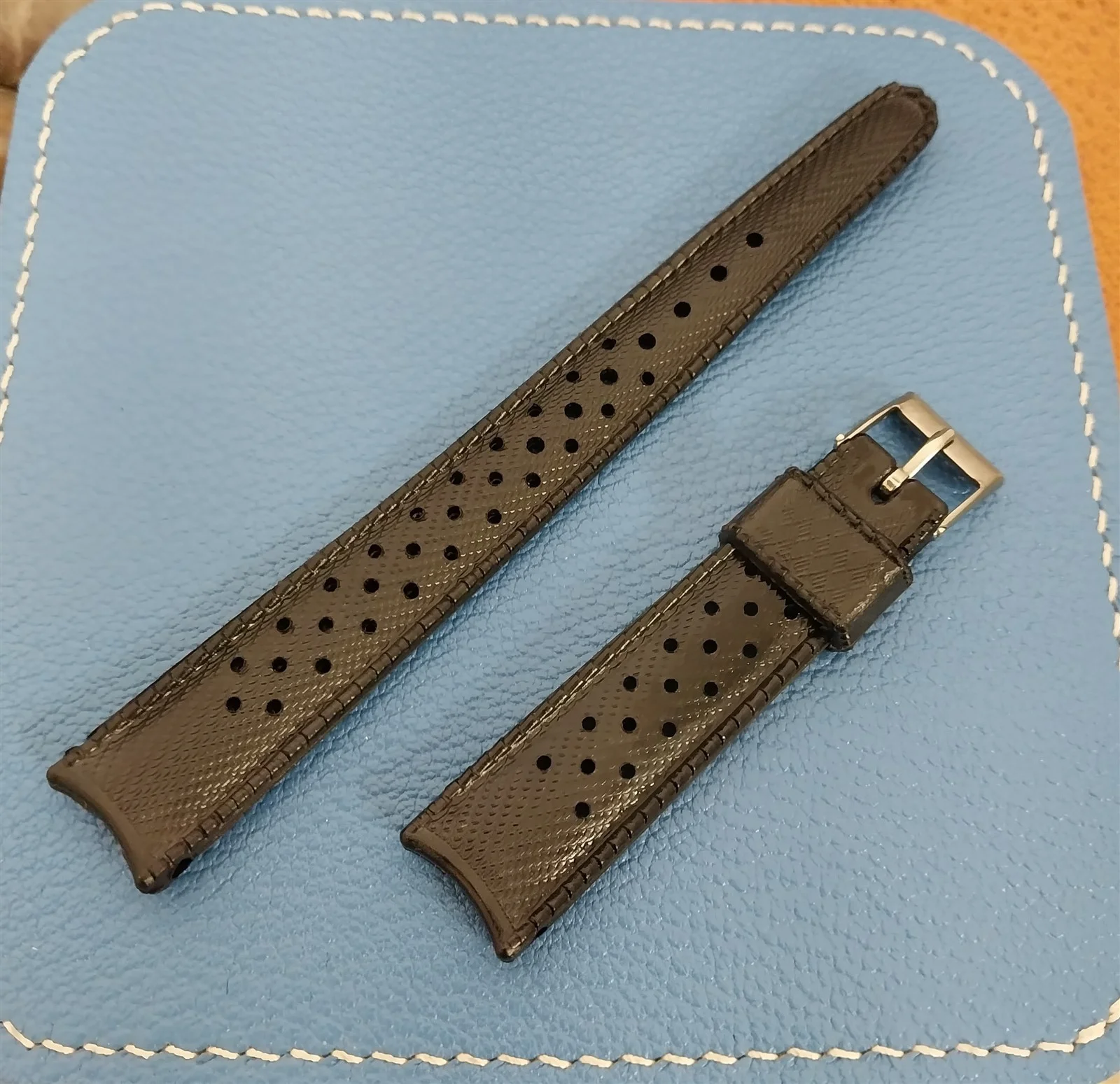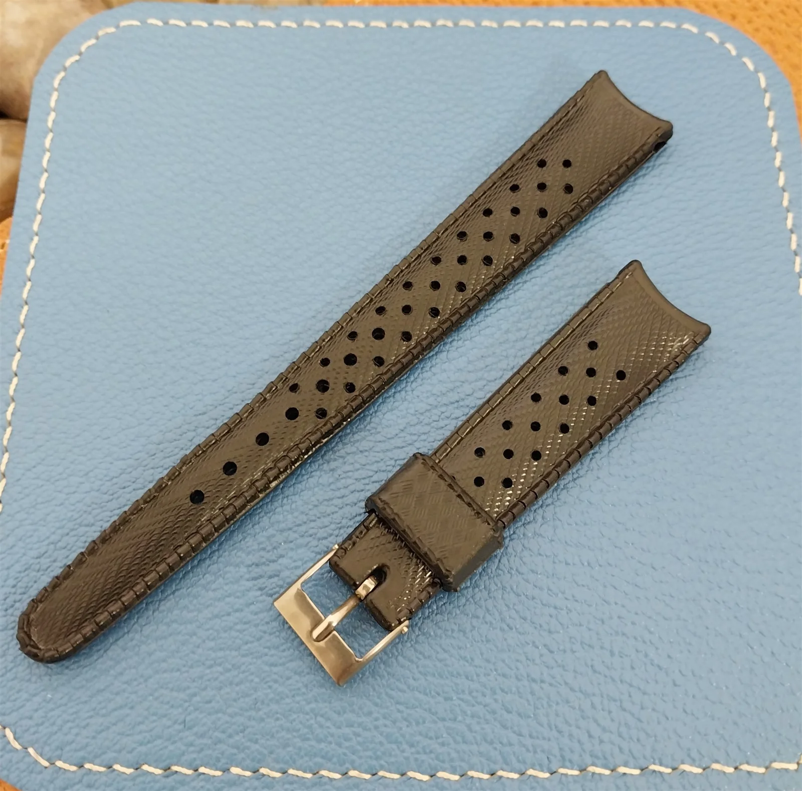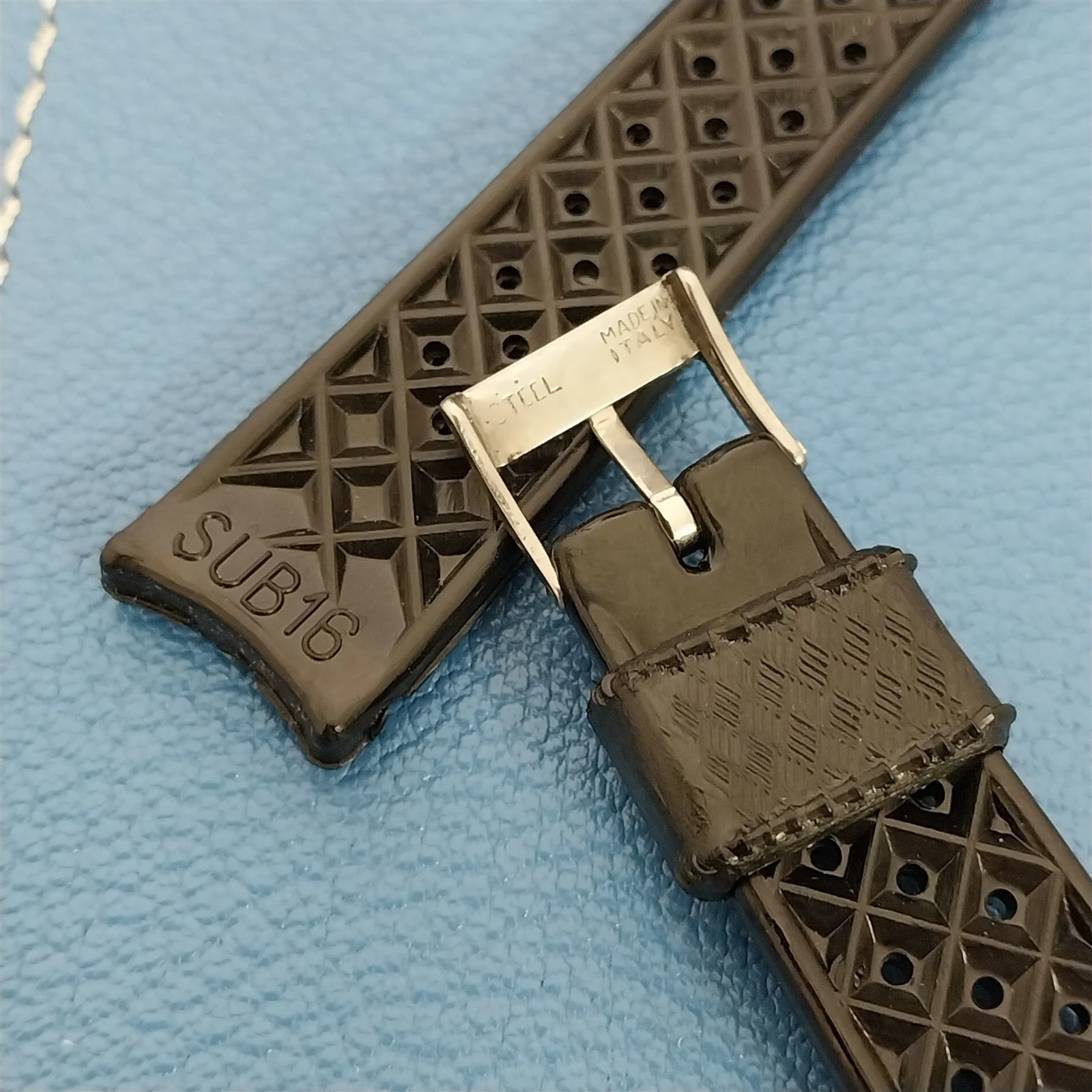 ·NOS unused 1960s-1970s old-stock Swiss-made SUB black rubber dive watch strap.