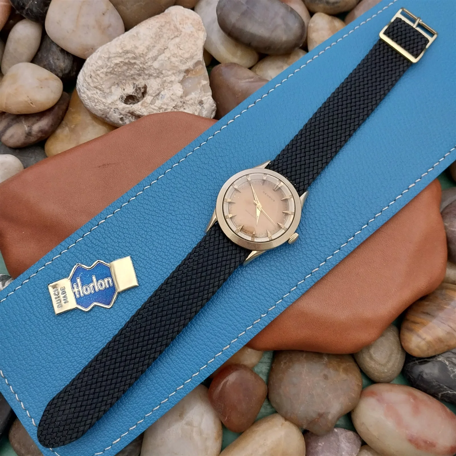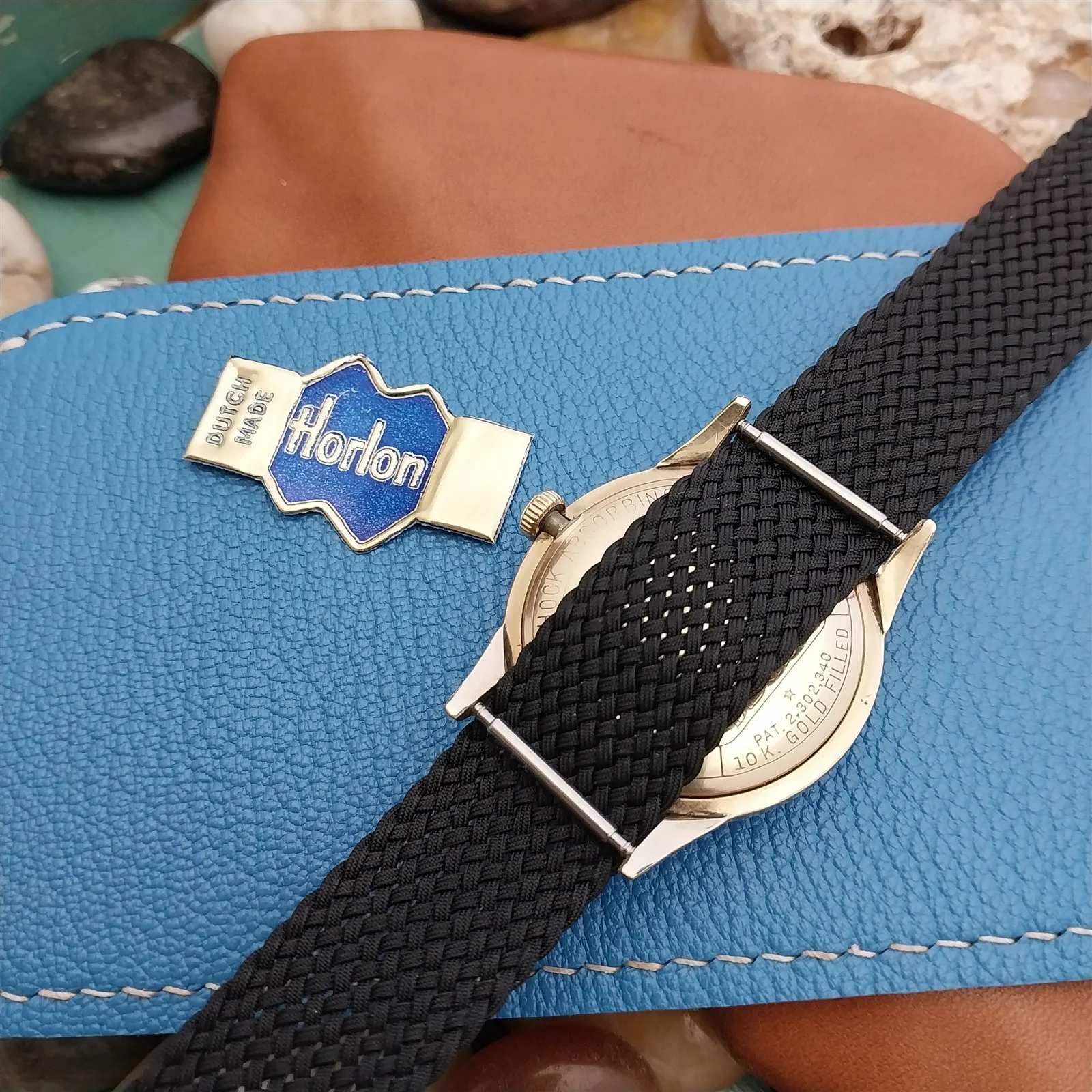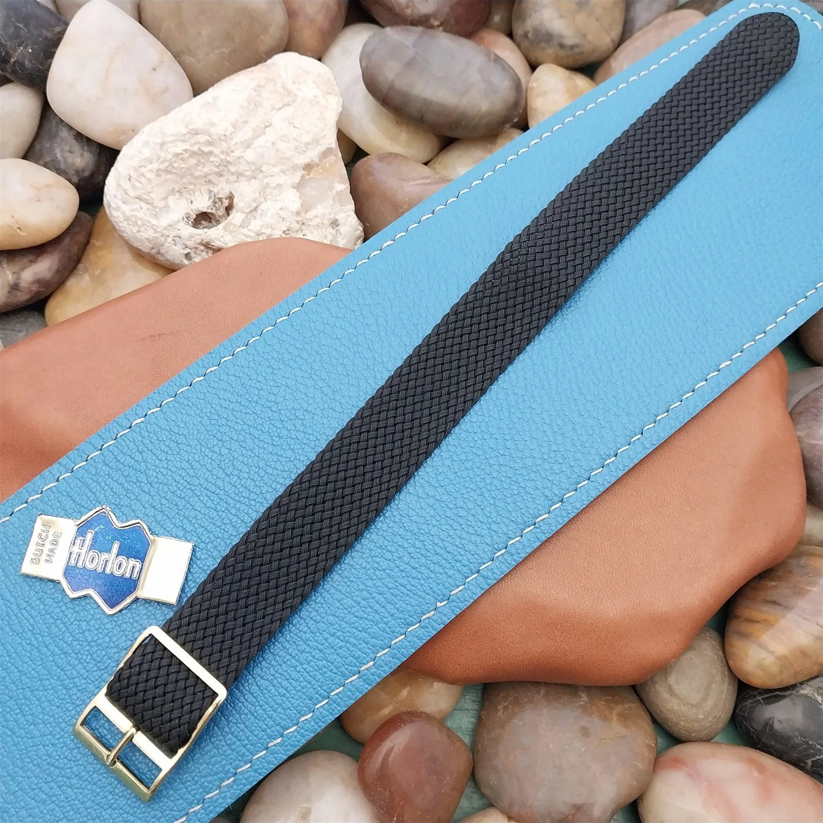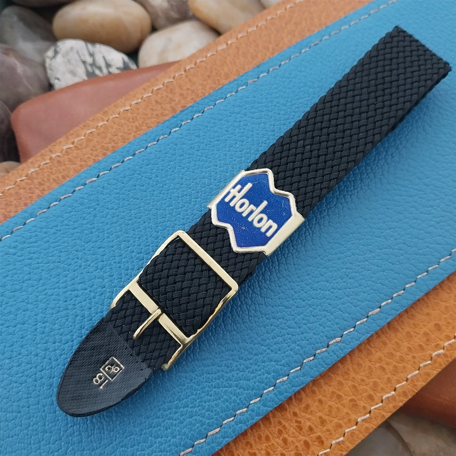 ·NOS unused 1960s-1970s old-stock Horlon black Perlon 1-piece field watch strap.