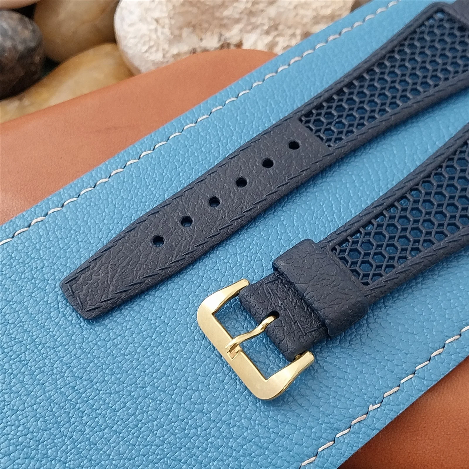 ·NOS unused 1970s old-stock Golay & Guignard Playa perforated blue nylon diver watch strap.