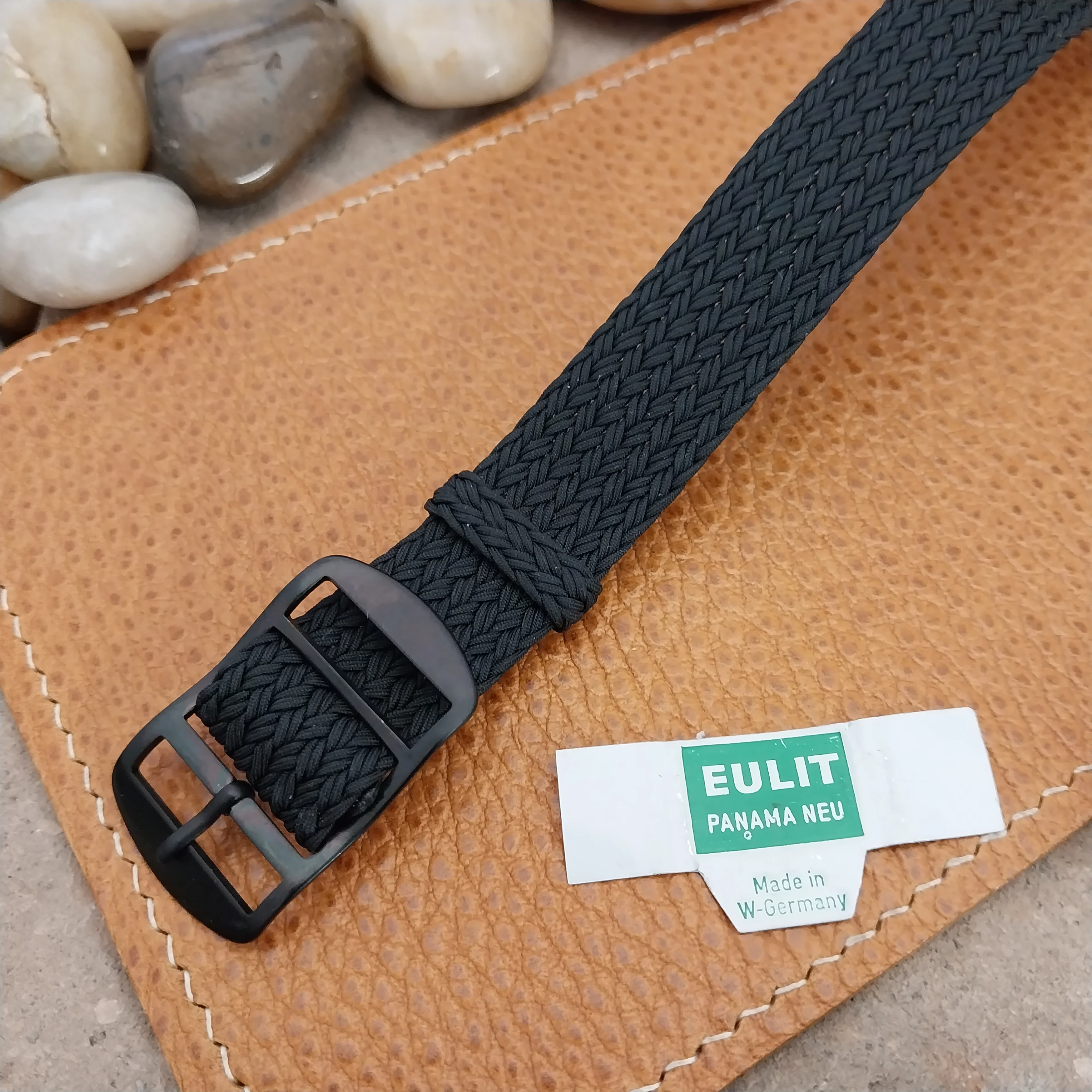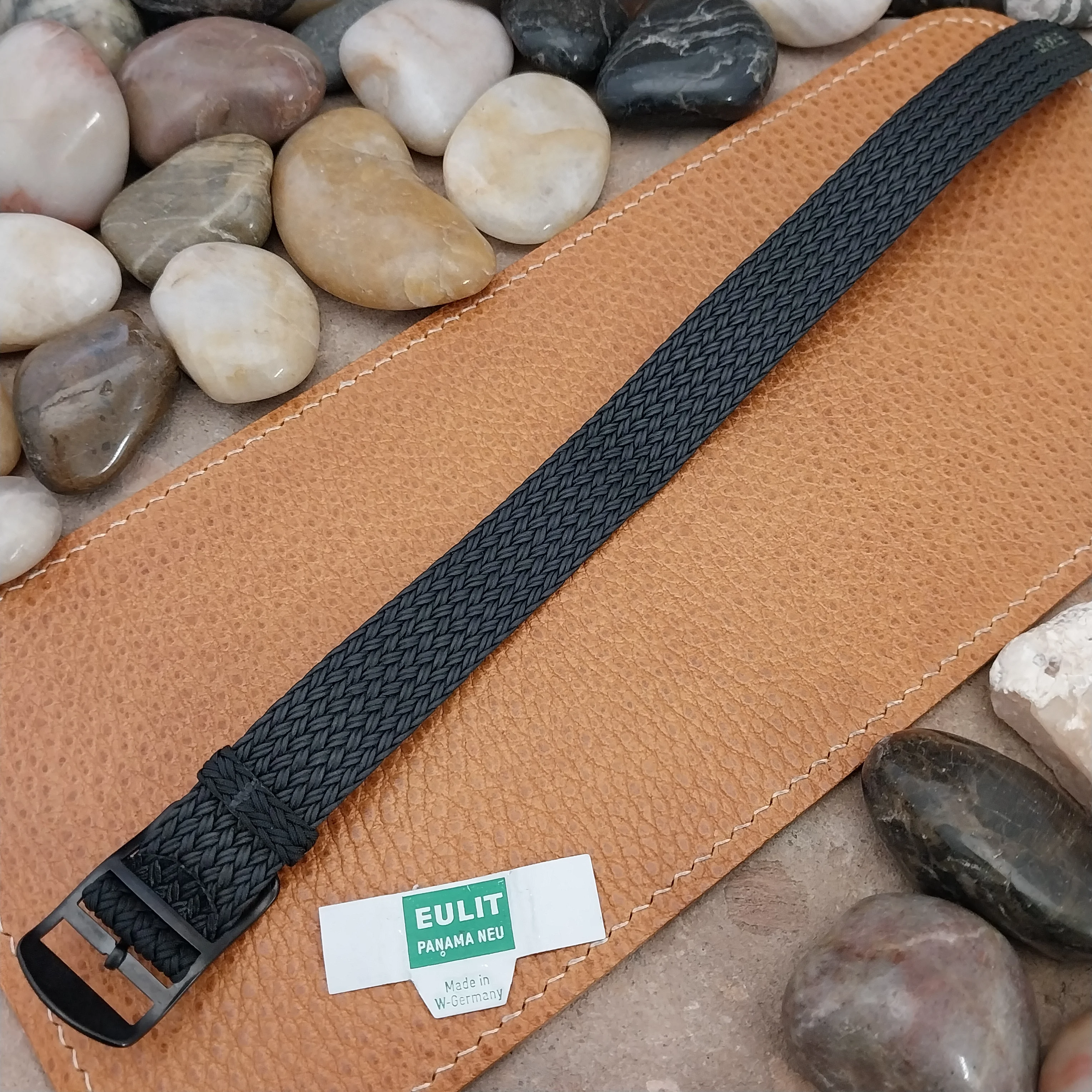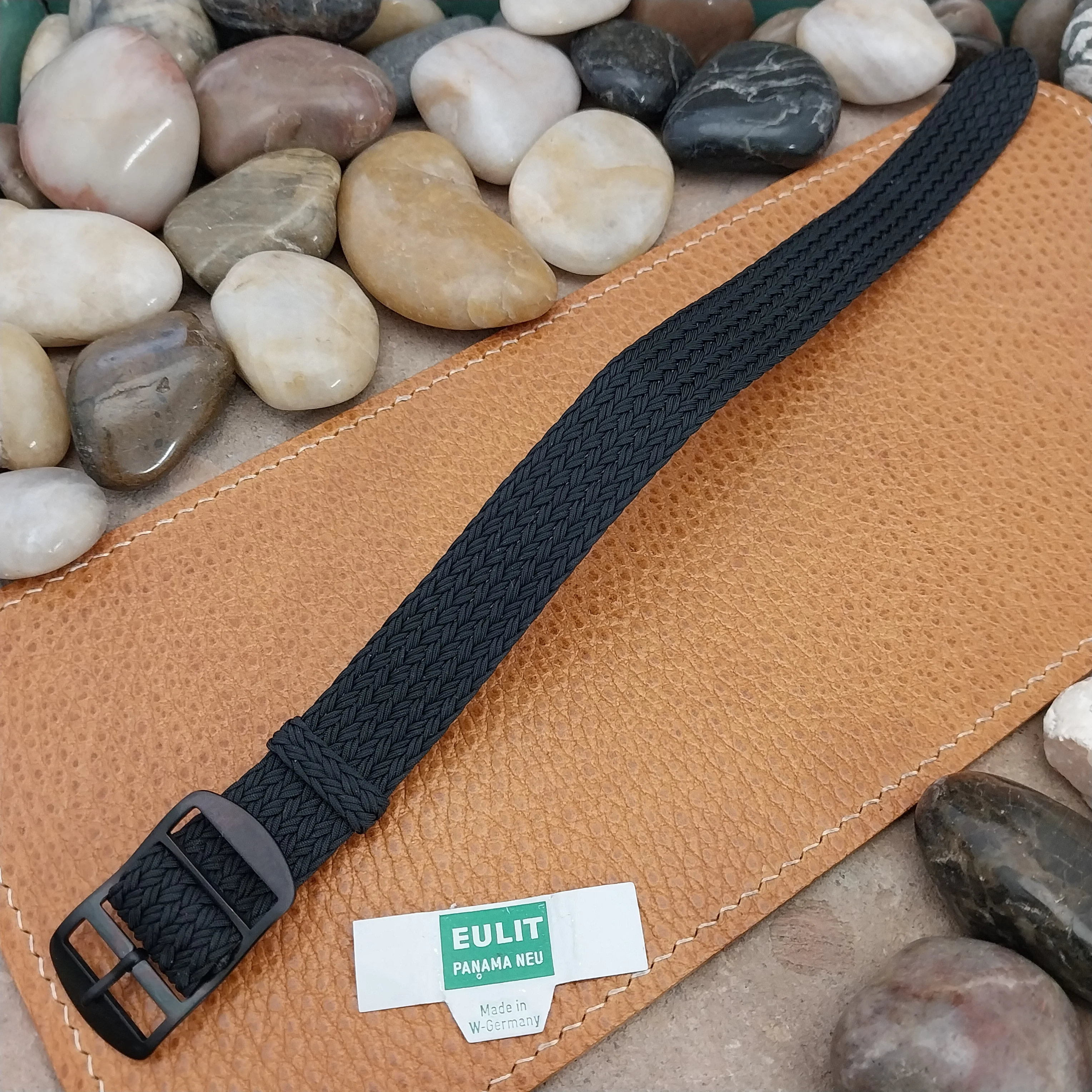 ·NOS unused 1960s-1970s old-stock Eulit Panama Neu thick braided black Perlon field watch strap.