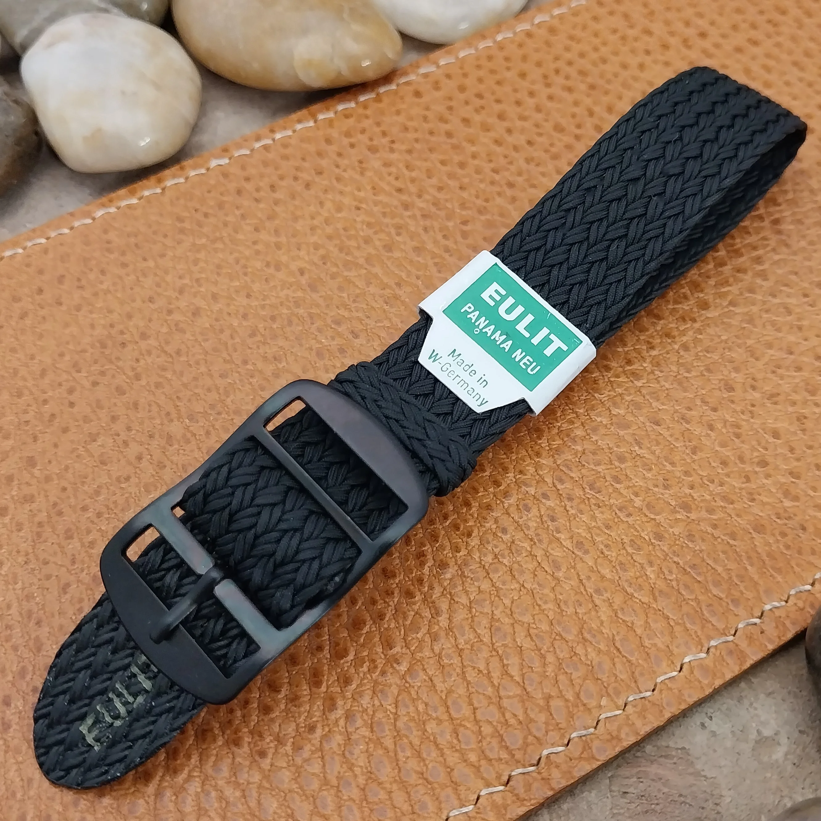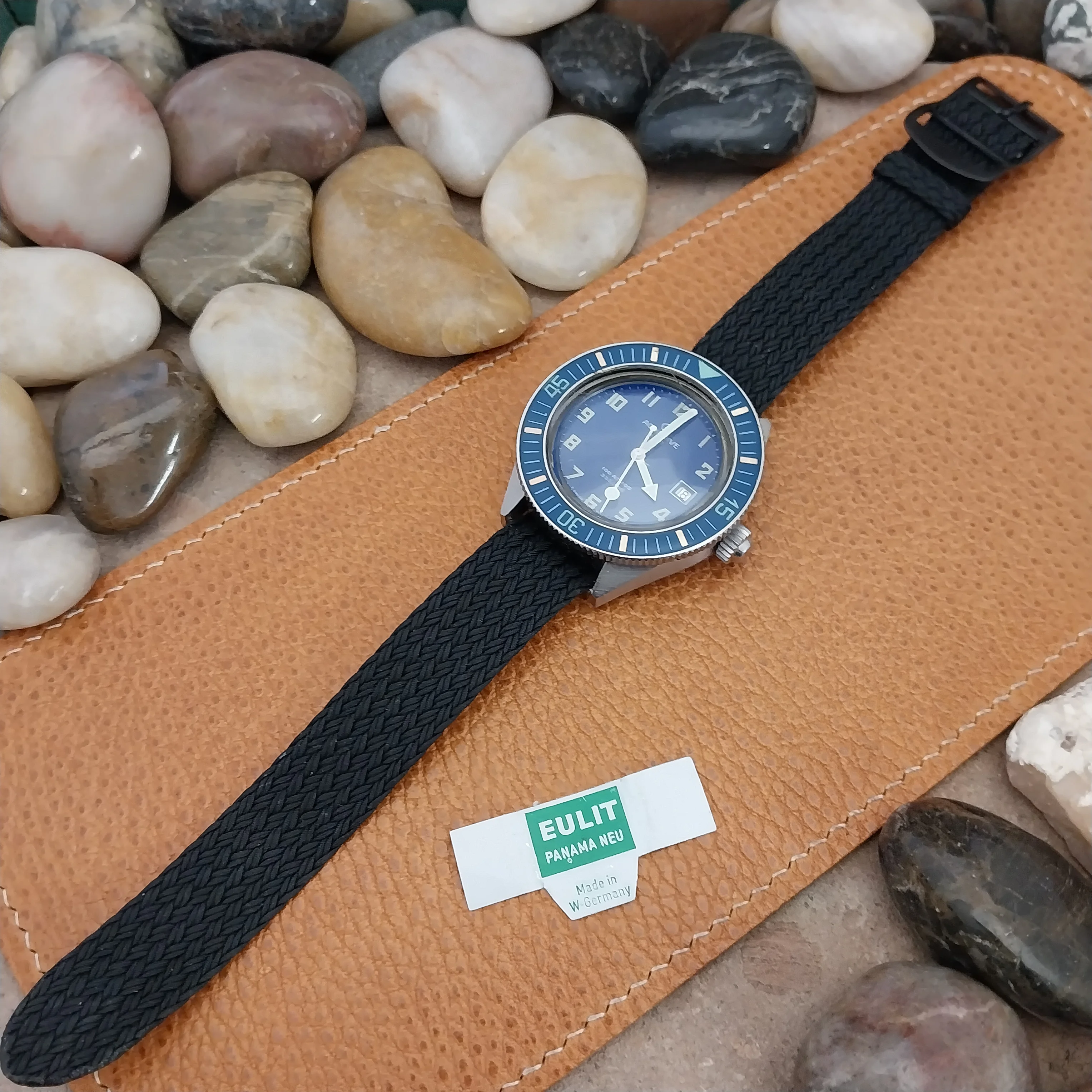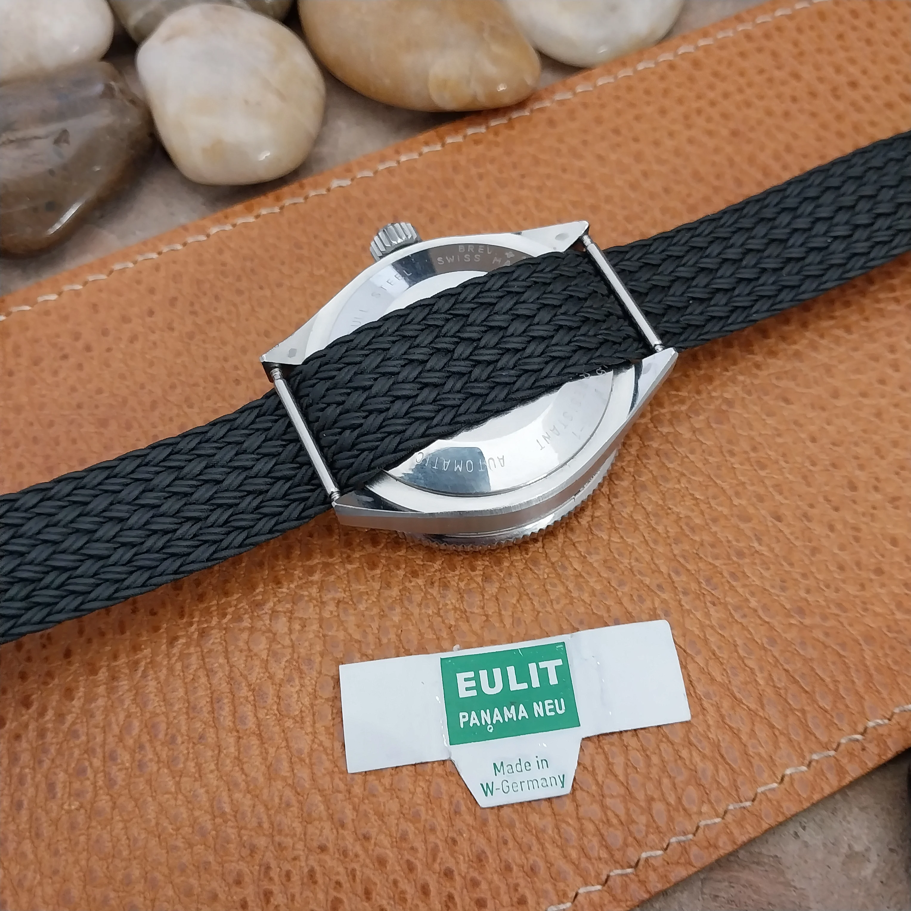 ·NOS unused 1960s-1970s old-stock Eulit Panama Neu thick braided black Perlon field watch strap.