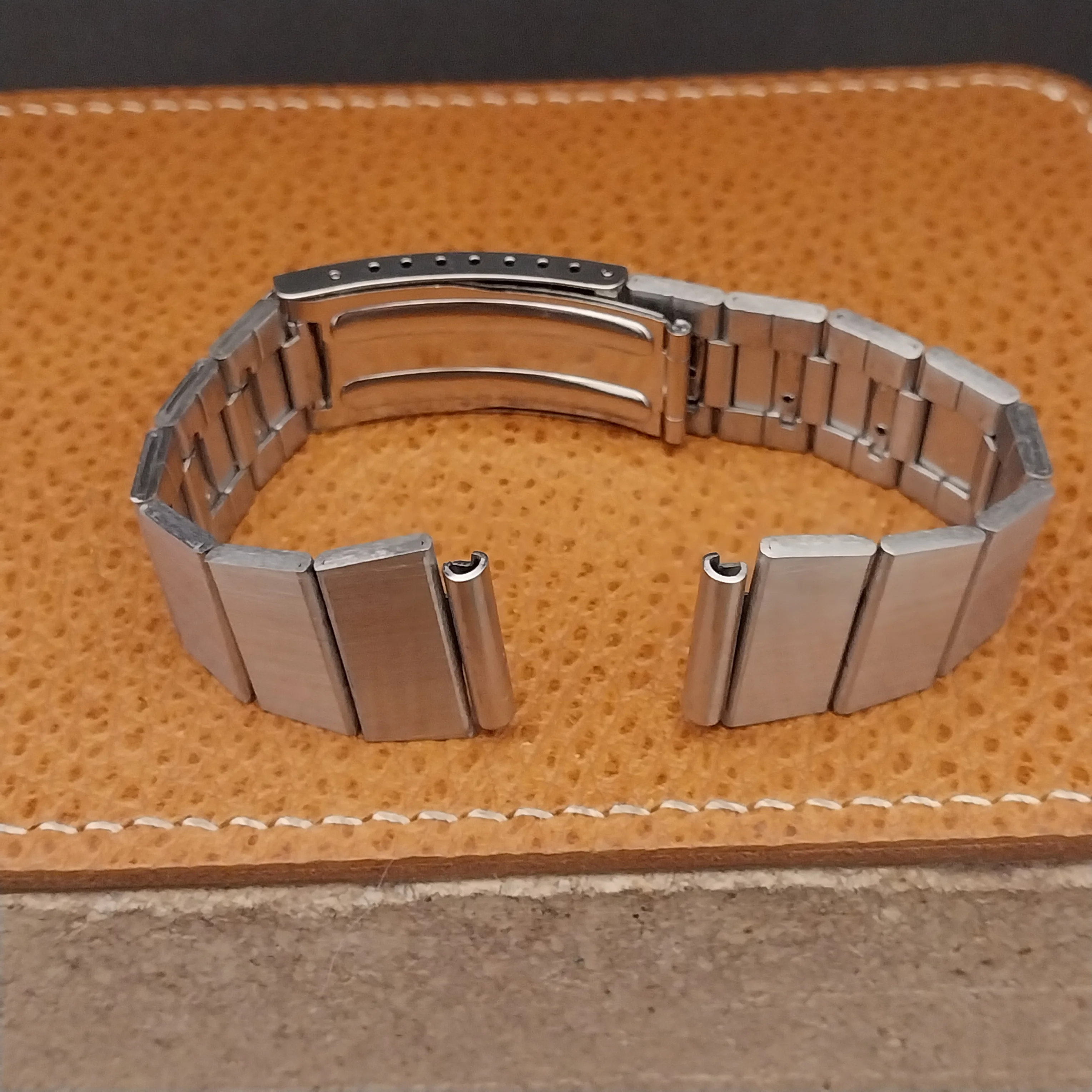 ·NOS unused 1970s old-stock brushed stainless steel deployment watch bracelet.