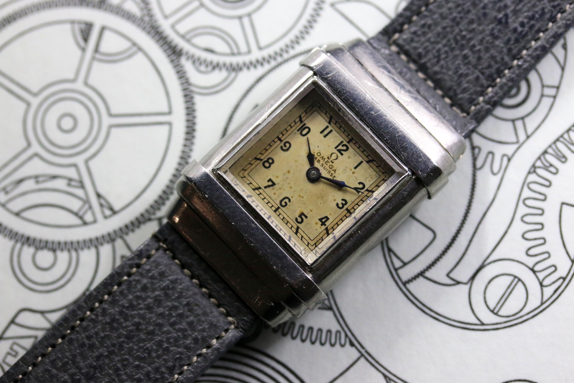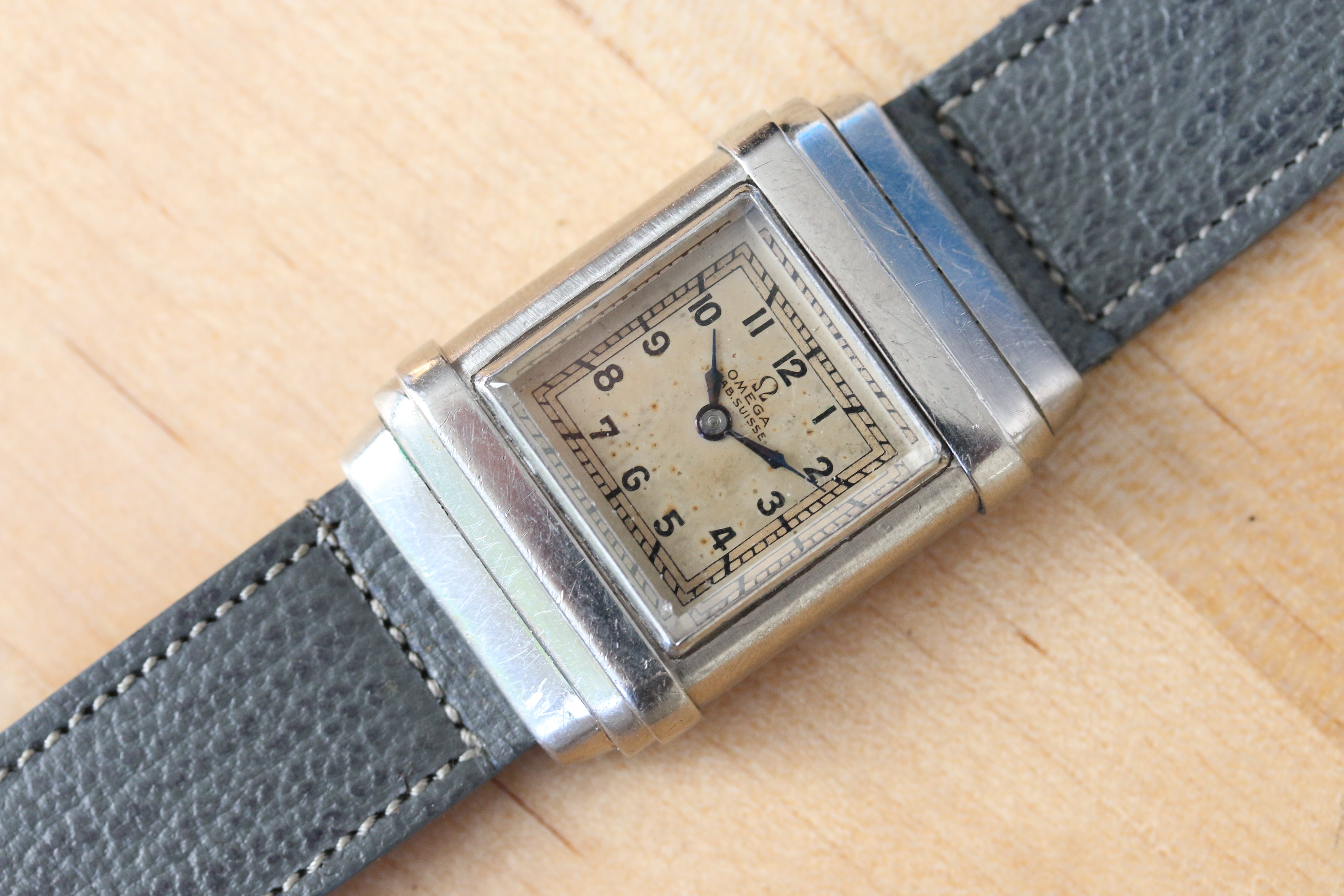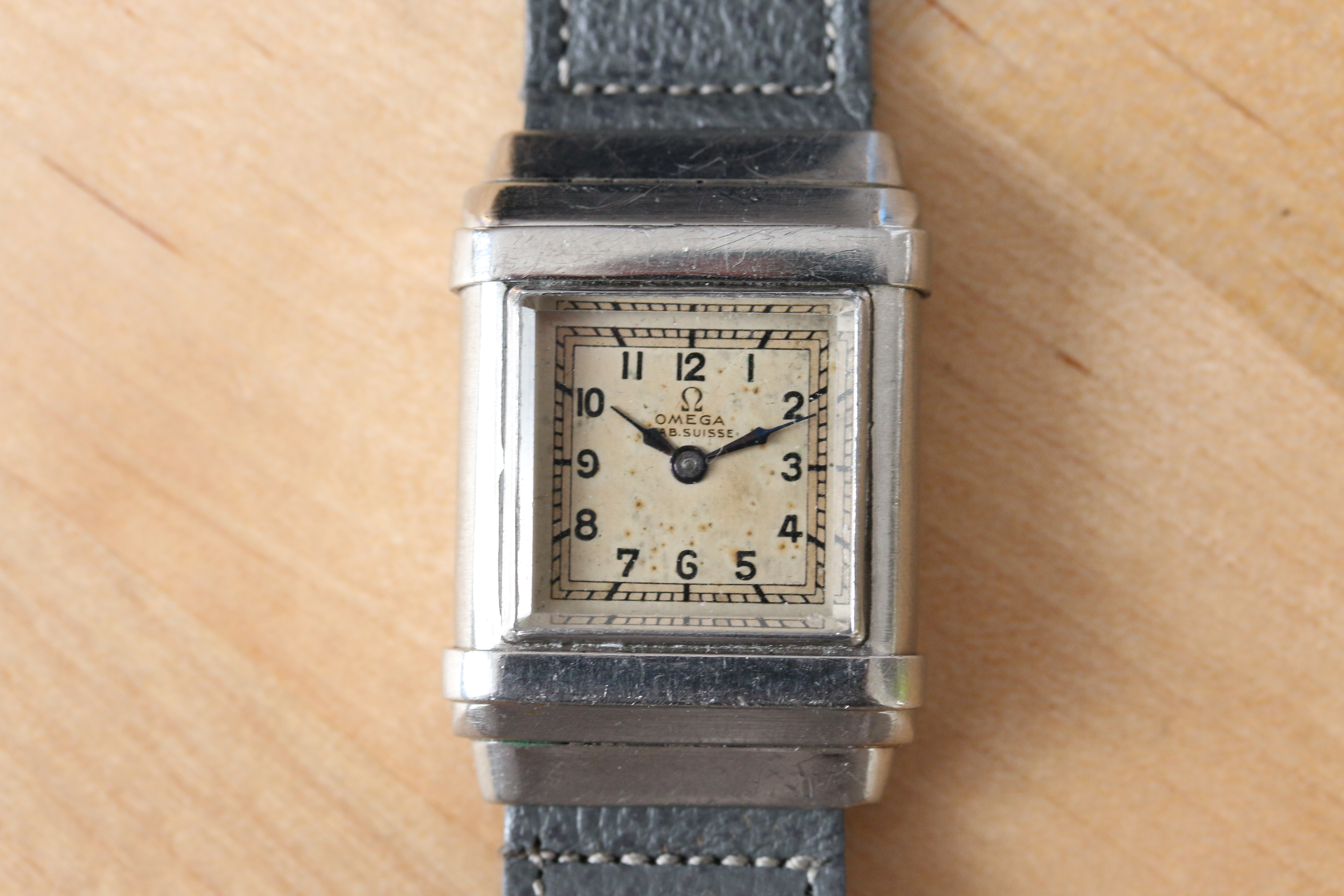 Up for sale is an uncommon original Omega Marine from the 1930s. Original dial and hands, the dial has lightly yellowed from age and has some patina. The case is in decent condition - one lug was reinforced with white gold around the lughole and is visible up close. The back clip snaps in solidly. The watch runs, but service history is unknown. If you have any questions, please feel free to pm me!