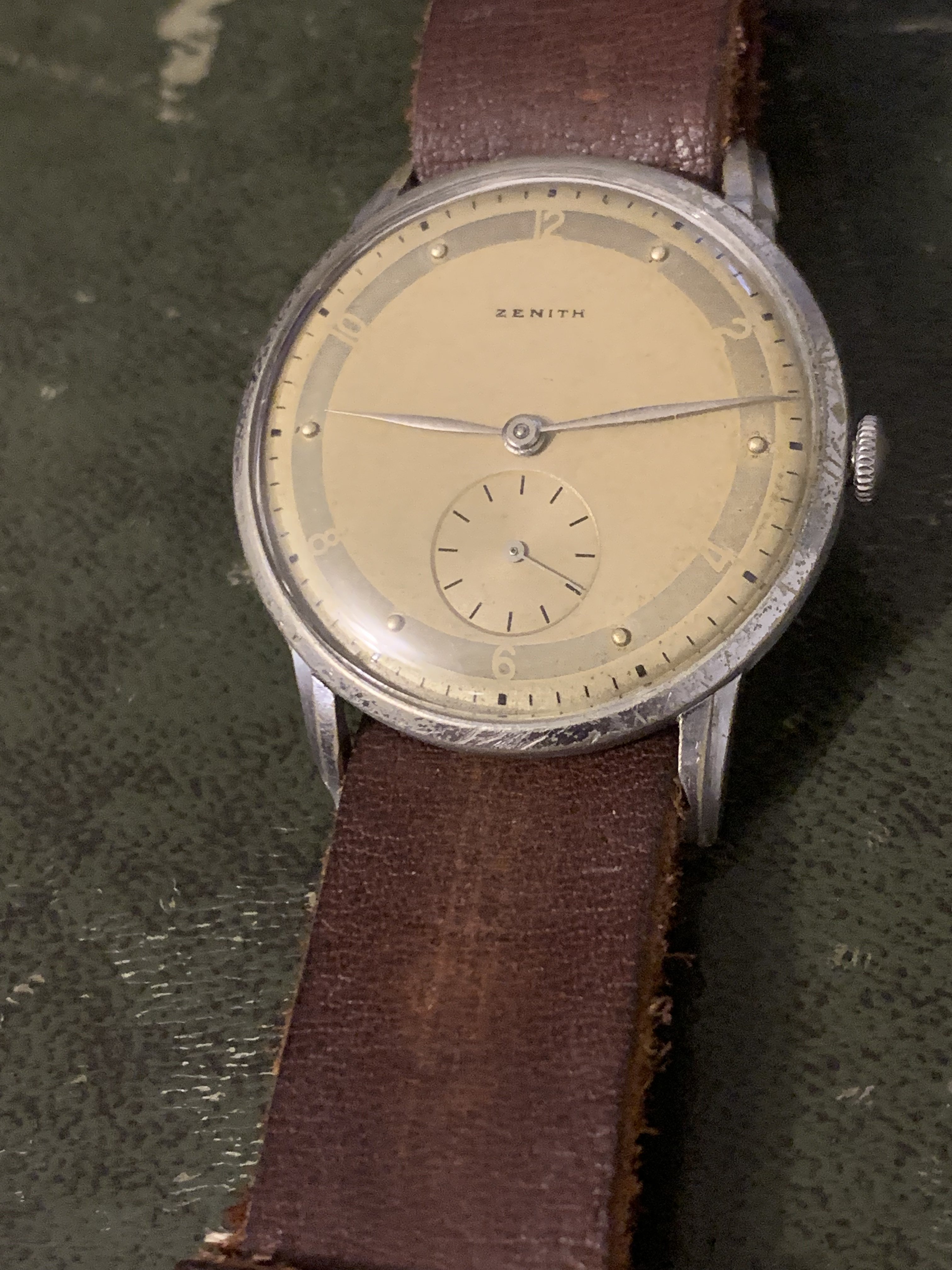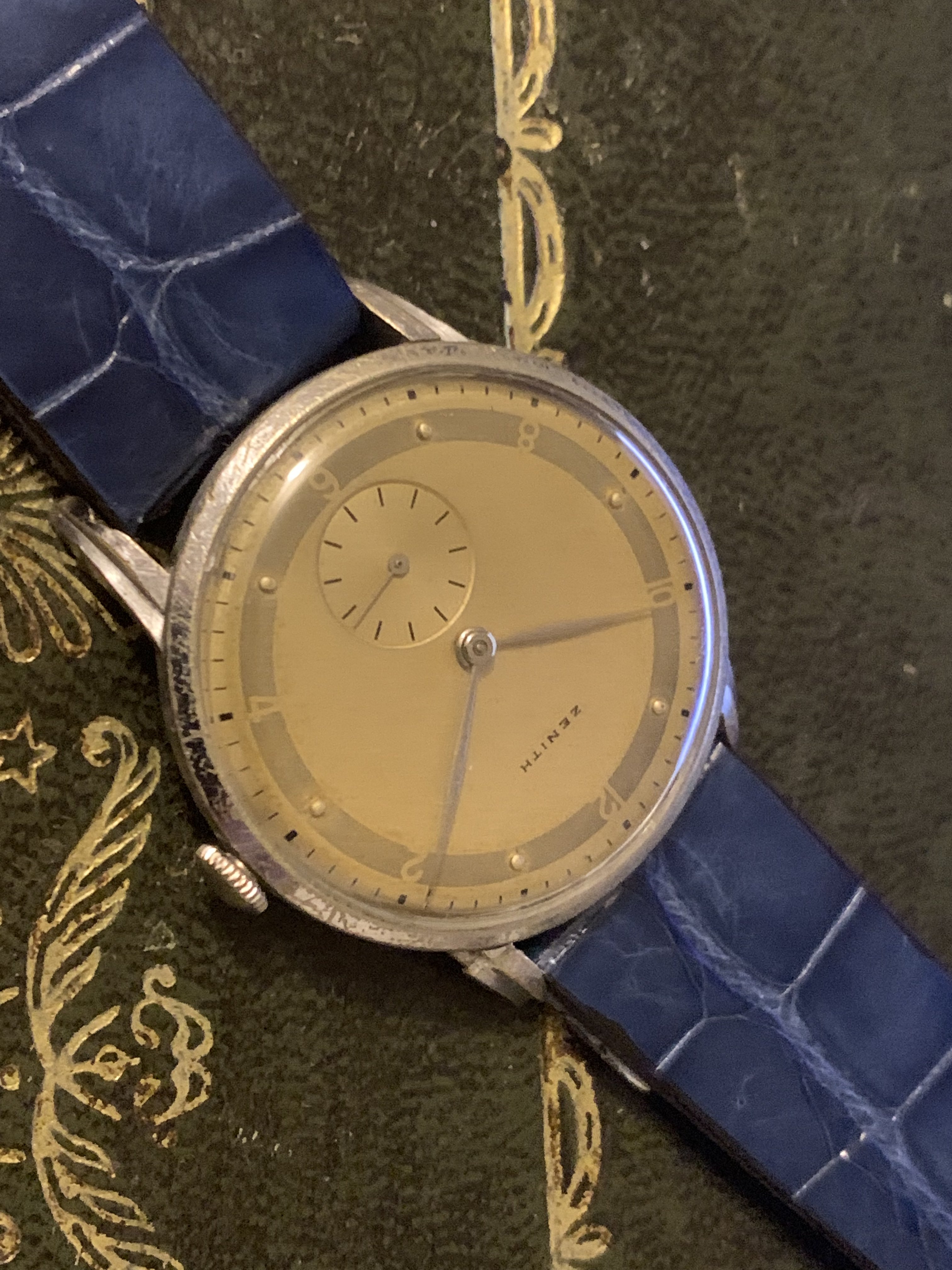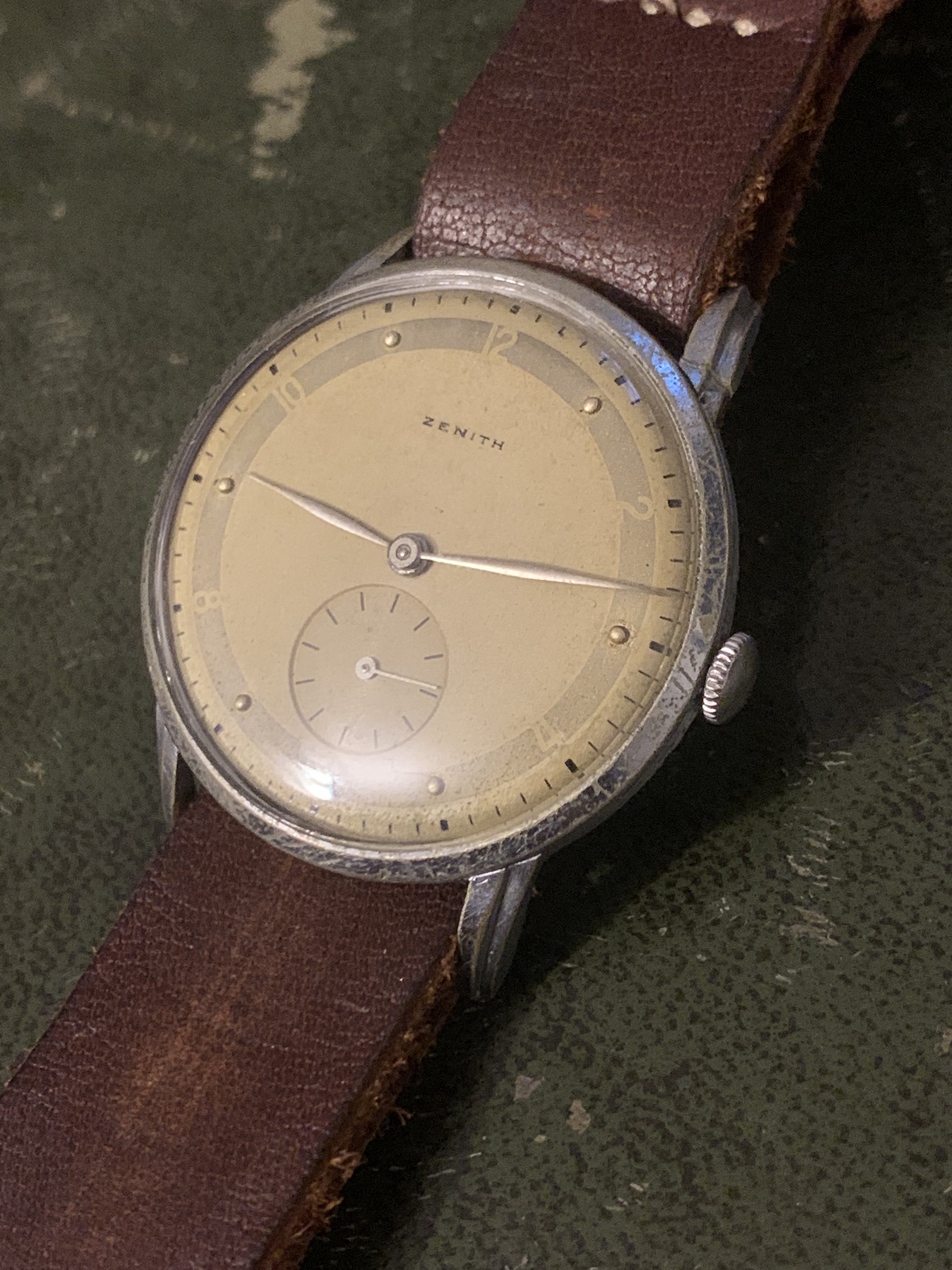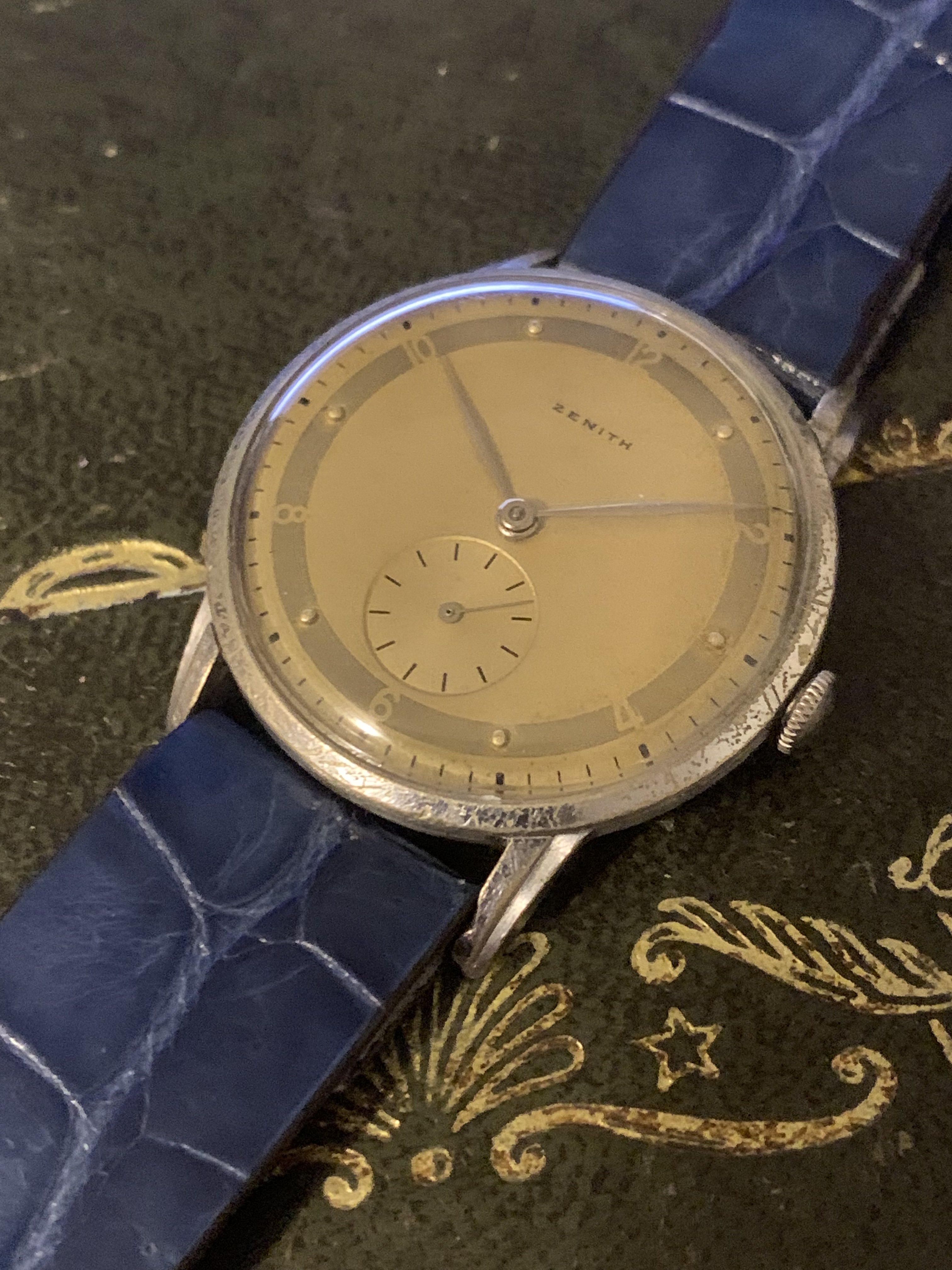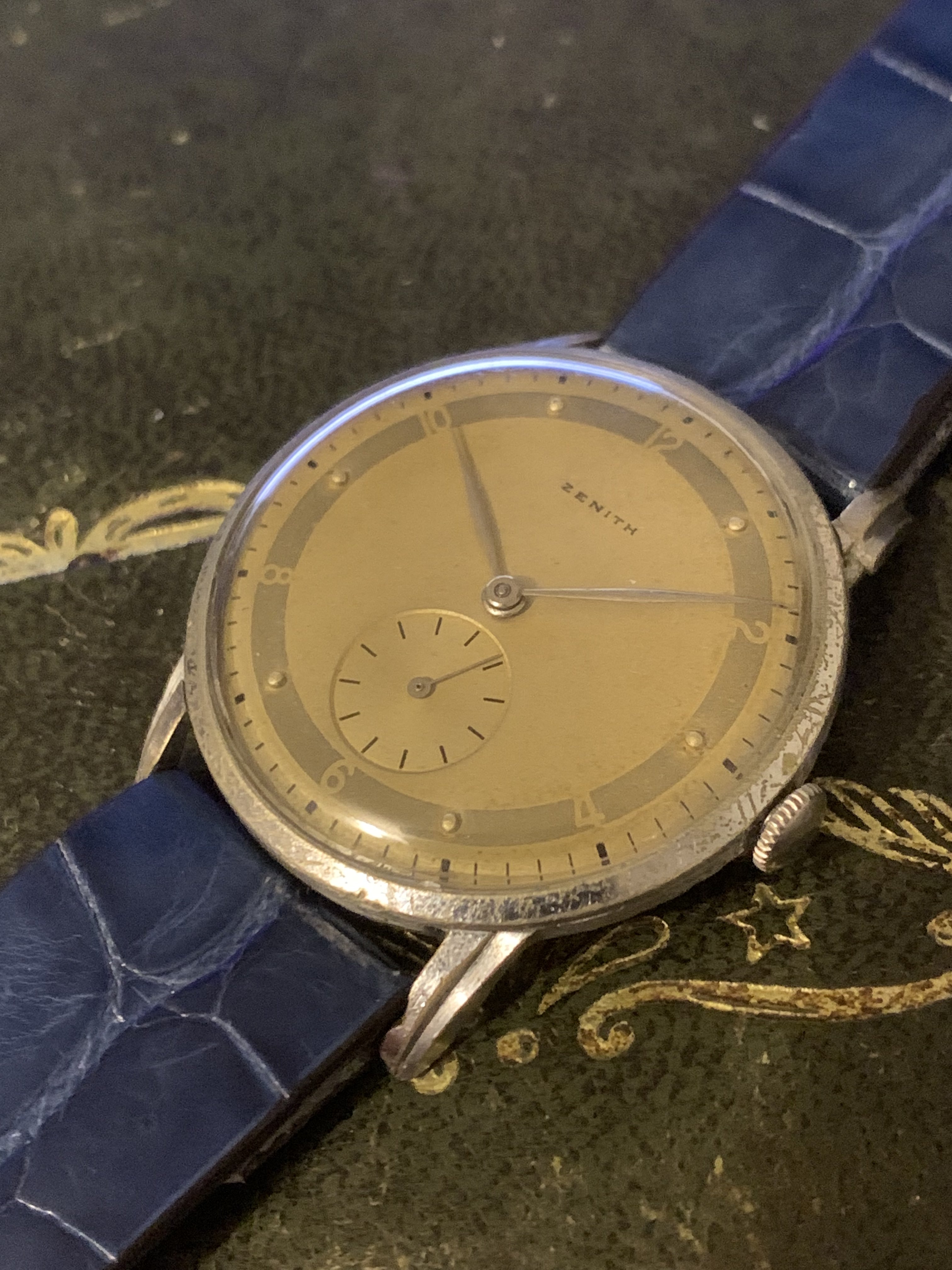 Another of my watches up for sale today, a classic time only Zenith from my favourite era in watchmaking the 1940s. I bought this watch as a project as the dial, hands a movement are in fantastic condition. I was hoping to find another with a bad dial, and transplant these over into a case of better condition, but I am just getting too many watches now I figured I'd pass it onto someone else who will enjoy it for what it is, or indeed fancy the project themselves.