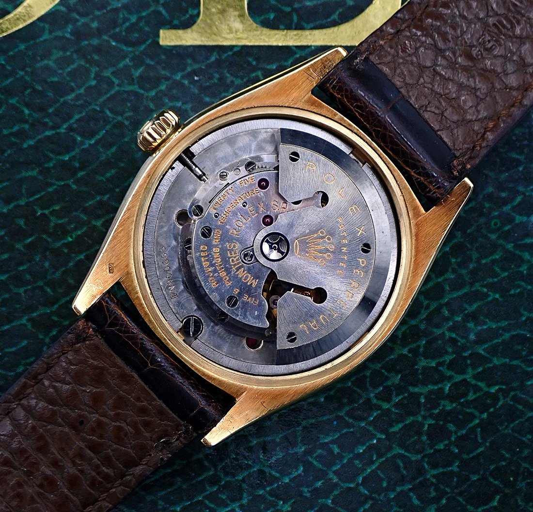MOVEMENT: This 6605 features Rolex's excellent cal. 1066 25-jewel automatic Chronometer-grade movement originally adjusted to 5 positions and temperature. This is the last of the 10xx series of movements, the direct precursor to the legendary 15xx family, and was only produced from about 1955 until 1959. As you can see, this example has its original “butterfly” rotor, a cool little extra period detail. I had the watch serviced some years ago and it is still keeping excellent time, with a good power reserve and the trademark instantaneous date change at midnight. Guaranteed to be functioning properly at the time of shipment.