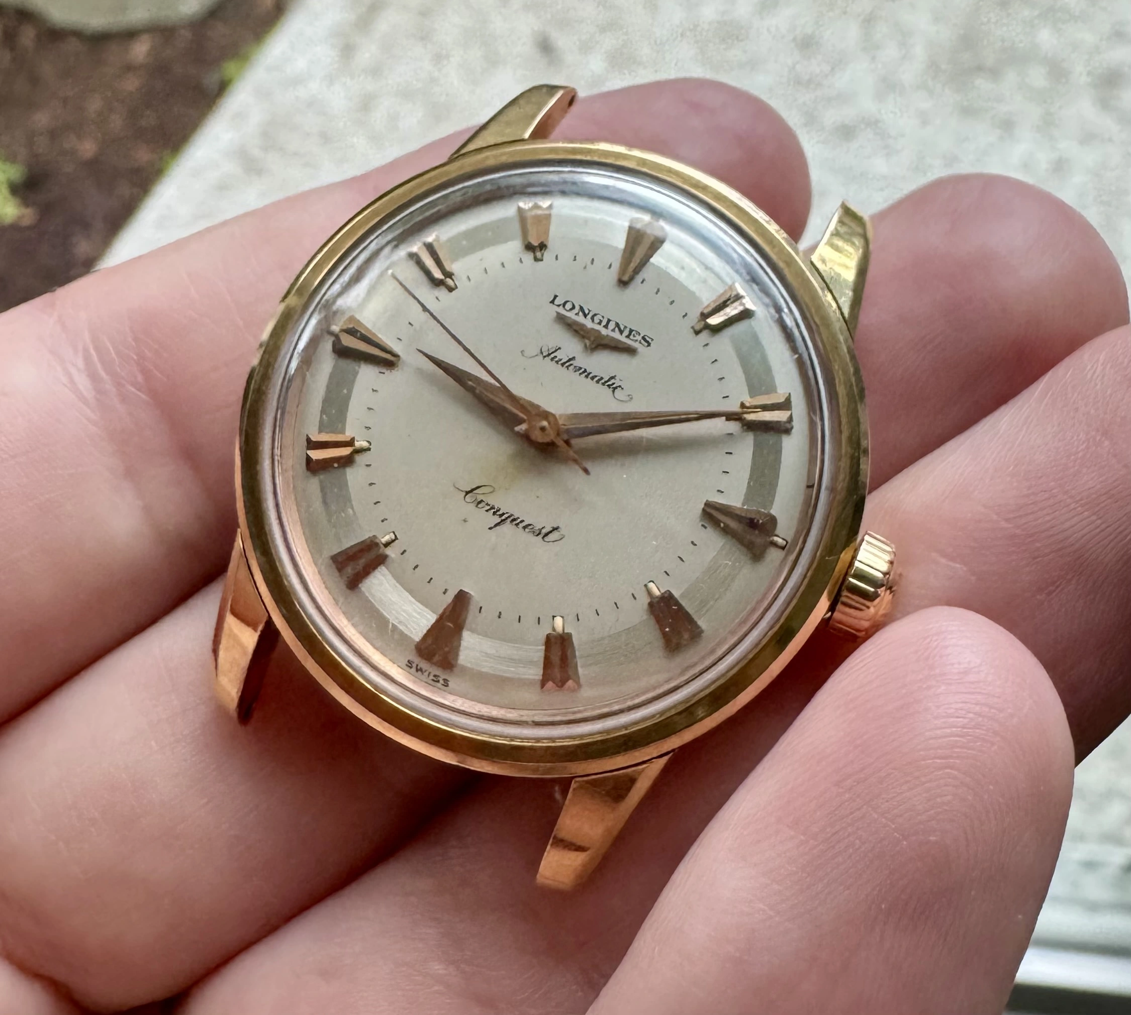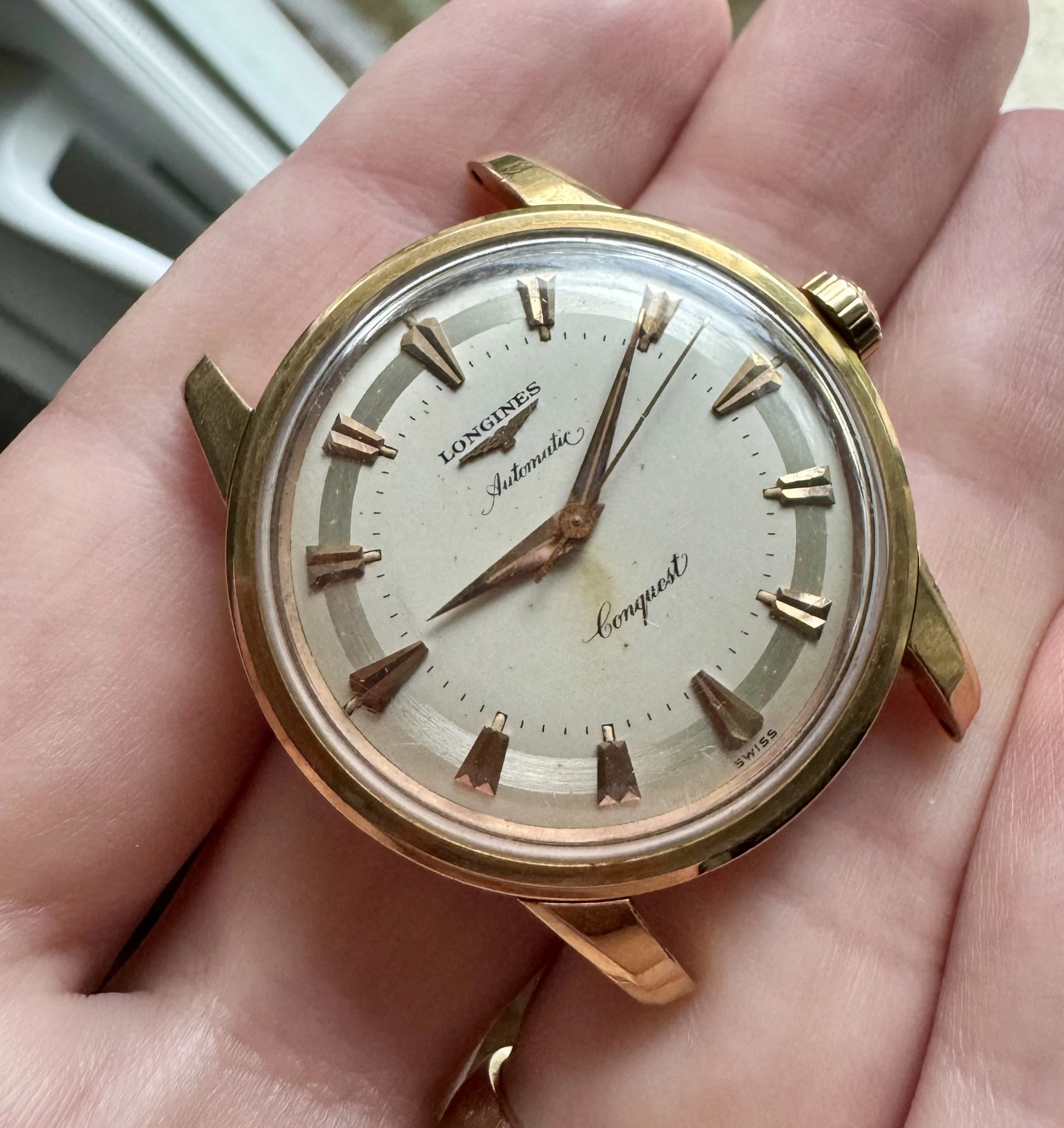 ·Looking to sell a 1956-7 Longines Conquest. I don’t have the case opener for this model and would hate to scratch the back, not to mention risk damaging the medallion, so I don’t have photos of the movement or inside if the case back but I’m fairly certain that this is a ref. 9001-5 that features a Longines 19AS automatic movement.