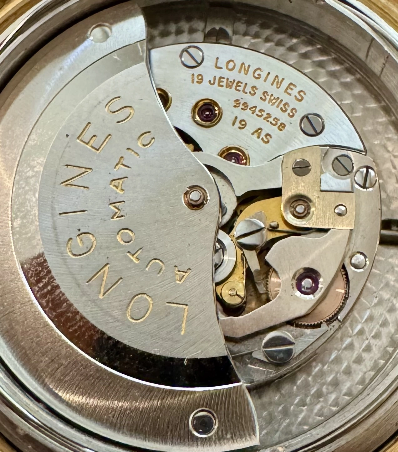 Edit - I was able to remove the case back, which confirmed a Longines 19AS movement and 9001-4 reference.