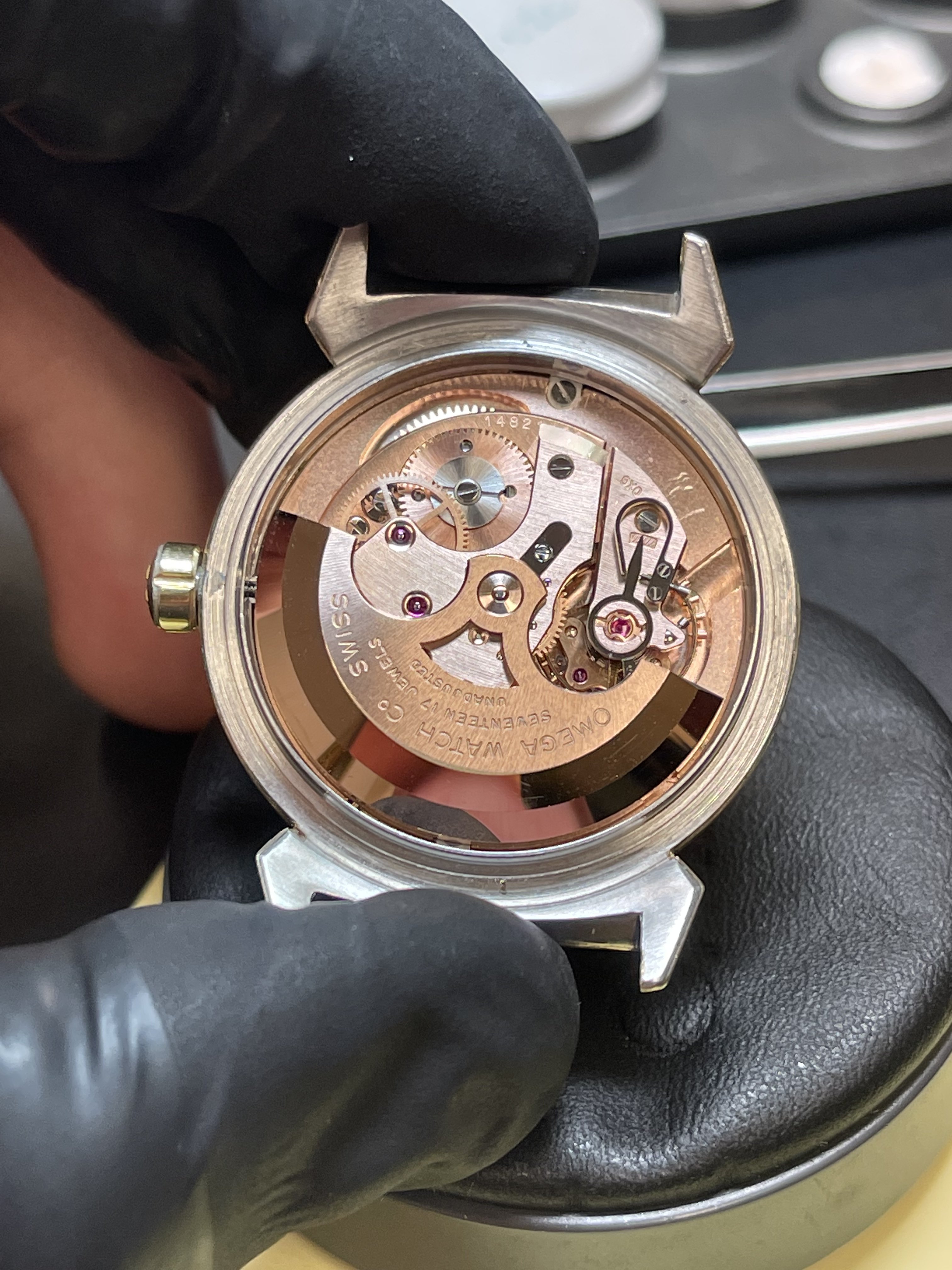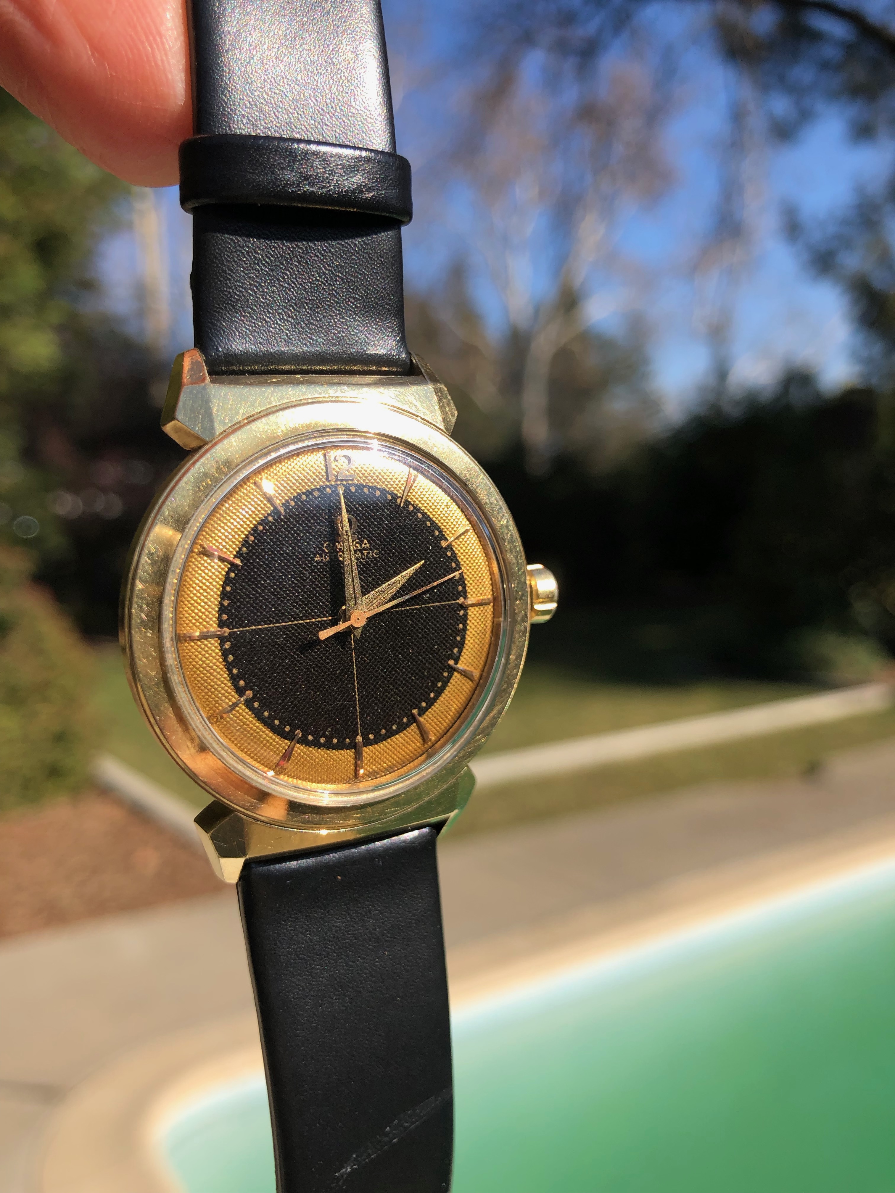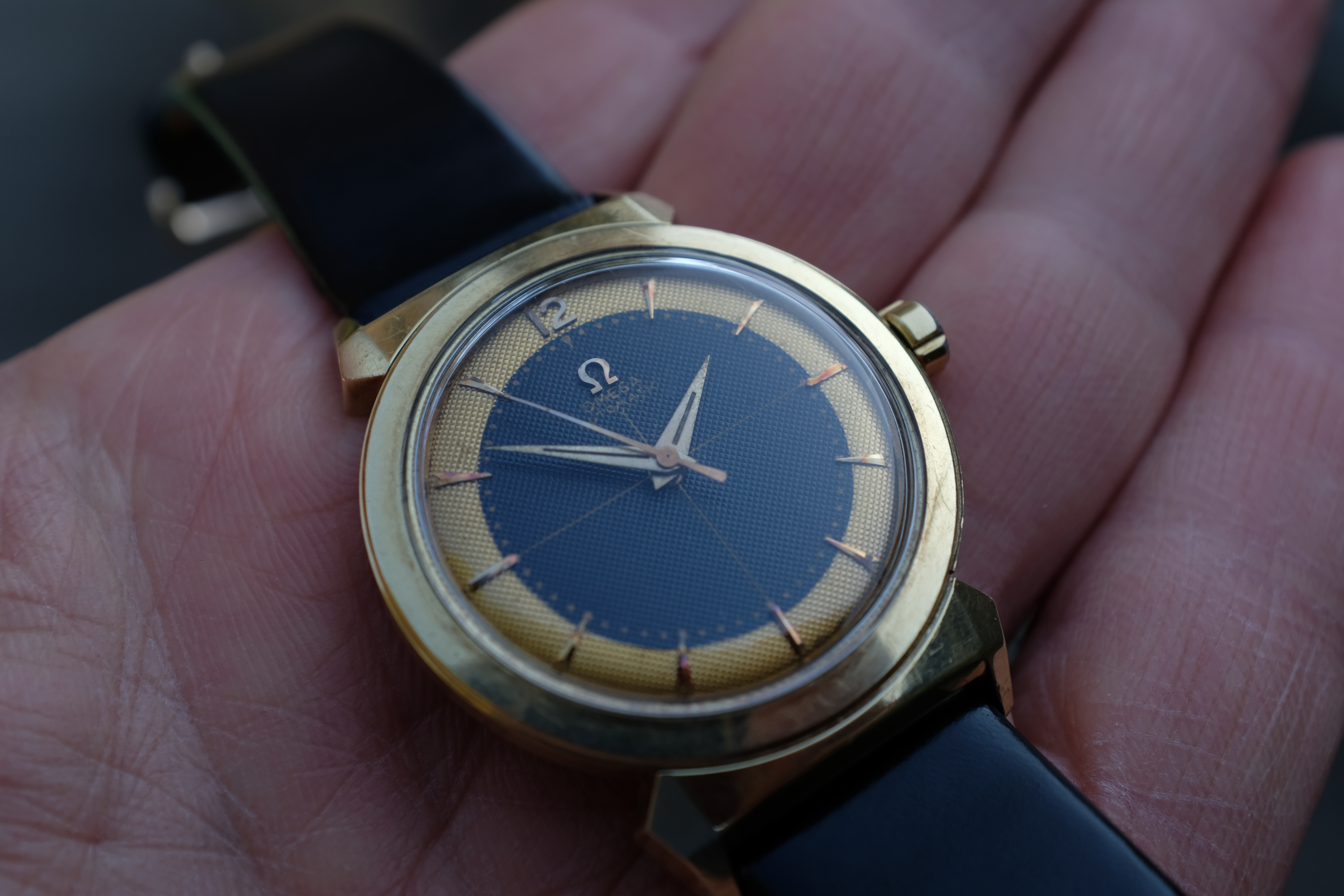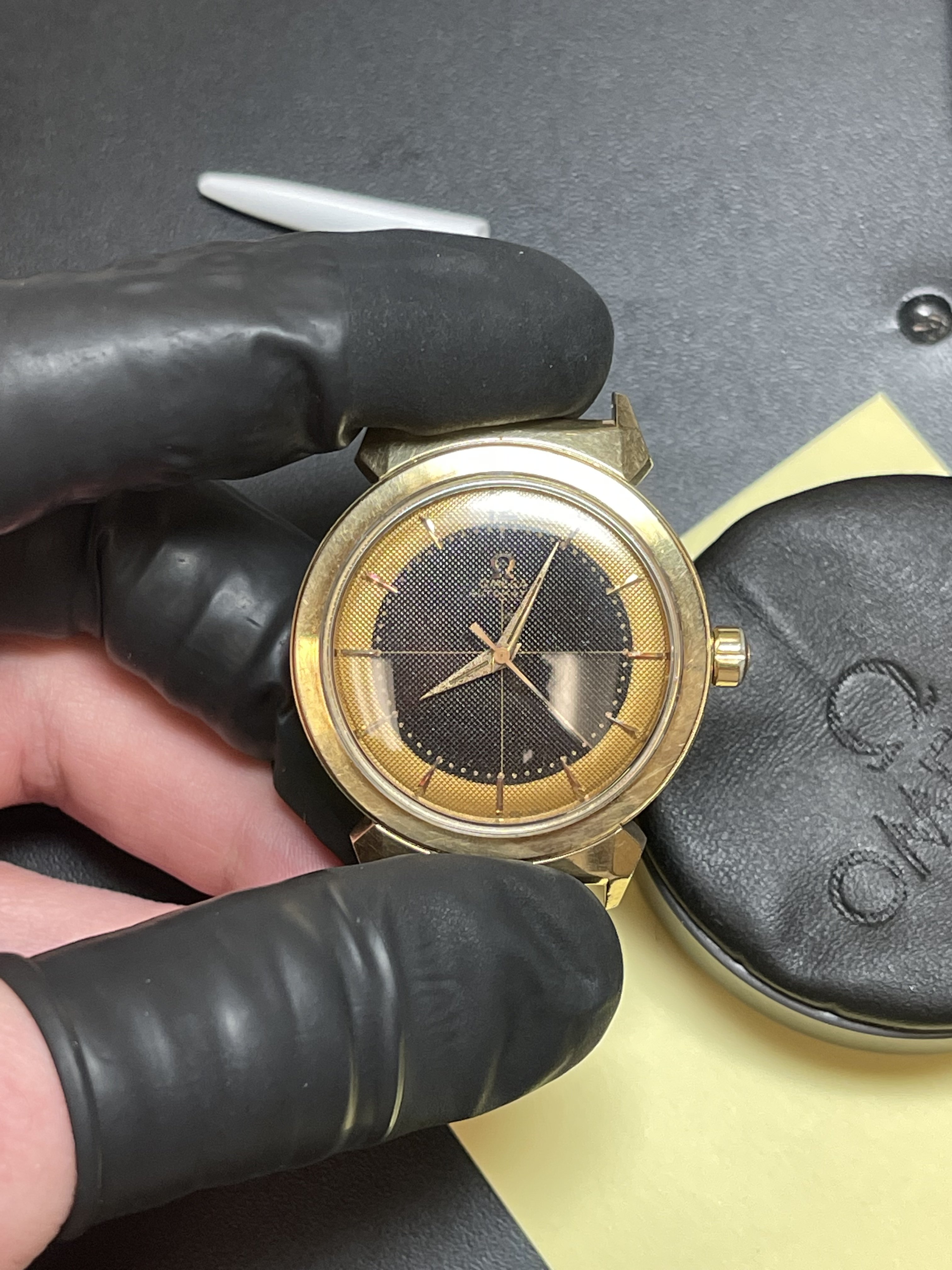 ·Vintage Omega Forum members. I need your expertise! I've recently inherited a vintage Omega. It was my dad's. I've had it cleaned but not polished. Now I need your help in identifying it. I believe it is a 1956 Seamaster but I cannot locate a dial that looks similar. I've attached photos that the watchmaker took while servicing. I've seen reference to waffle or honeycomb dial. Also I've seen reference to tuxedo dial but nothing I've found matches this. Thank you for any help/insight you can provide.