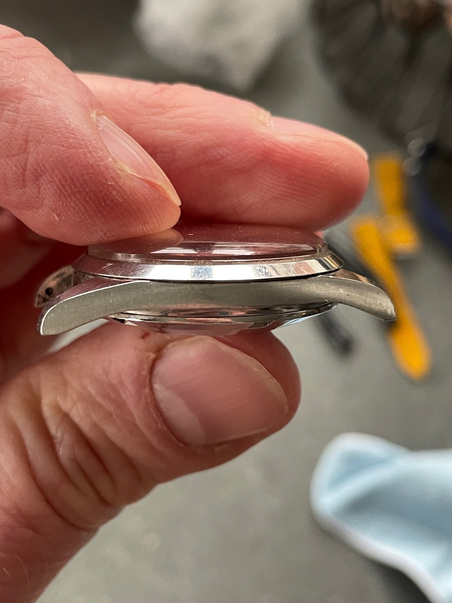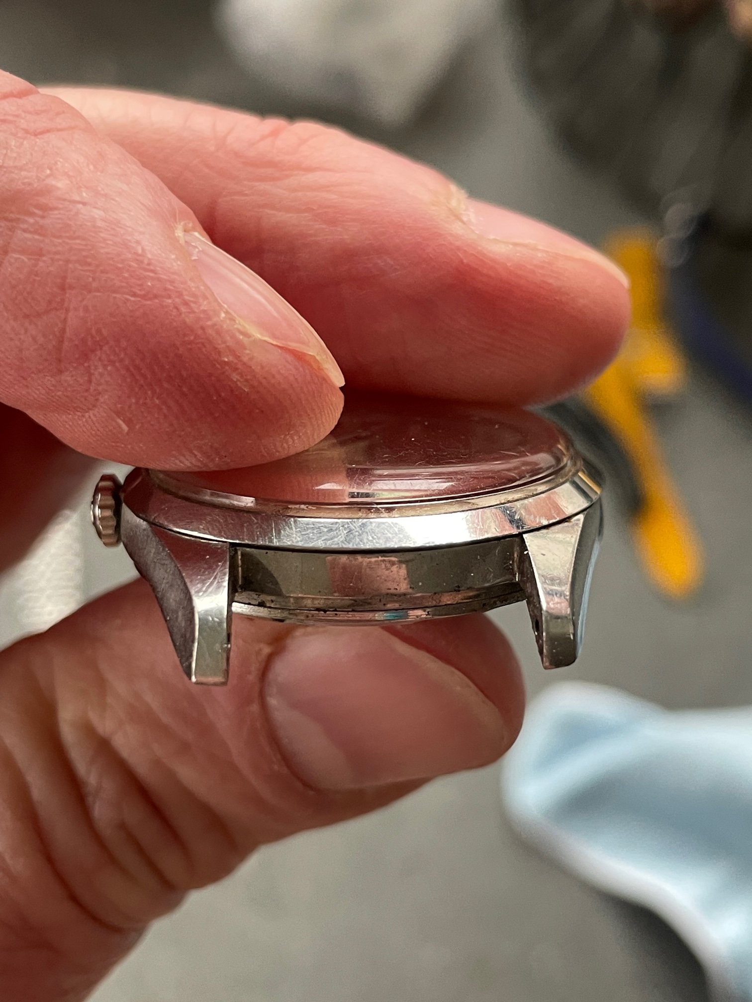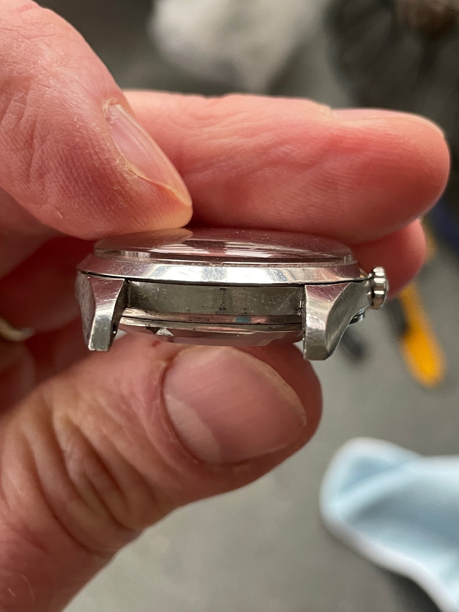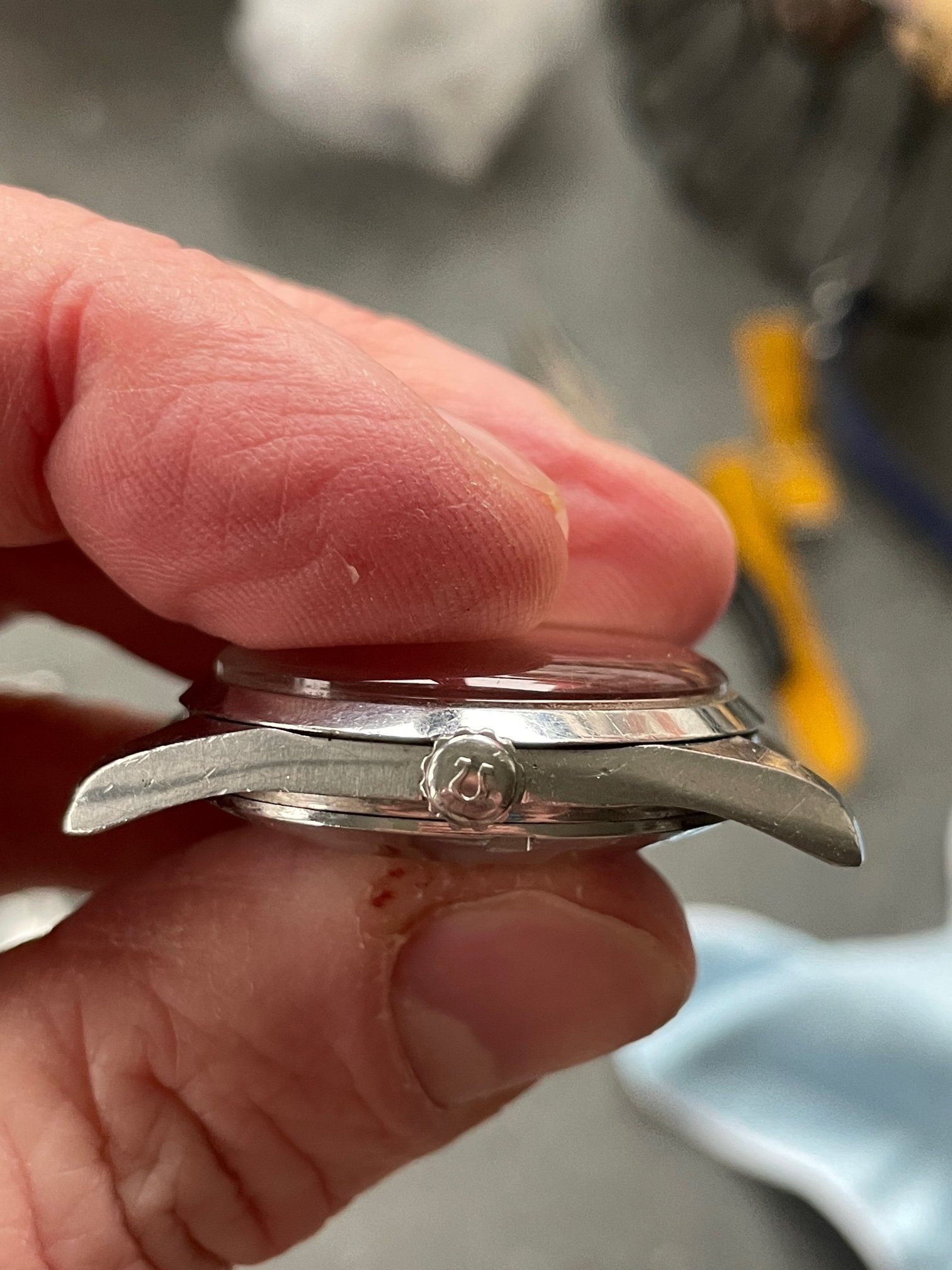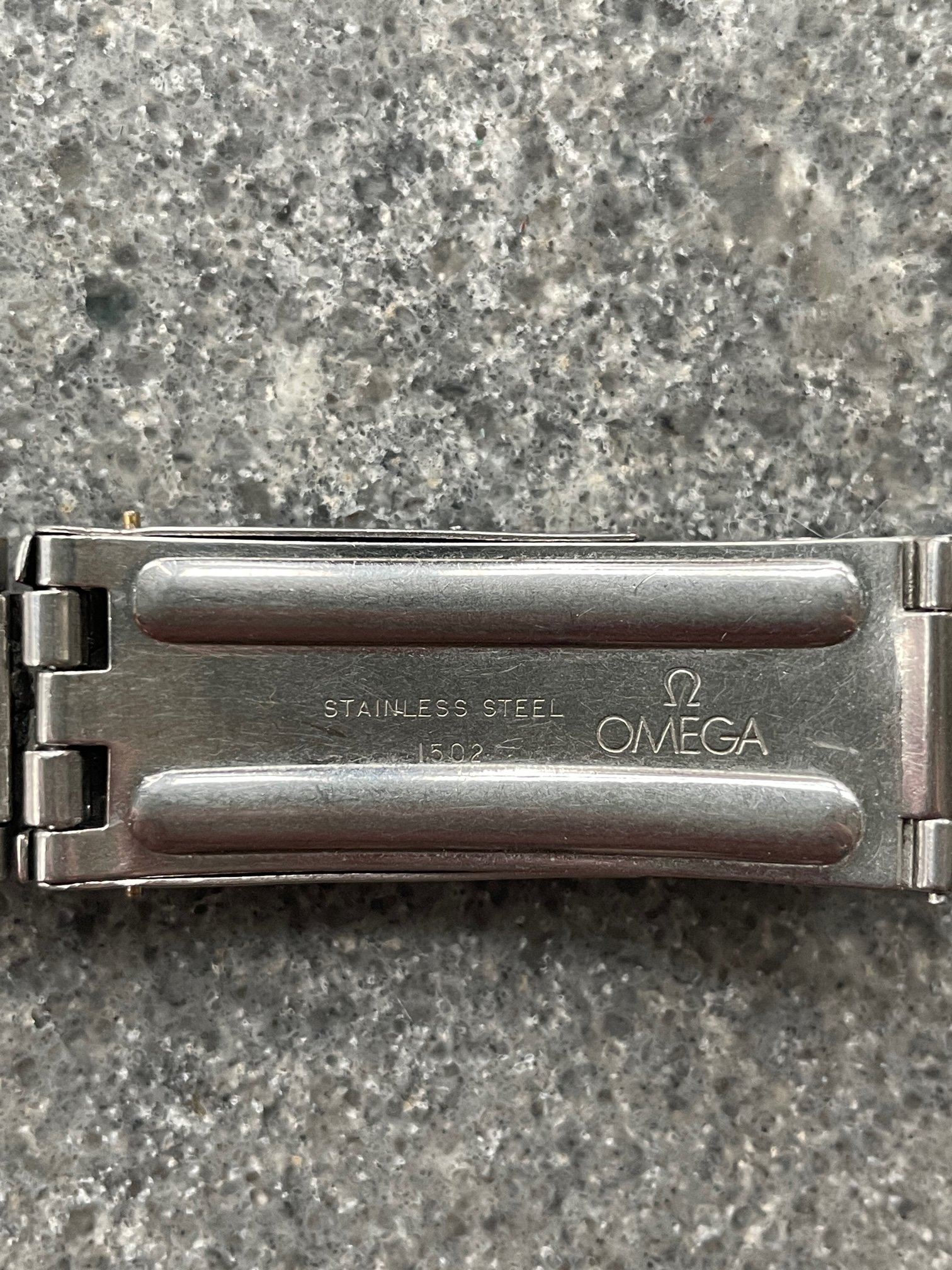 ·CASE: 35mm case is in *incredible* condition, clearly never polished and without major signs of wear. Gorgeous caseback without much wear, either. Scalloped signed crown is correct, and the 1502/11 bracelet's big enough for my 7.25" wrist. As nice an example as I've seen of this reference, ever. You'll recognize the case shape, of course: it's the 166.010, just earlier, and with the coathanger S on the dial.