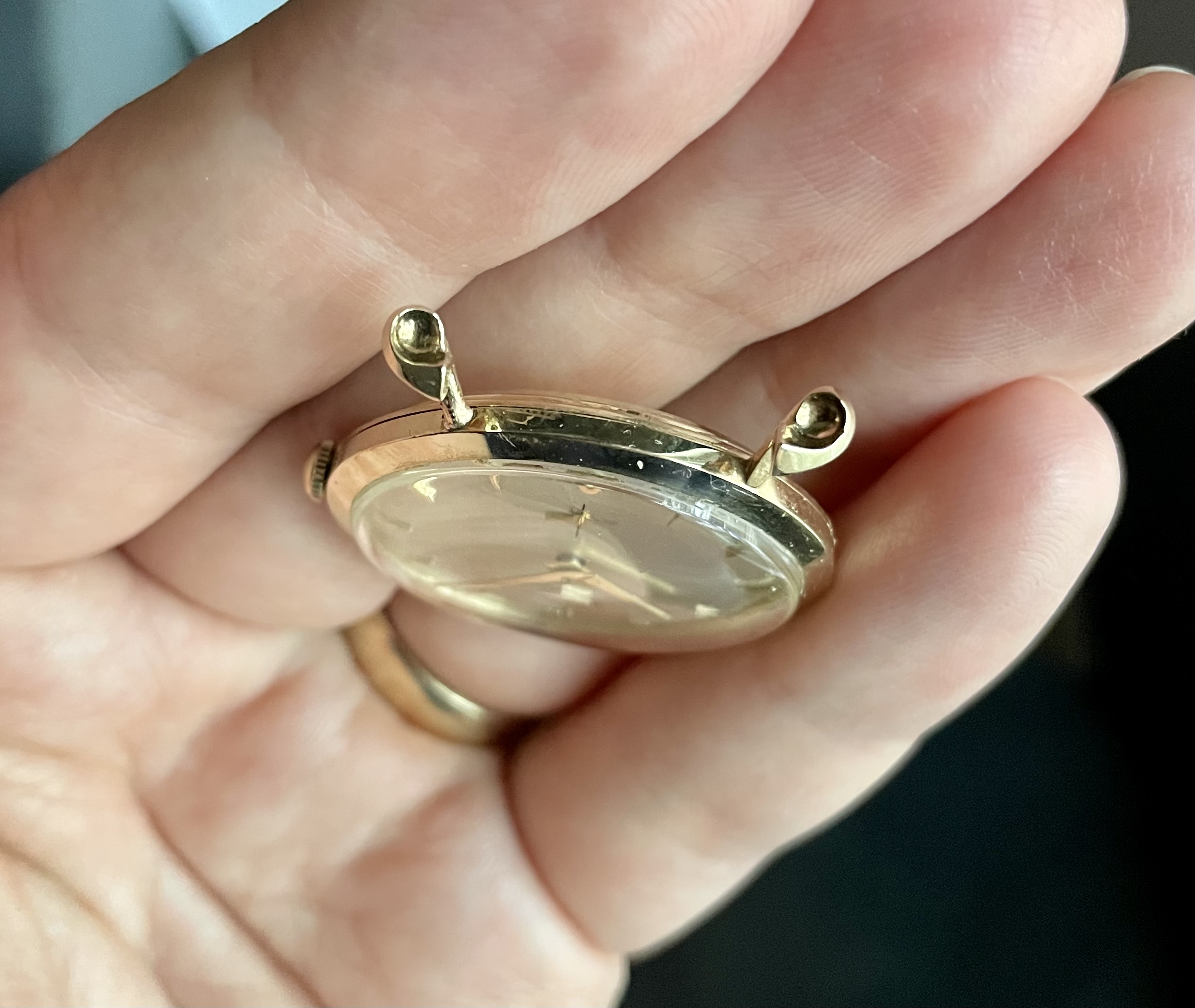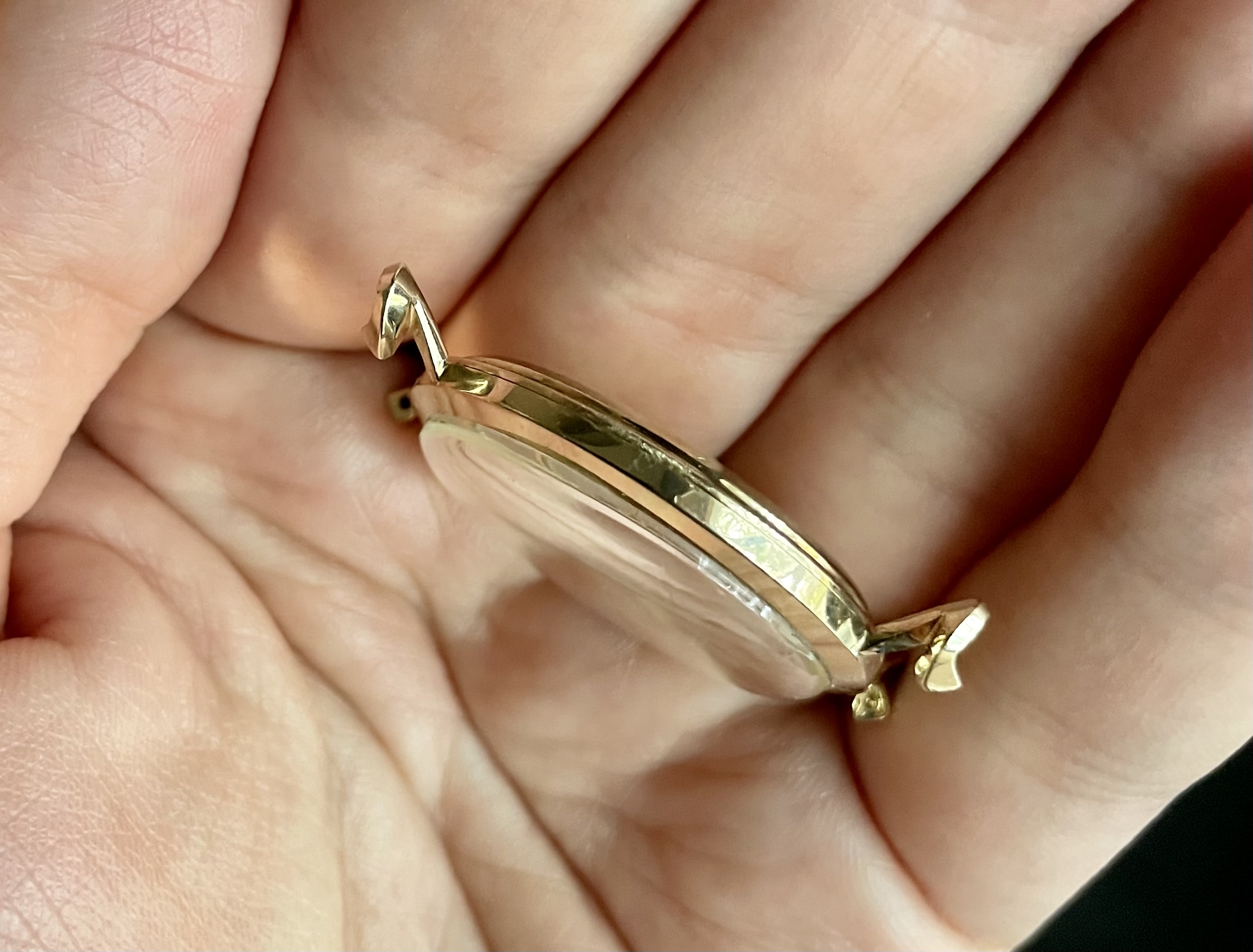 The solid 14k gold case is well preserved and is not engraved, which is somewhat uncommon for solid 14k gold models.