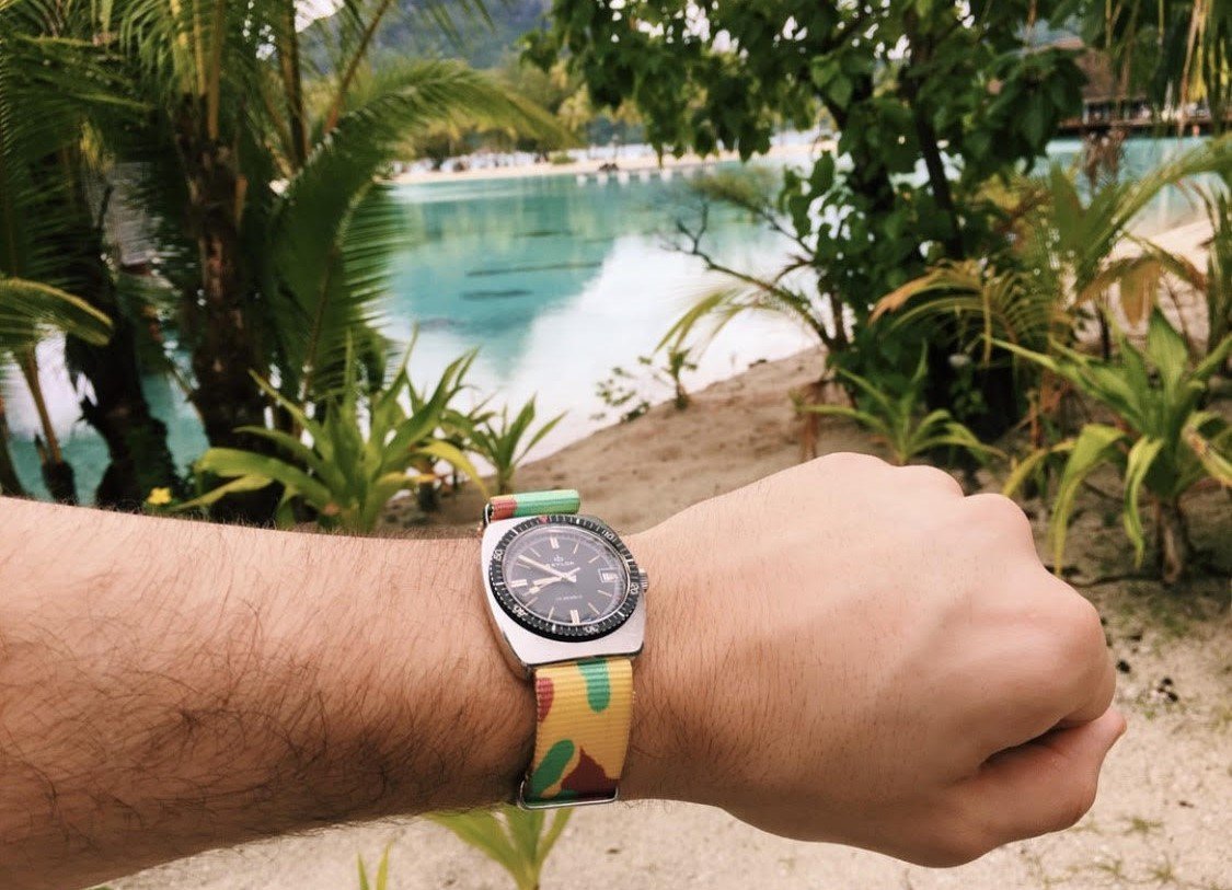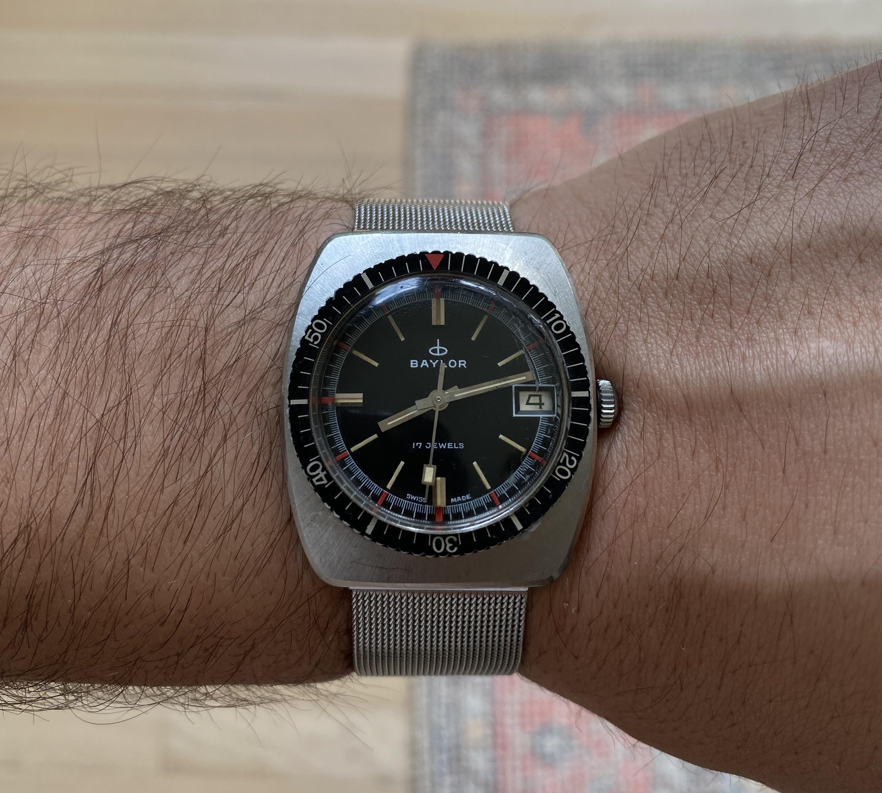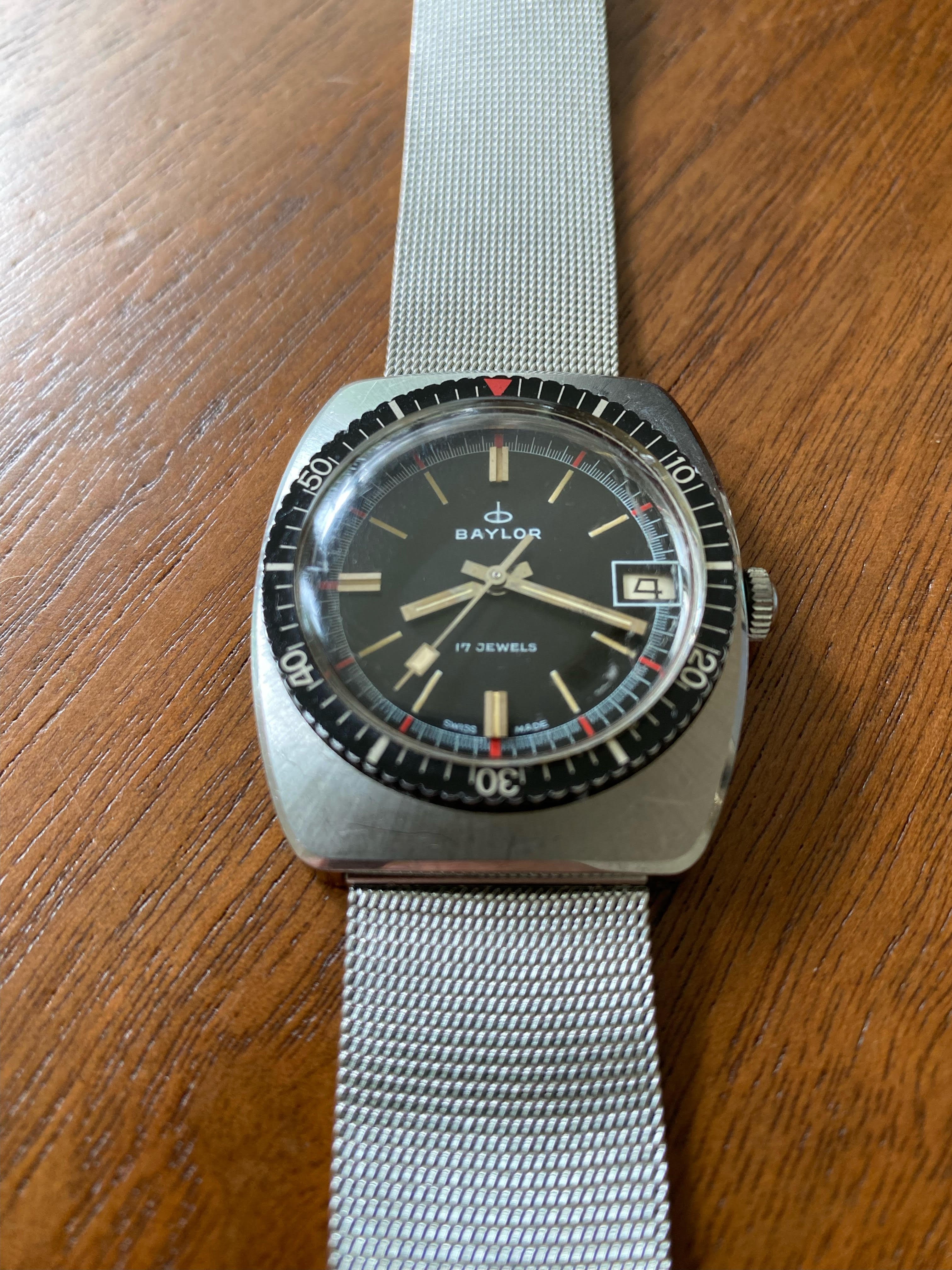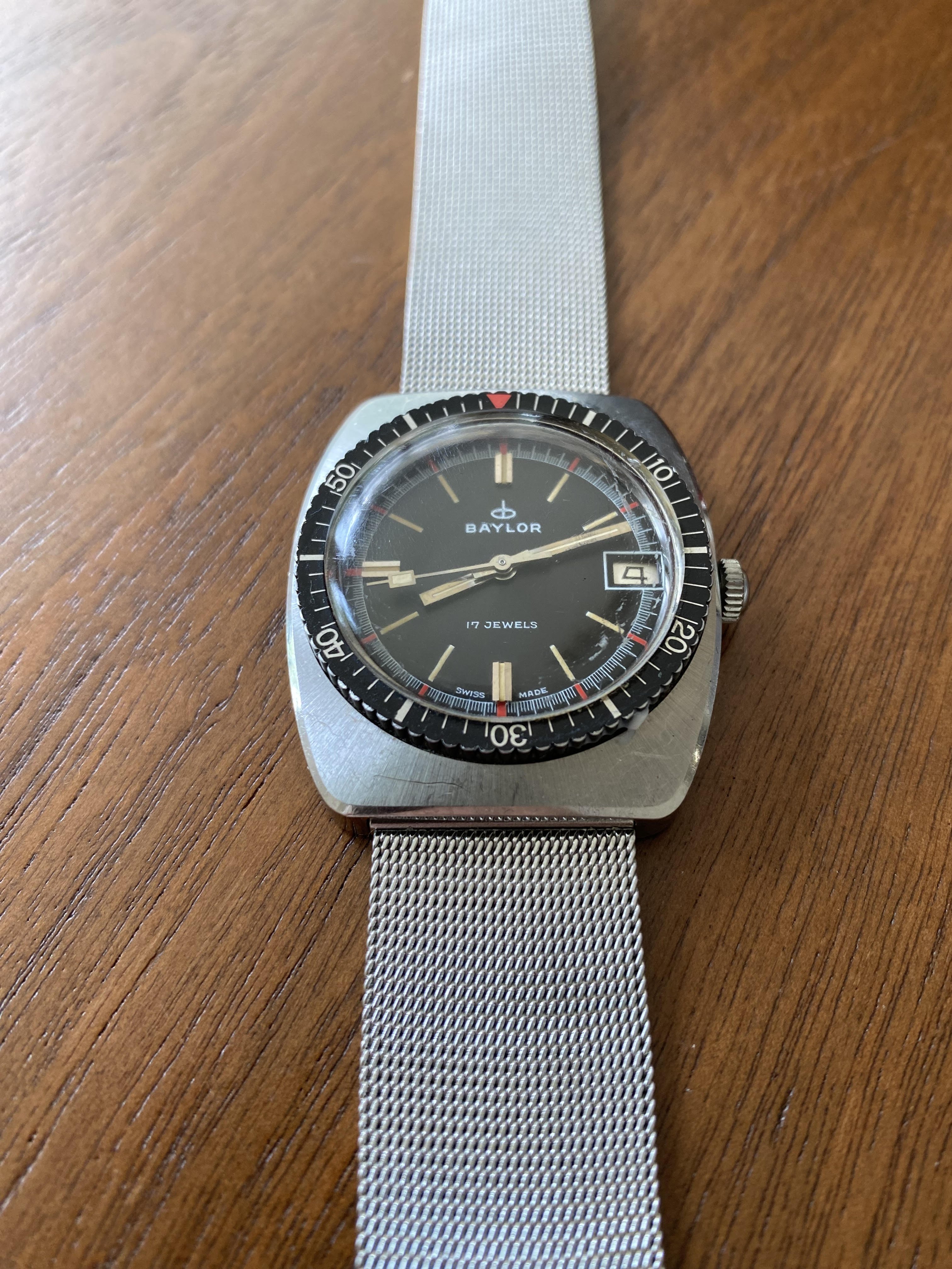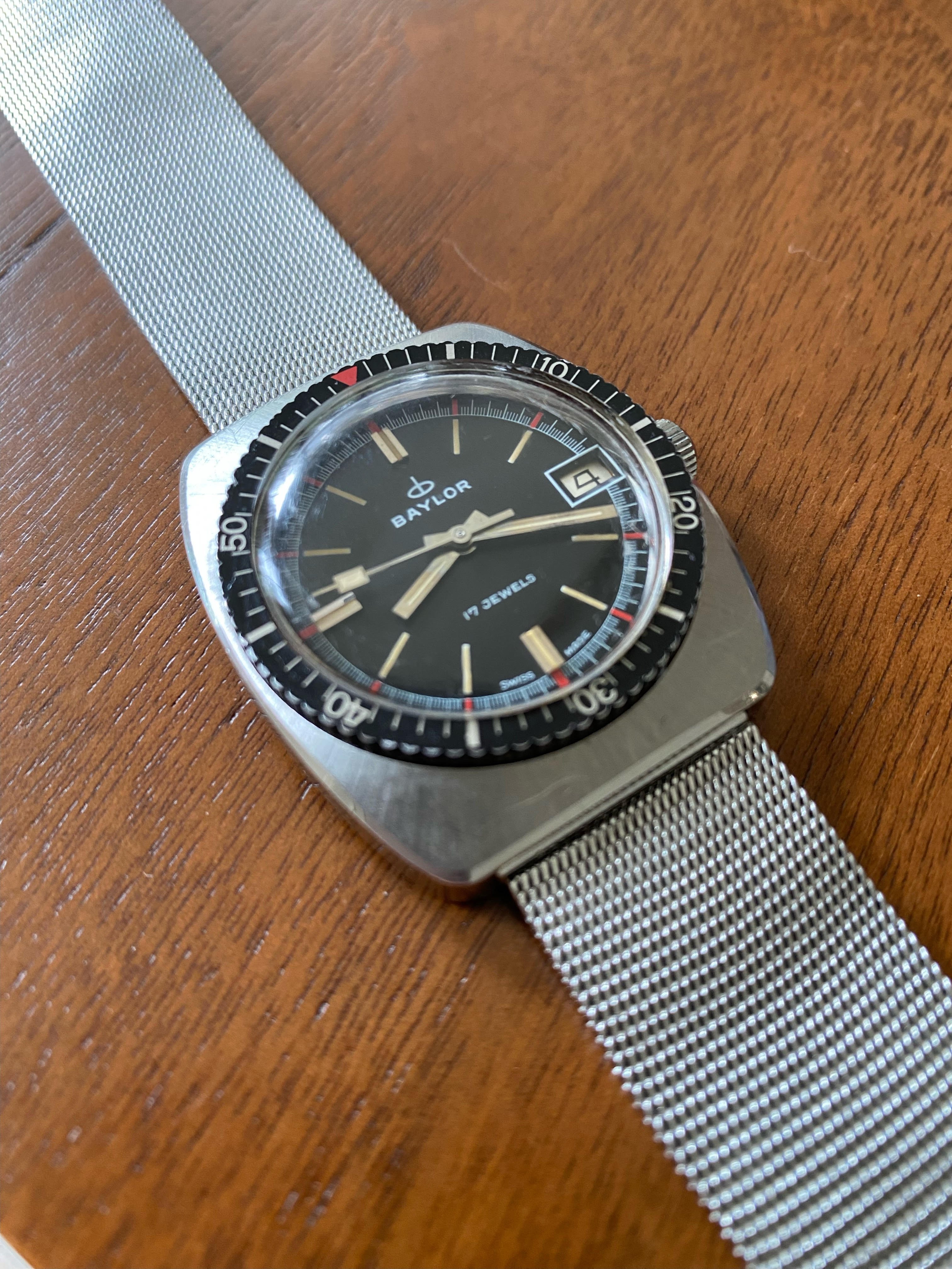 For your kind consideration is this no fuss 1960s cushion-shaped BAYLOR diver. Have brought on quite a number of adventures after purchasing it 5 years ago. Great summer watch.