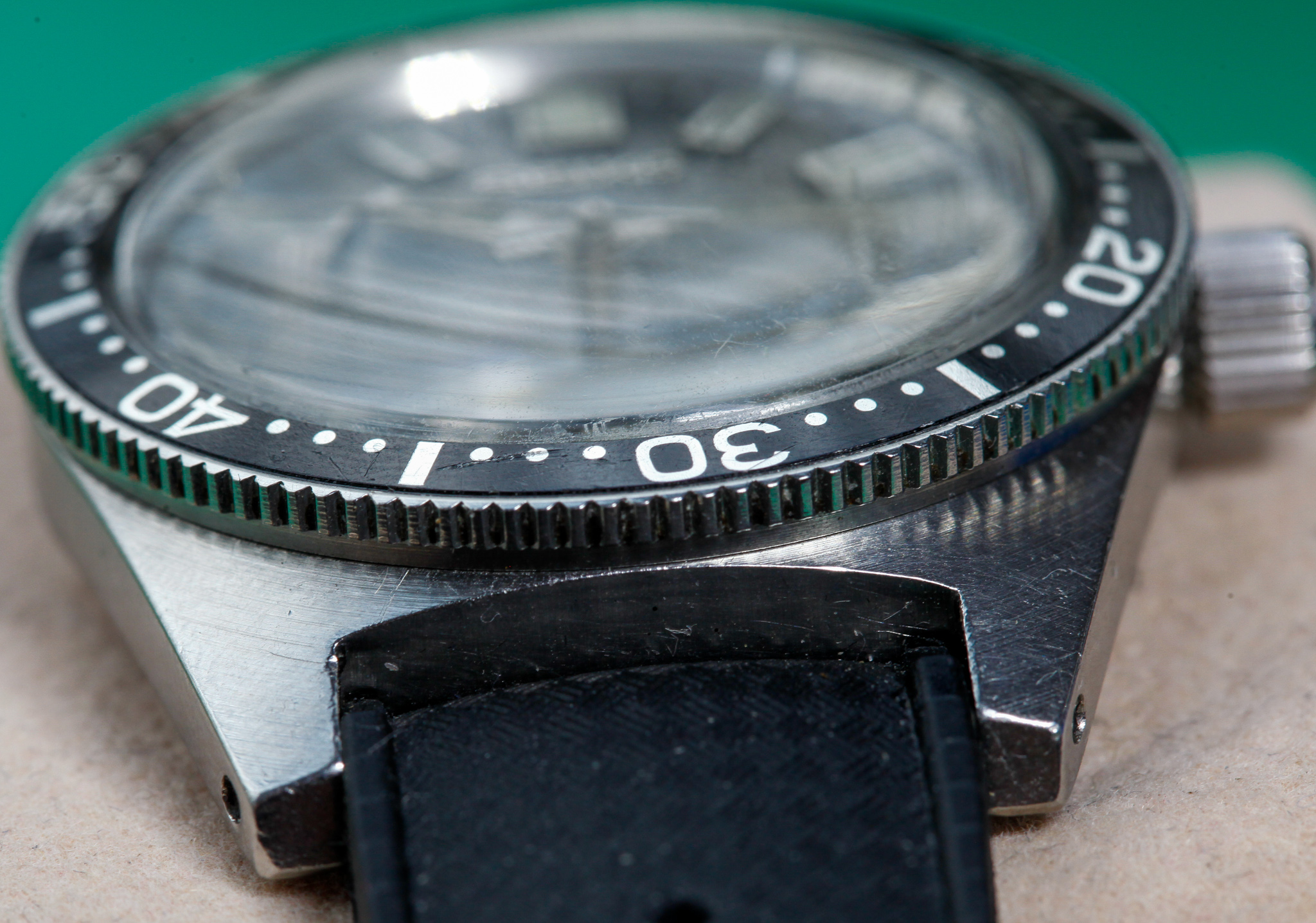 The case is sharp and unpolished and shows its original brushing. The bezel and insert is original to the watch and in good condition. The caseback carries the Seiko Dolphin.