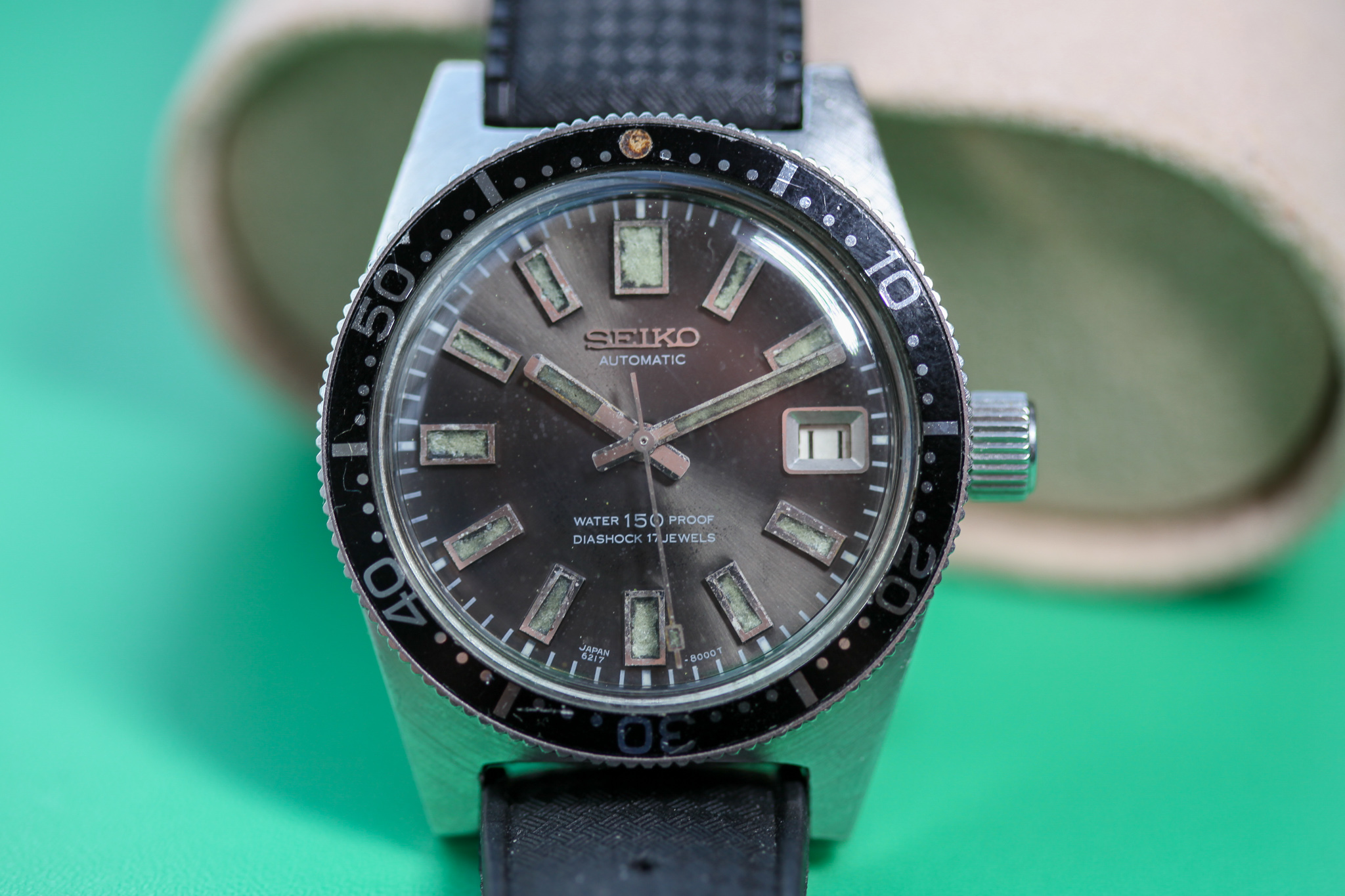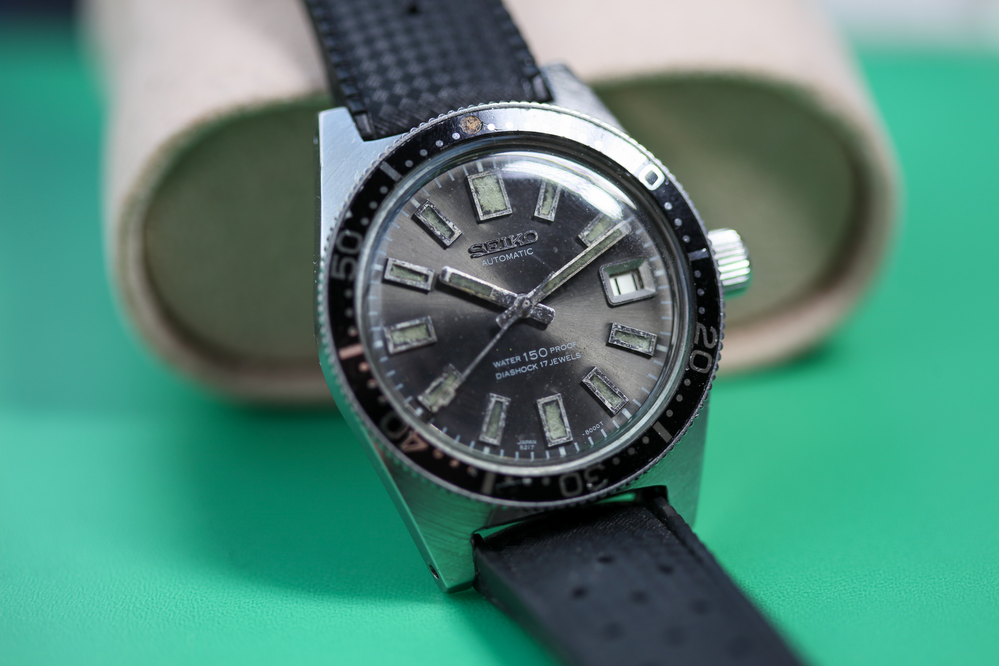 Up for offer today is a very nice 1967 Seiko 6217-8001 62MAS dating to March of 1967. The legendary first Seiko diver.