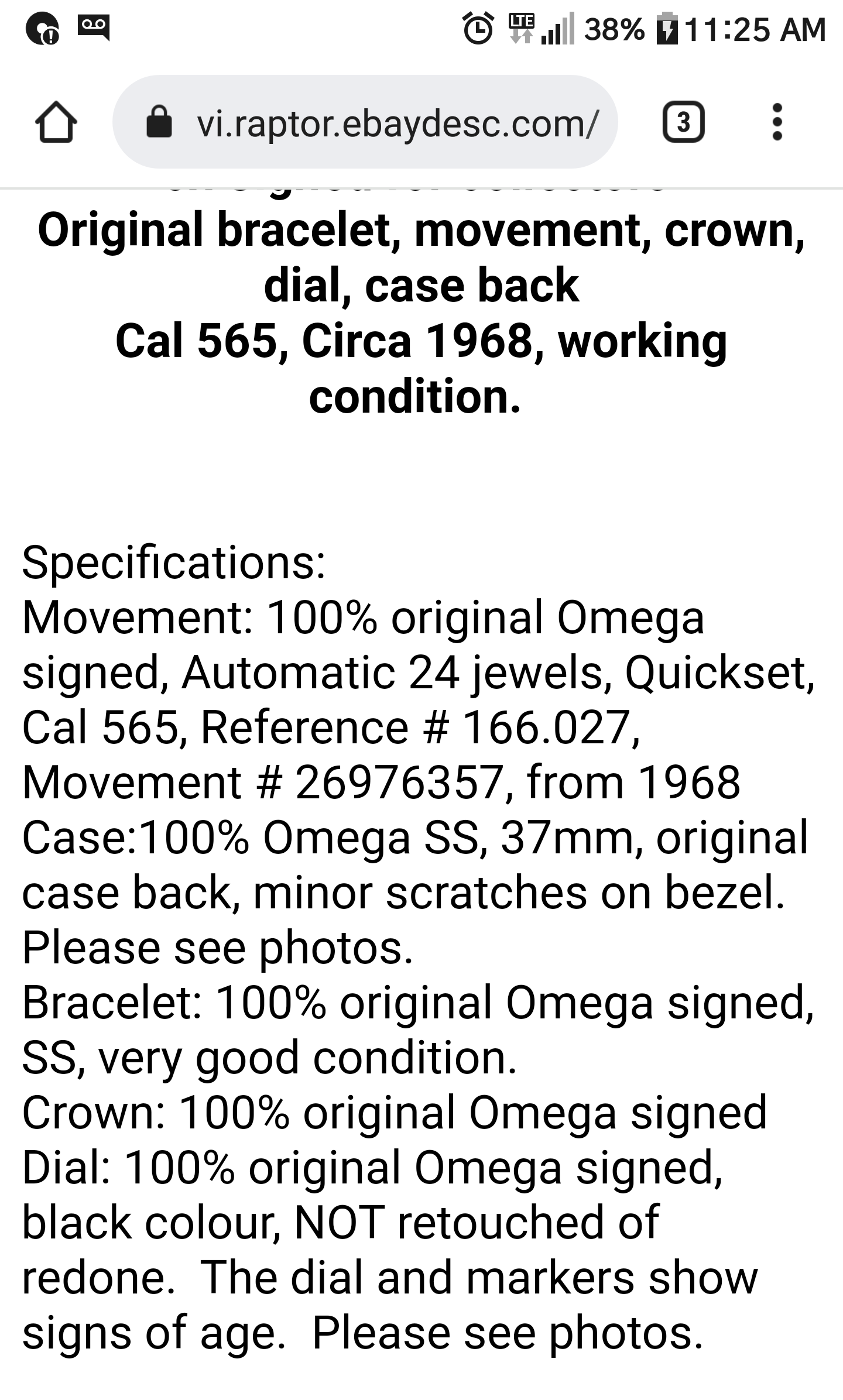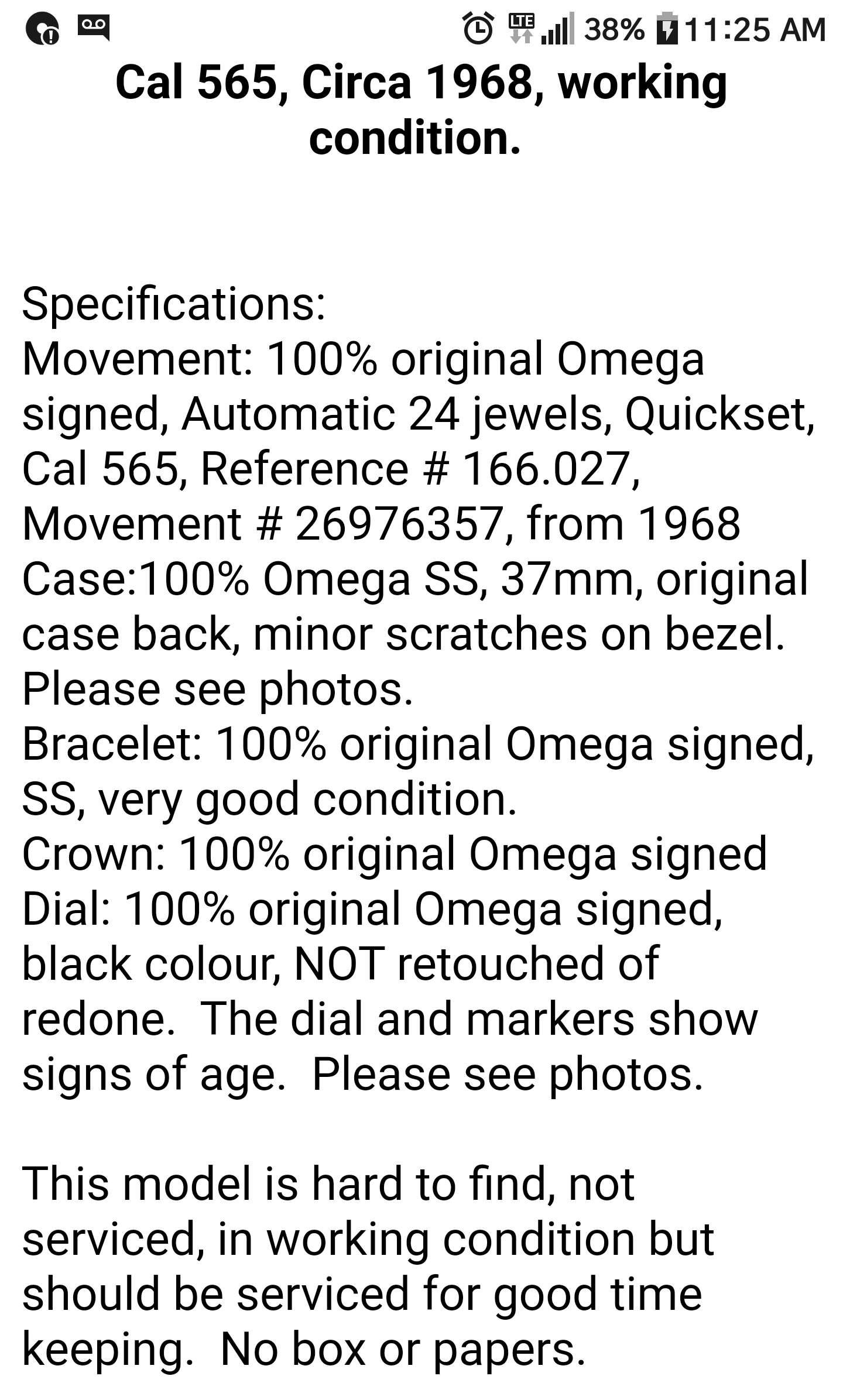 So now i wondering about the dial being original or not? Its flat paint gloss, but couldnt see that in original photo! Including listing description. Appreciate any insight you can give about bezel, dial, service hands or original etc. Case does seem right has cutouts. Cheers