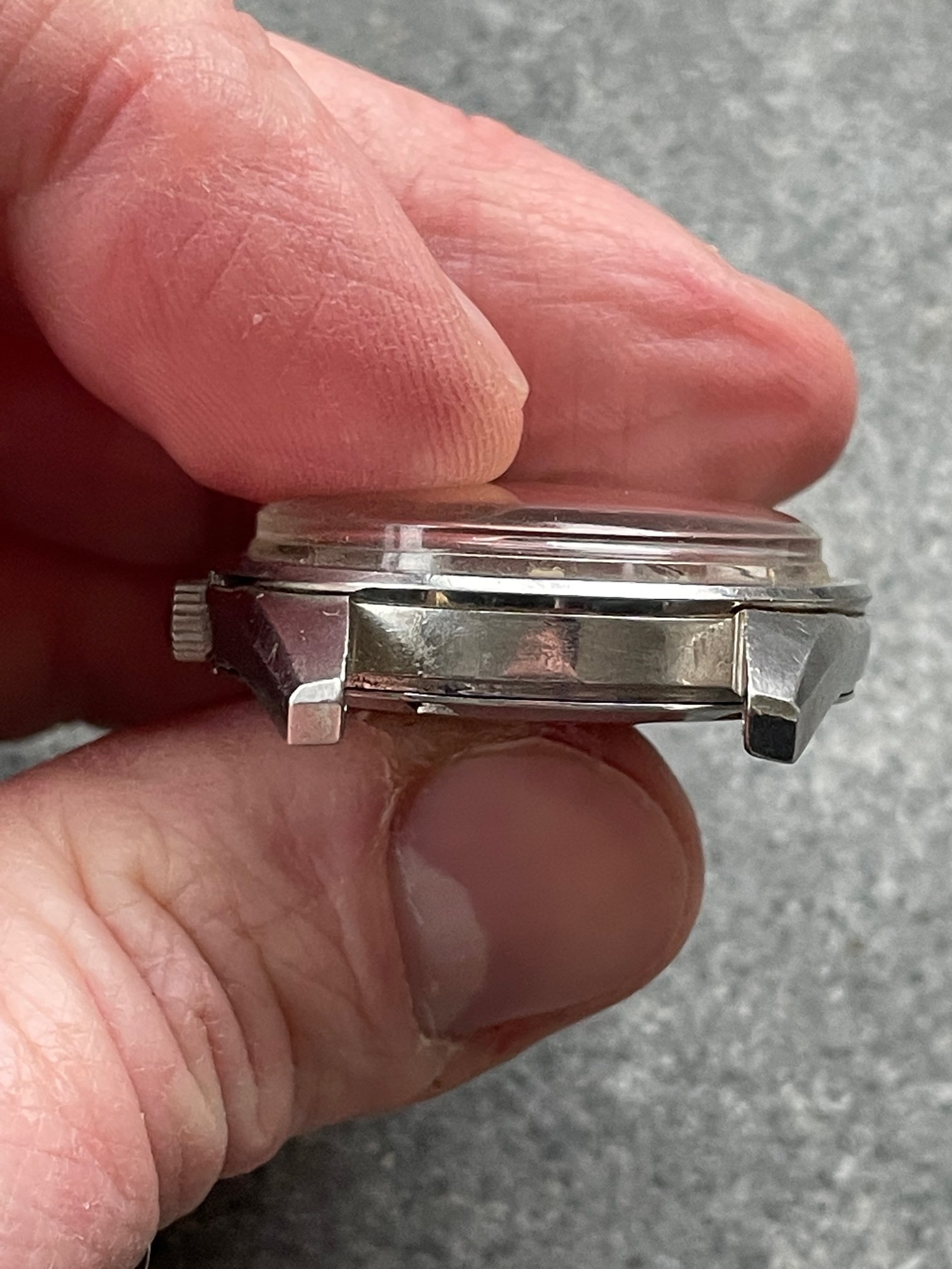 DIAL+HANDS: Original and untouched. I can see no marks on the dial; the lume on the minute hand has darkened a bit more, but it's all clearly matching.