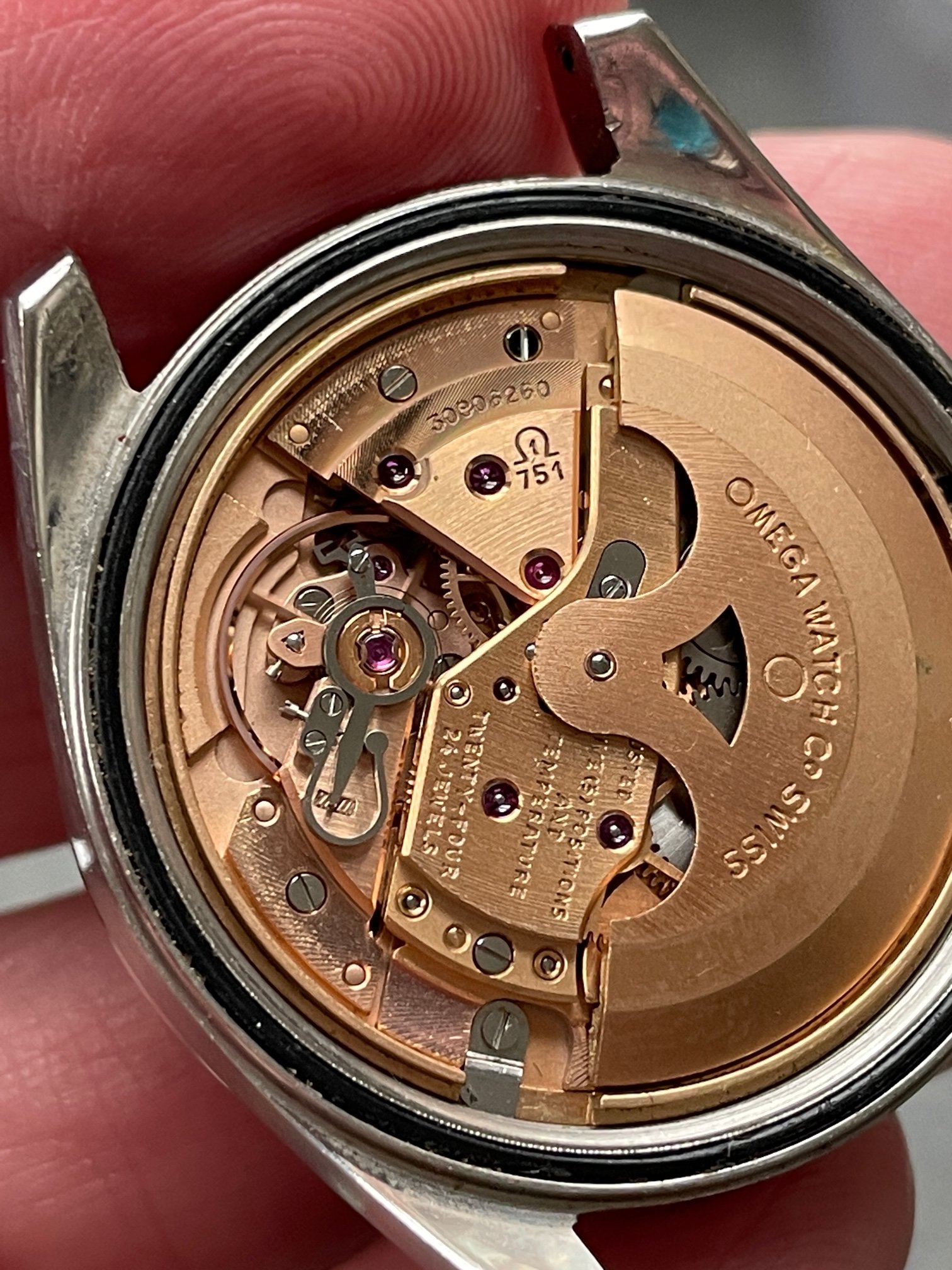 MVMT: The cal 751 movement is keeping good time, with the quickset date operating as it should (i.e. you pull it out to a third position to advance the date). I don't know the service history, so the watch is being sold as is.