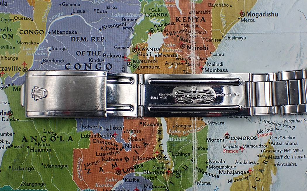 BRACELET: This Explorer comes on a Swiss-made 7206 rivet Oyster bracelet with “58” end pieces, which are correct for 1016s of this era. However, the clasp blades and buckle are later service replacements, with the “VC” code on the blade dating to circa 1978. Note also the very uncommon style of the clasp embossing and design - a bit of a Rolex rarity in and of itself, I’d have to say. This rivet bracelet is in Excellent cosmetic condition and has 11 links with only minimal stretch. It fits up to around a 7 1/4-inch wrist at maximum length and can be sized down around 7/8” from there.