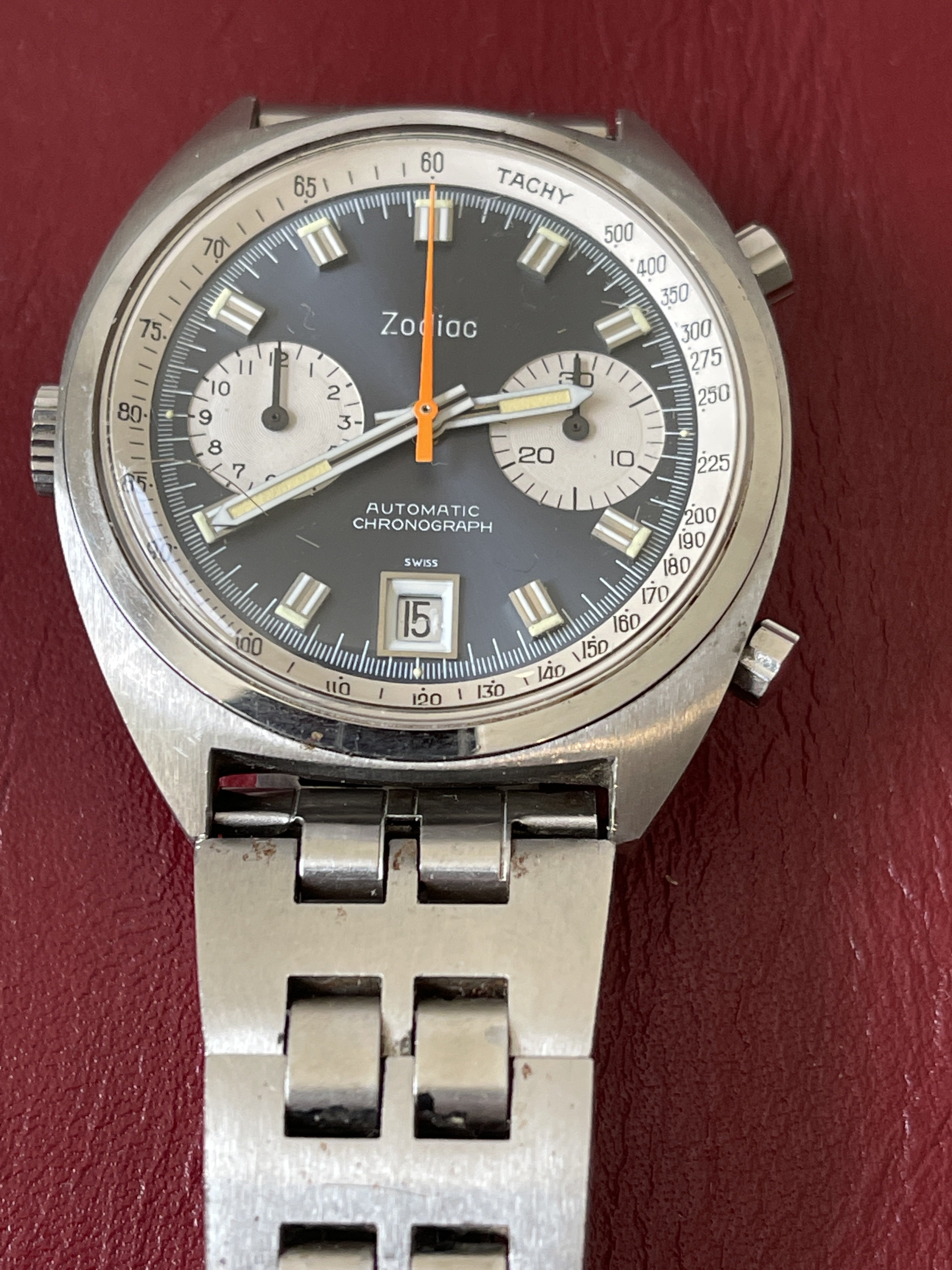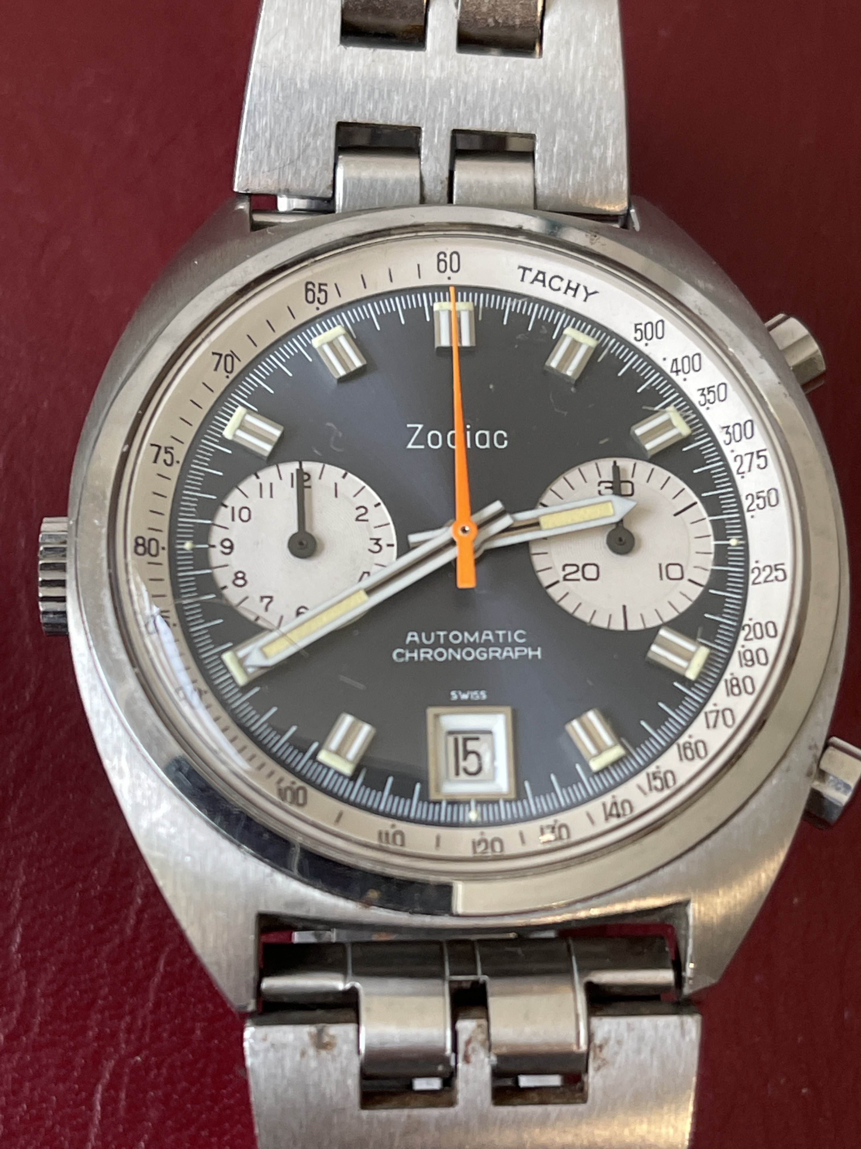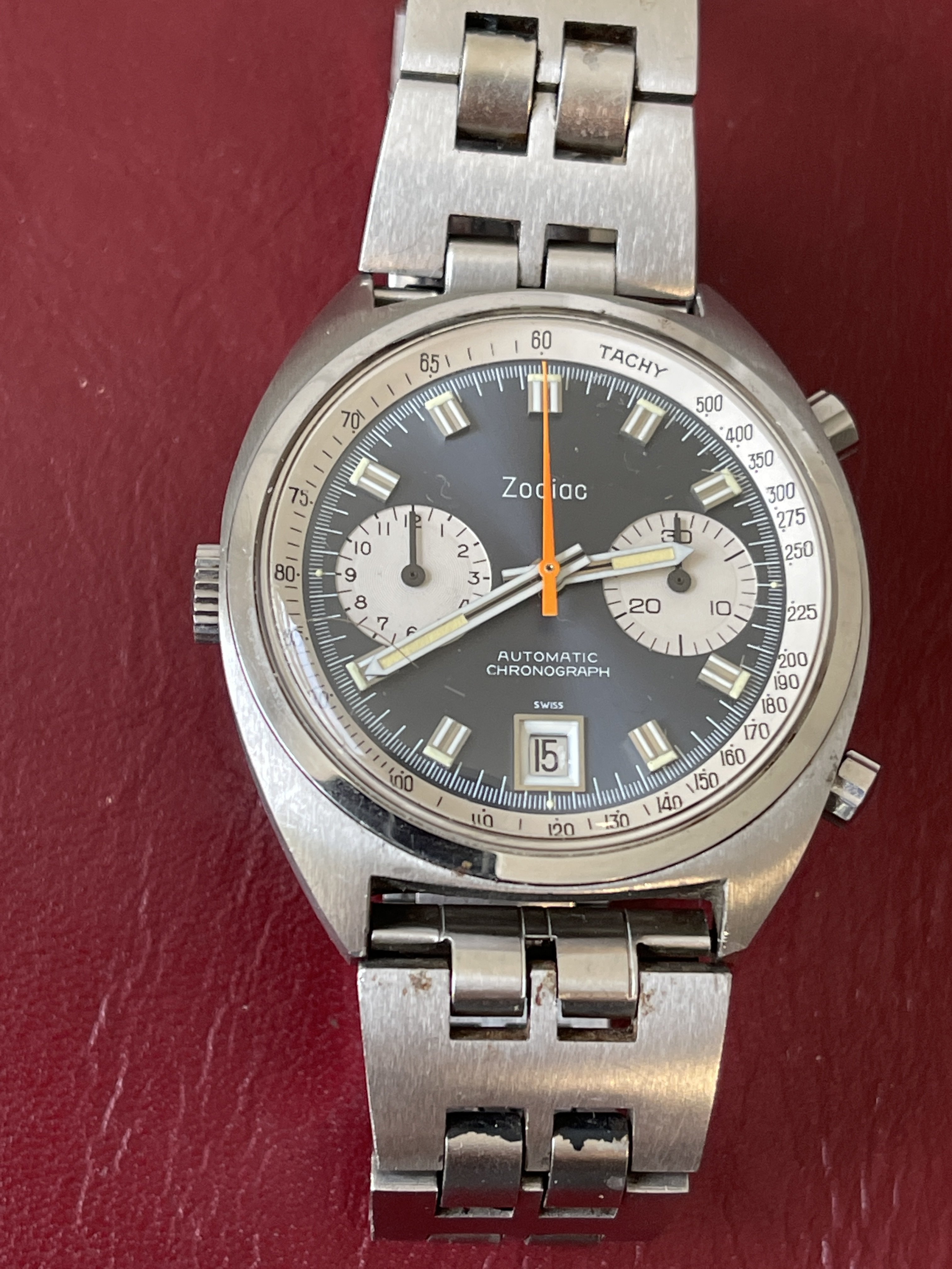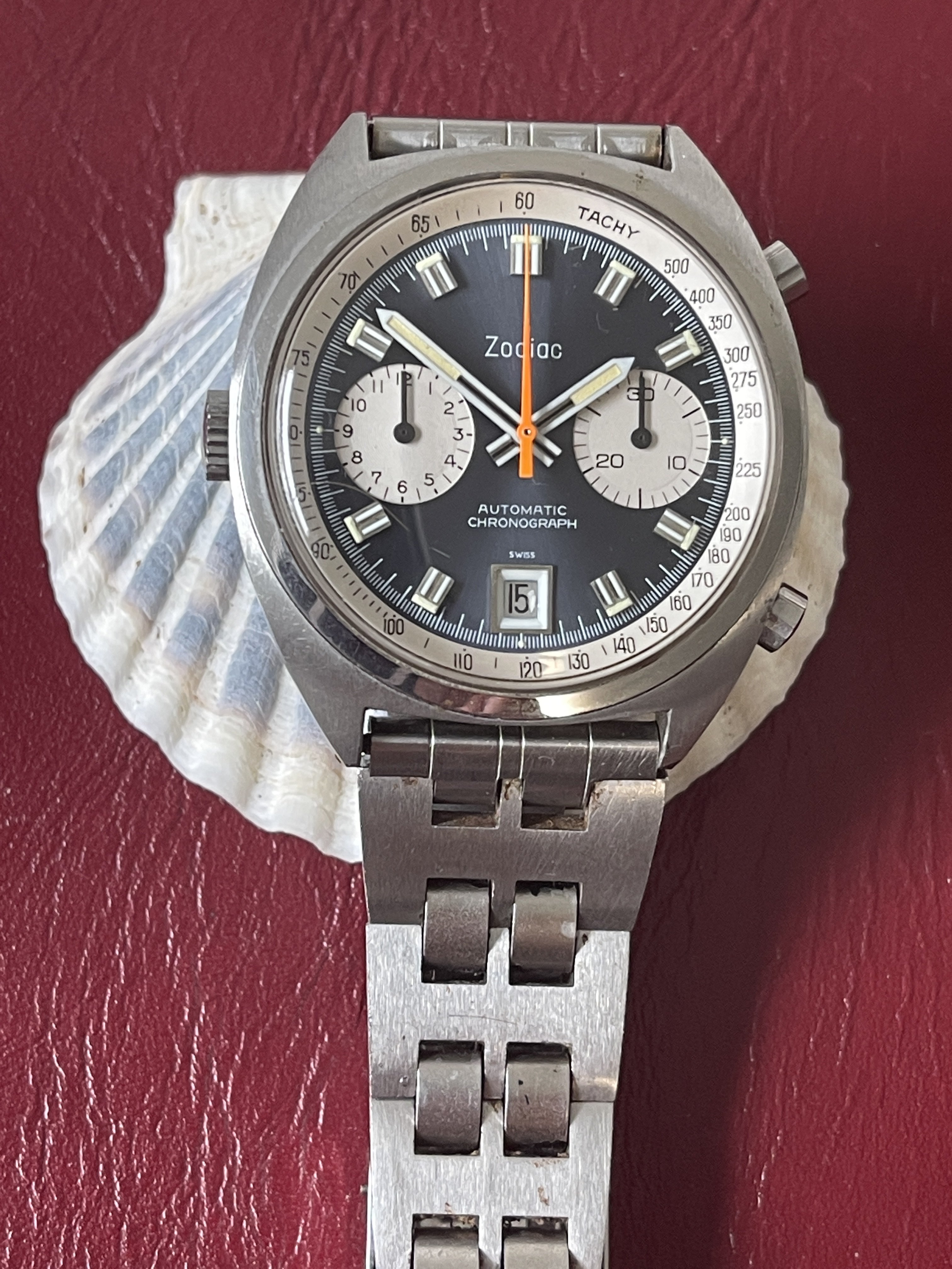 1970’s Zodiac “Poor Man’s Carrera” Automatic Chronograph + Original Signed Zodiac JB Champion Band