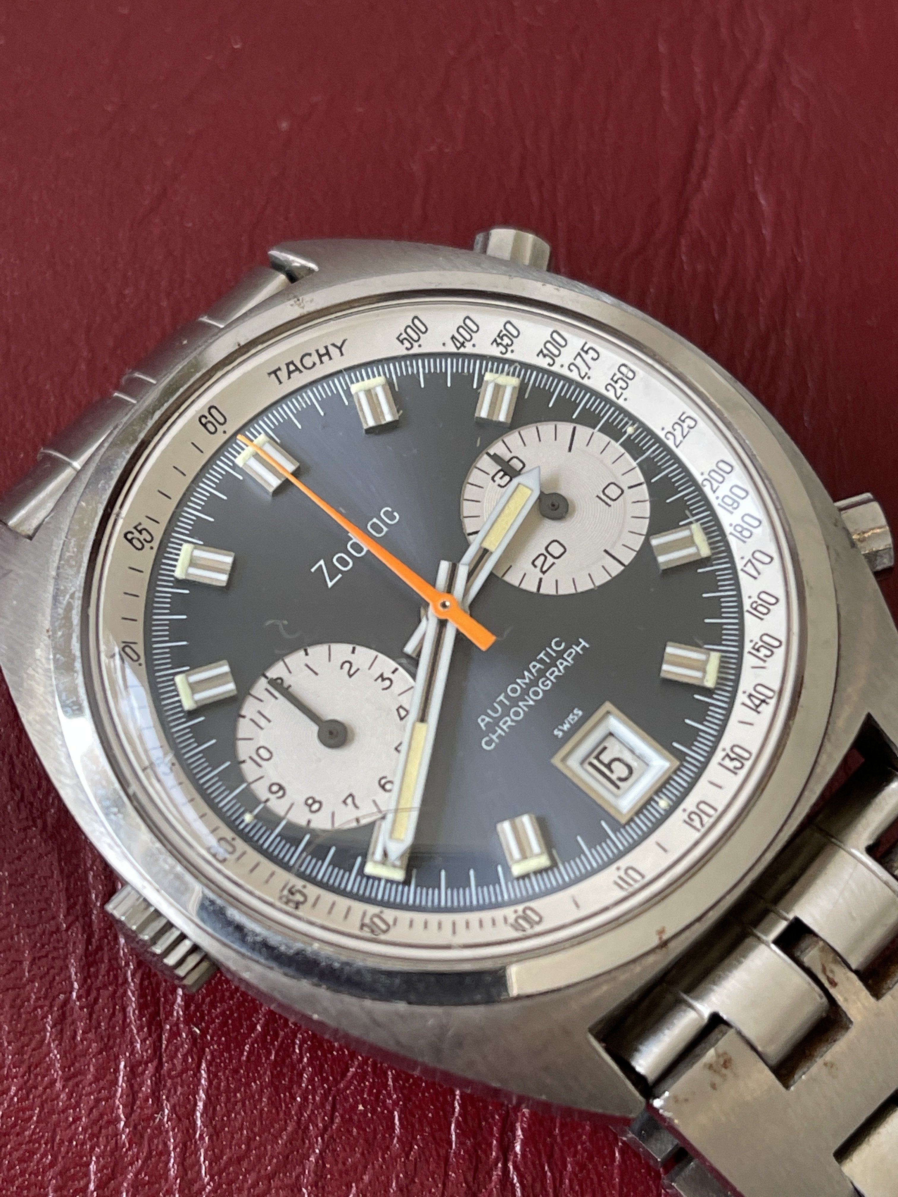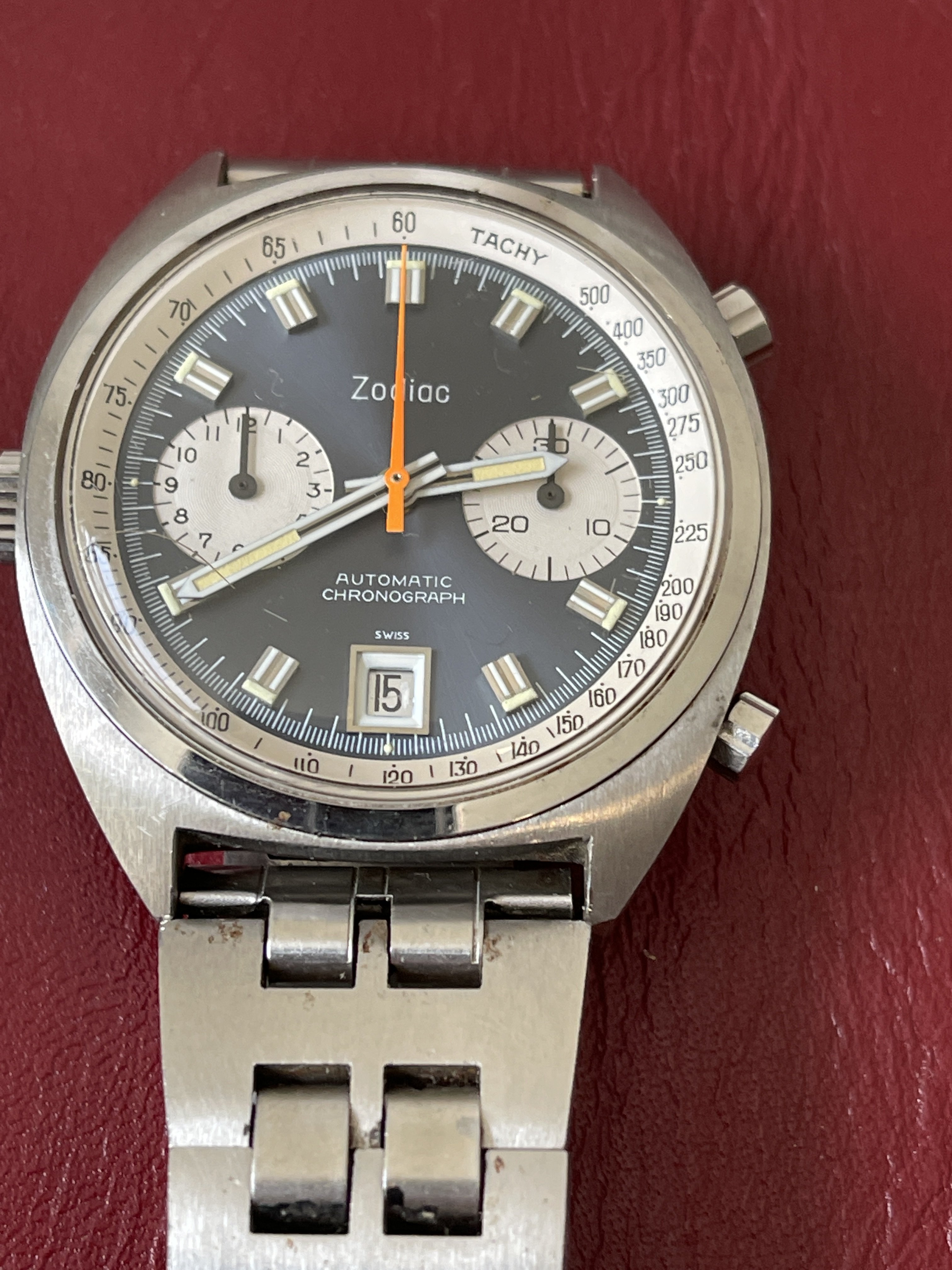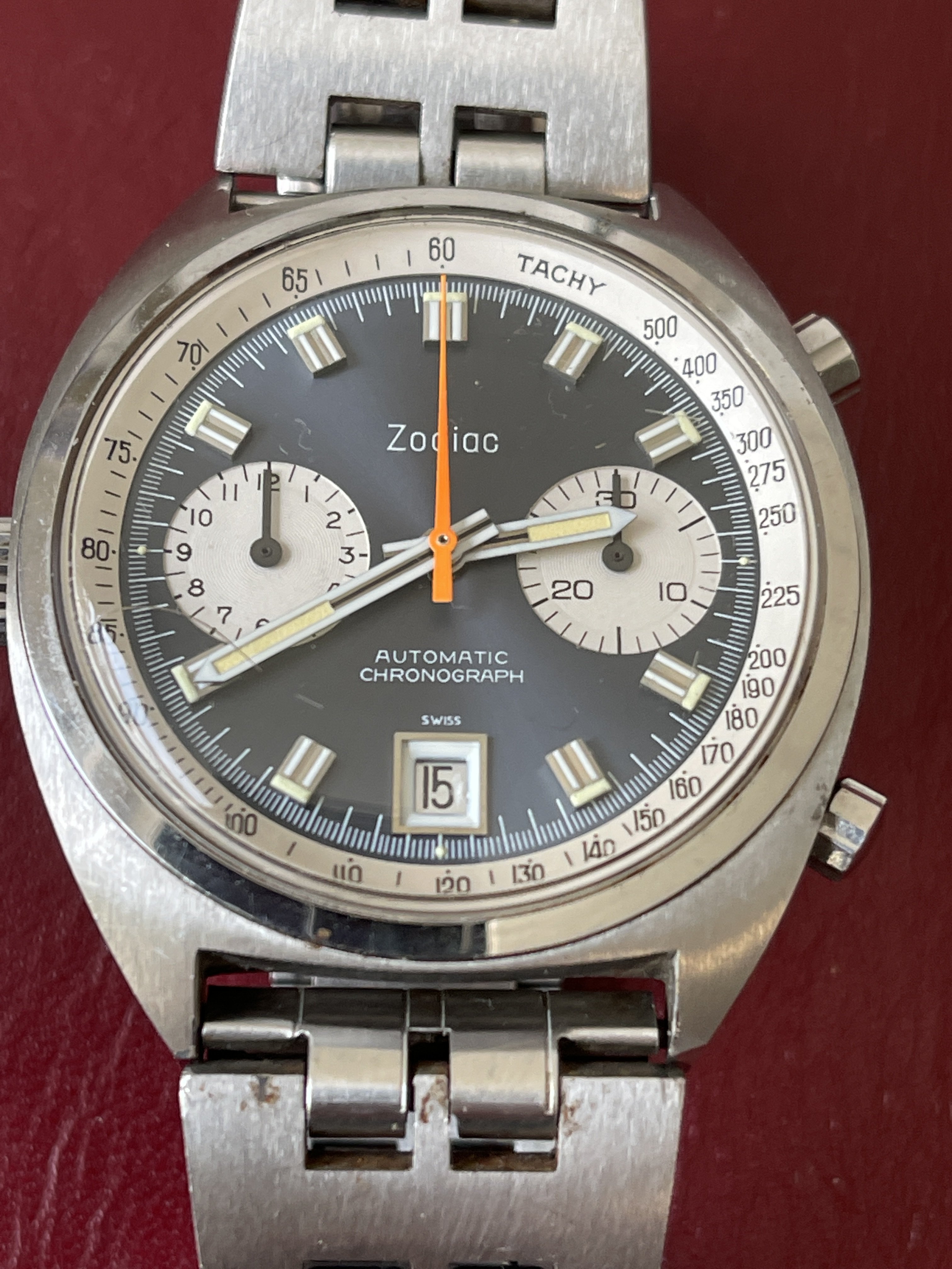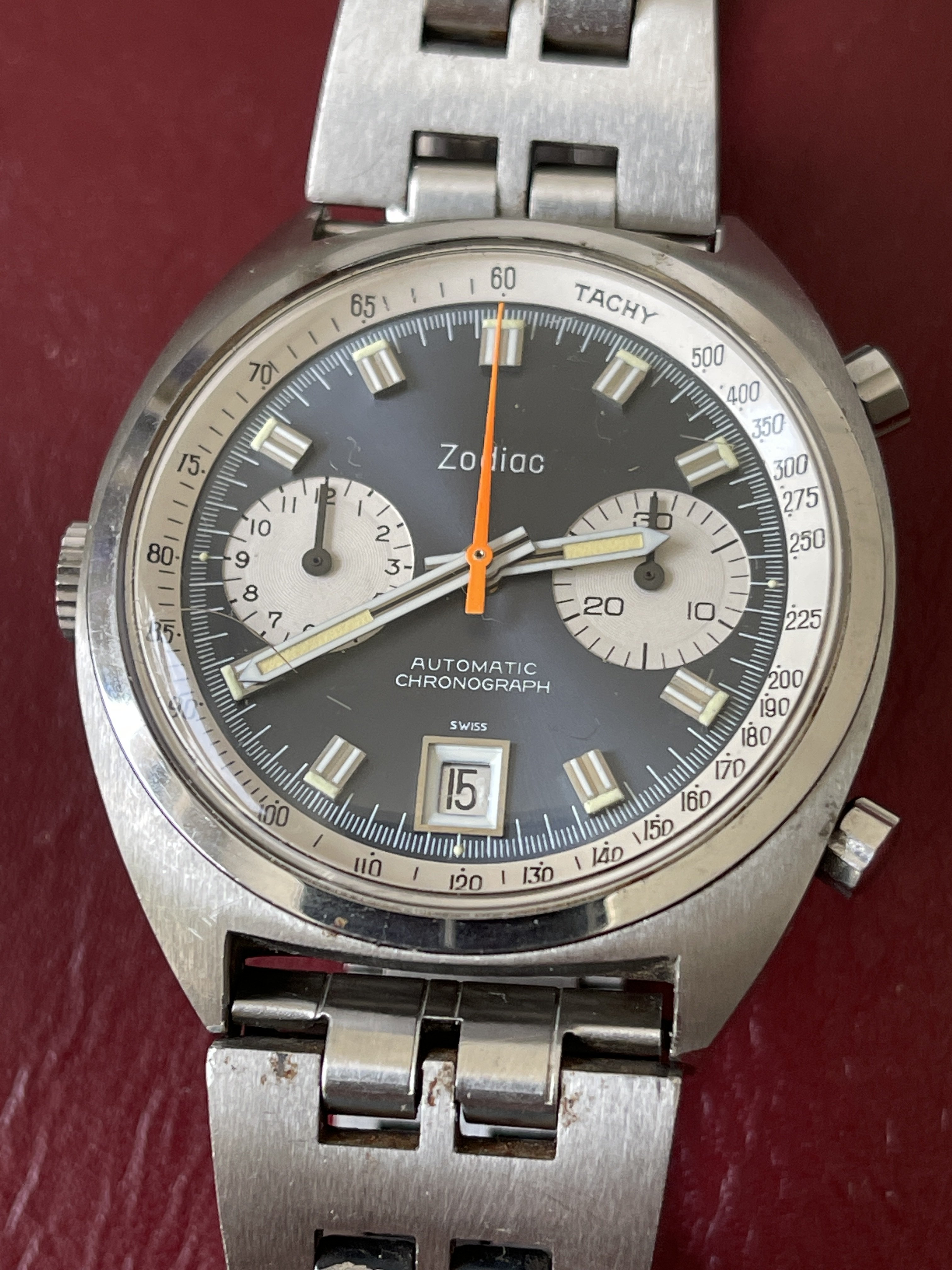 1970’s Zodiac “Poor Man’s Carrera” Automatic Chronograph + Original Signed Zodiac JB Champion Band